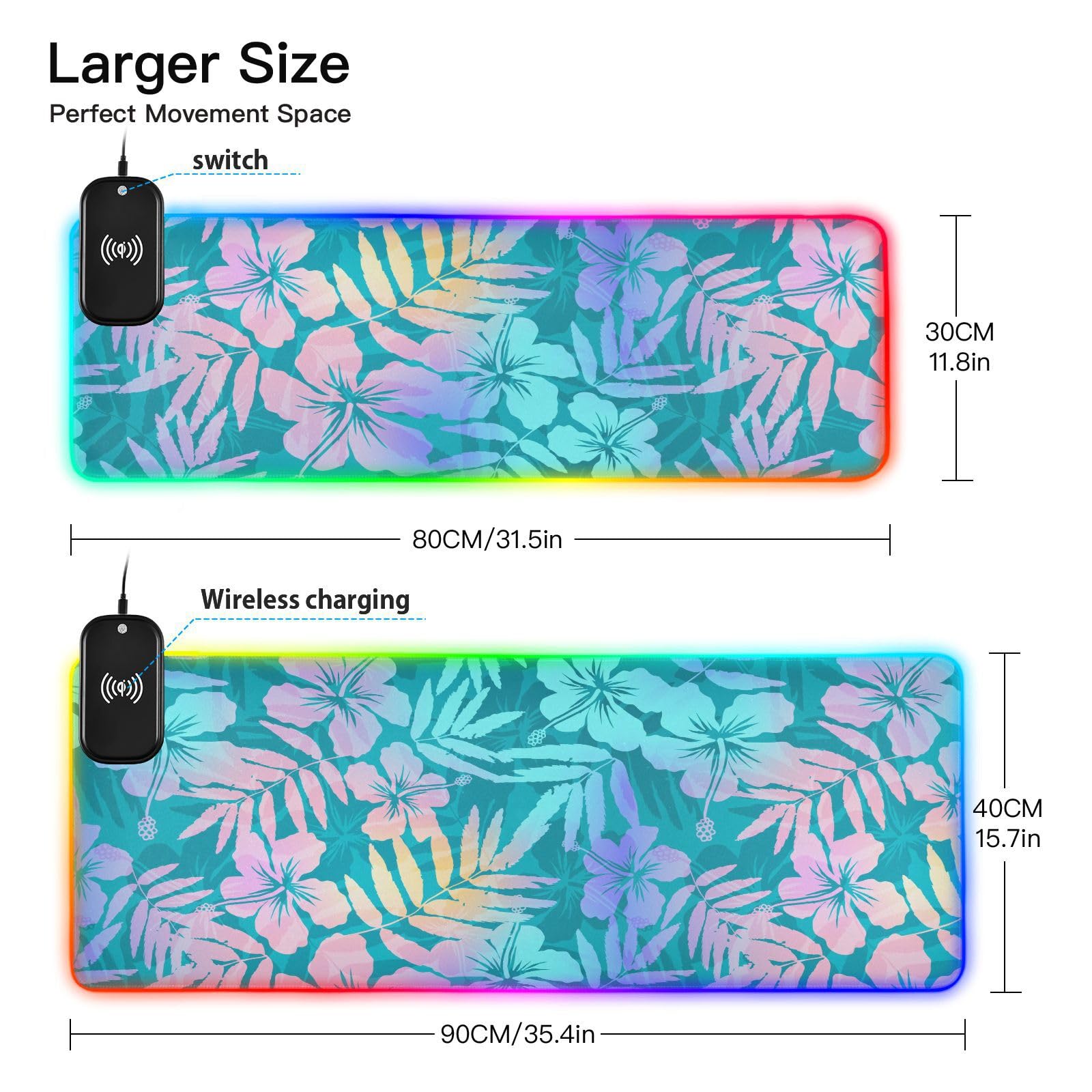 Blue Pink Flowers Wireless Charging Mouse Pad for Mobile Phone Extra Large Gaming Mousepad with 13 Lighting Modes Computer Mat for Gaming MacBook PC Laptop Desk Home Office