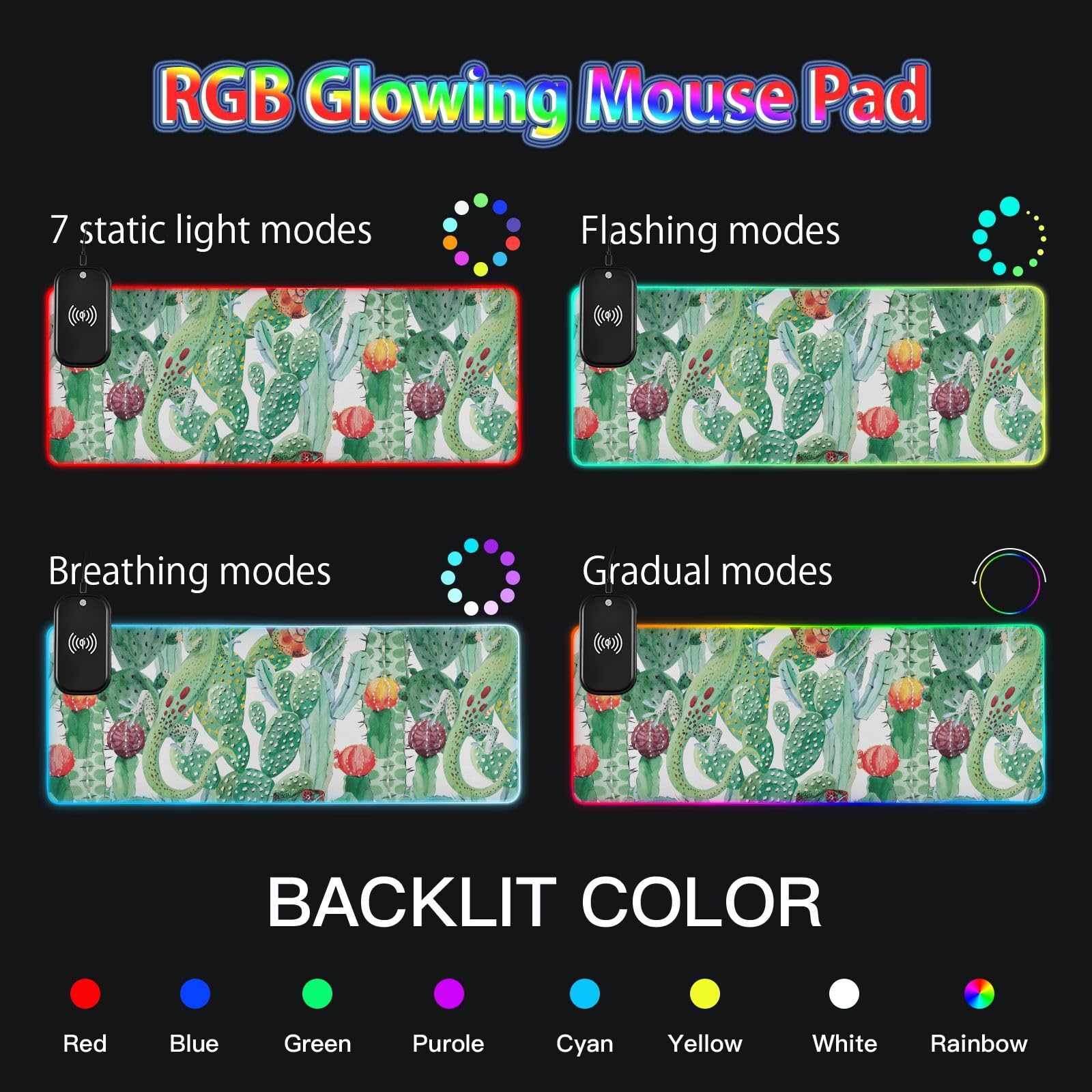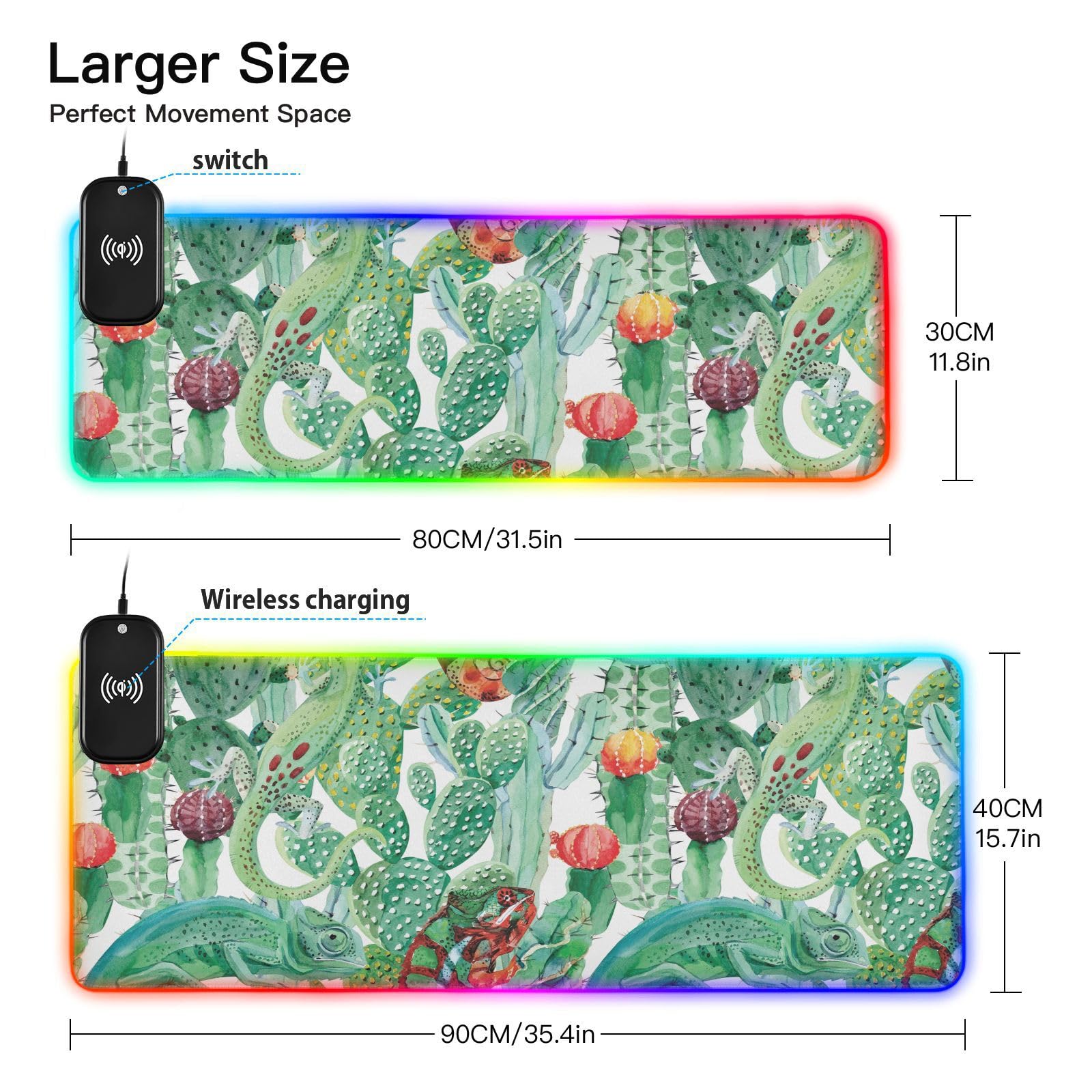 Chameleon Cactus Wireless Charging Mouse Pad for Mobile Phone Extra Large Gaming Mousepad with 13 Lighting Modes Computer Mat for Gaming MacBook PC Laptop Desk Office Home
