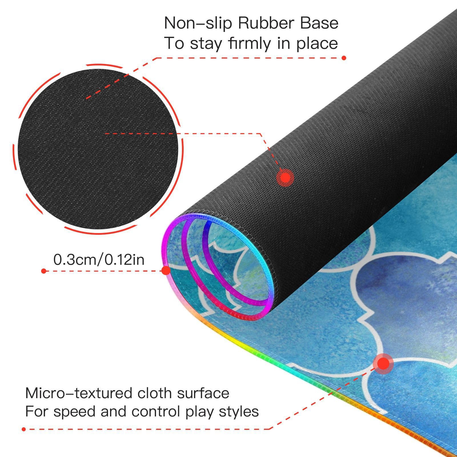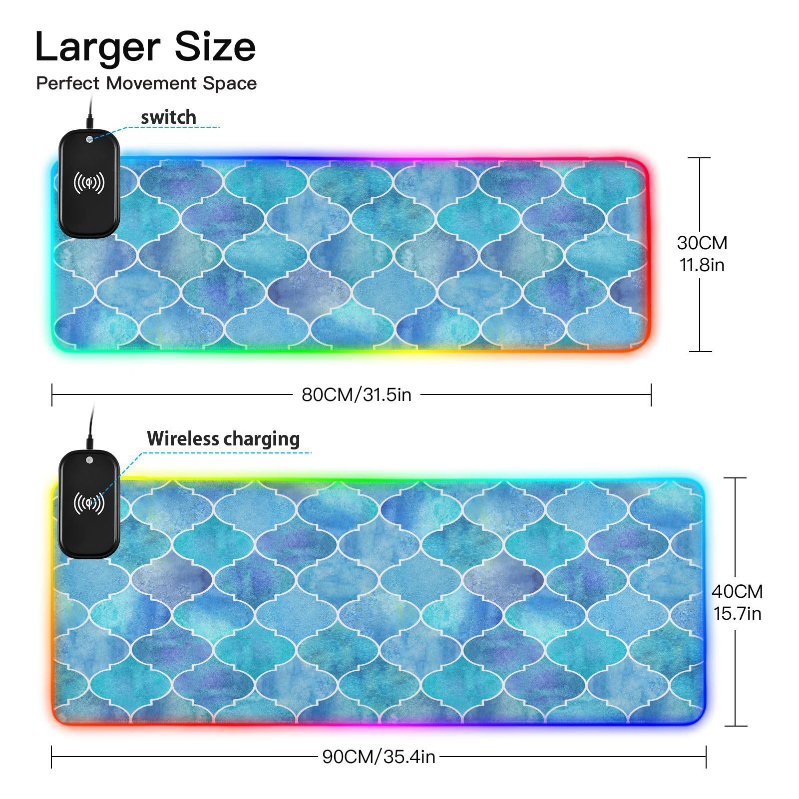 Biue Moroccan Style Wireless Charging Mouse Pad for Mobile Phone Extra Large Gaming Mousepad with 13 Lighting Modes Keyboard Mat for Gaming MacBook PC Laptop Desk Office Home