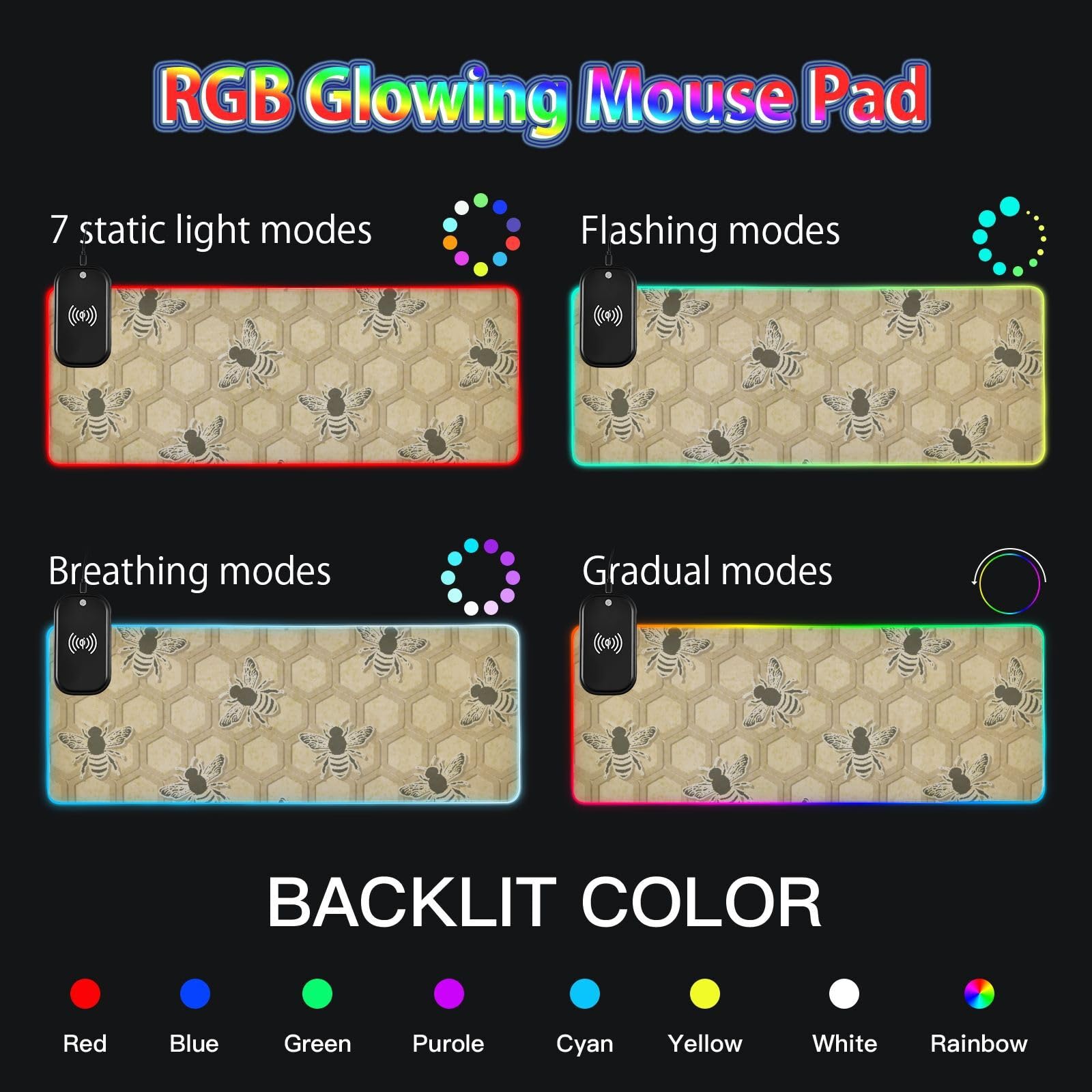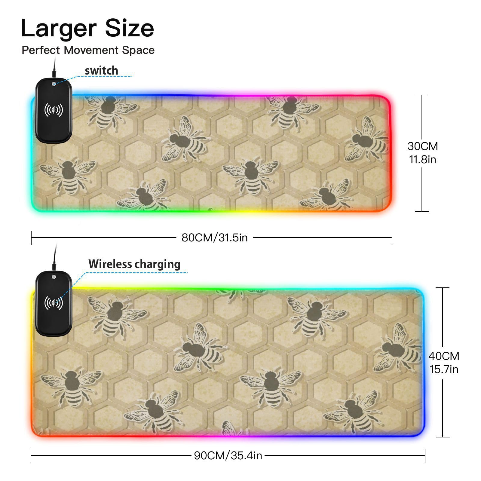 Bee Honeycomb Wireless Charging Mouse Pad for Mobile Phone Extra Large Gaming Mousepad with 13 Lighting Modes Computer Mat for Office Home Gaming MacBook PC Laptop Desk