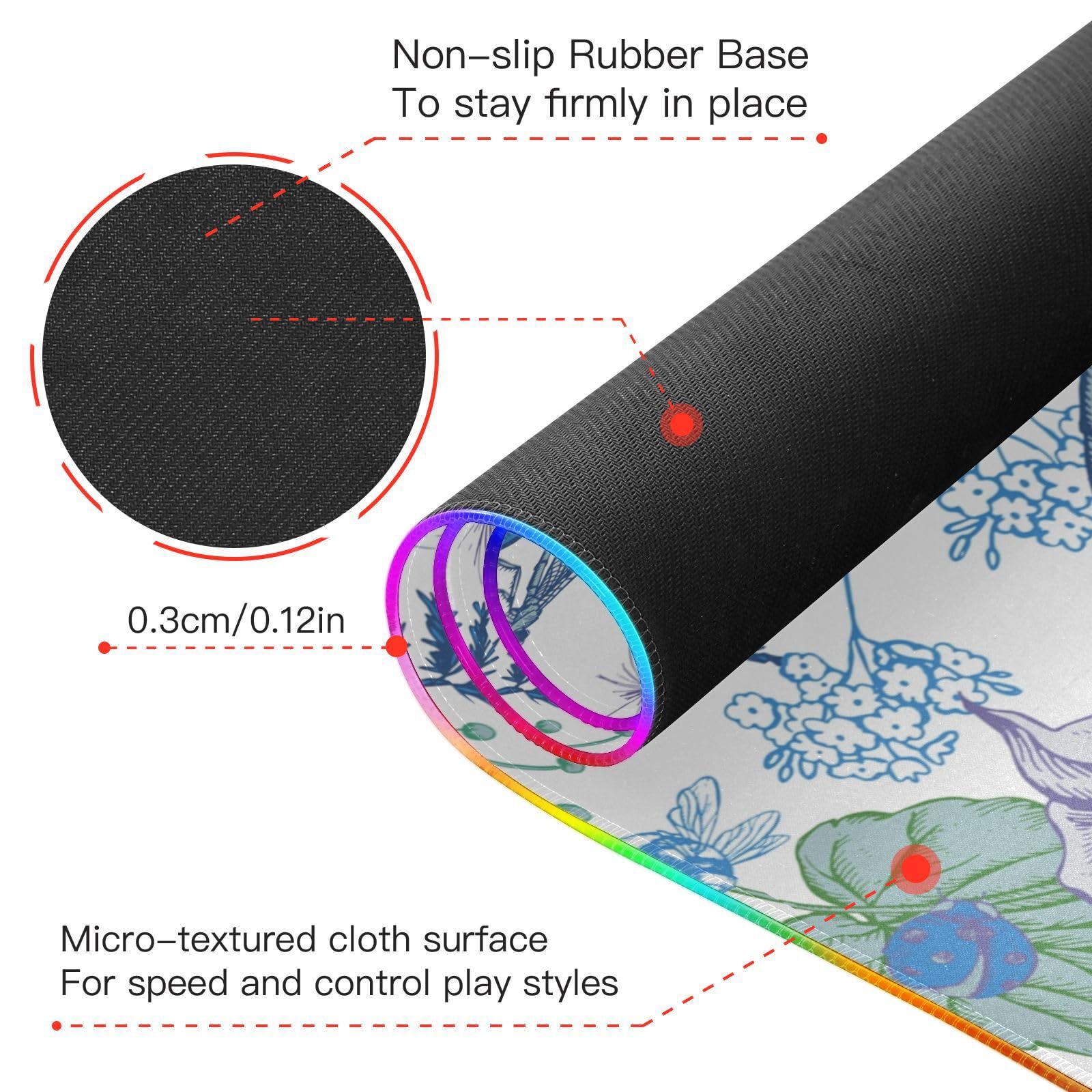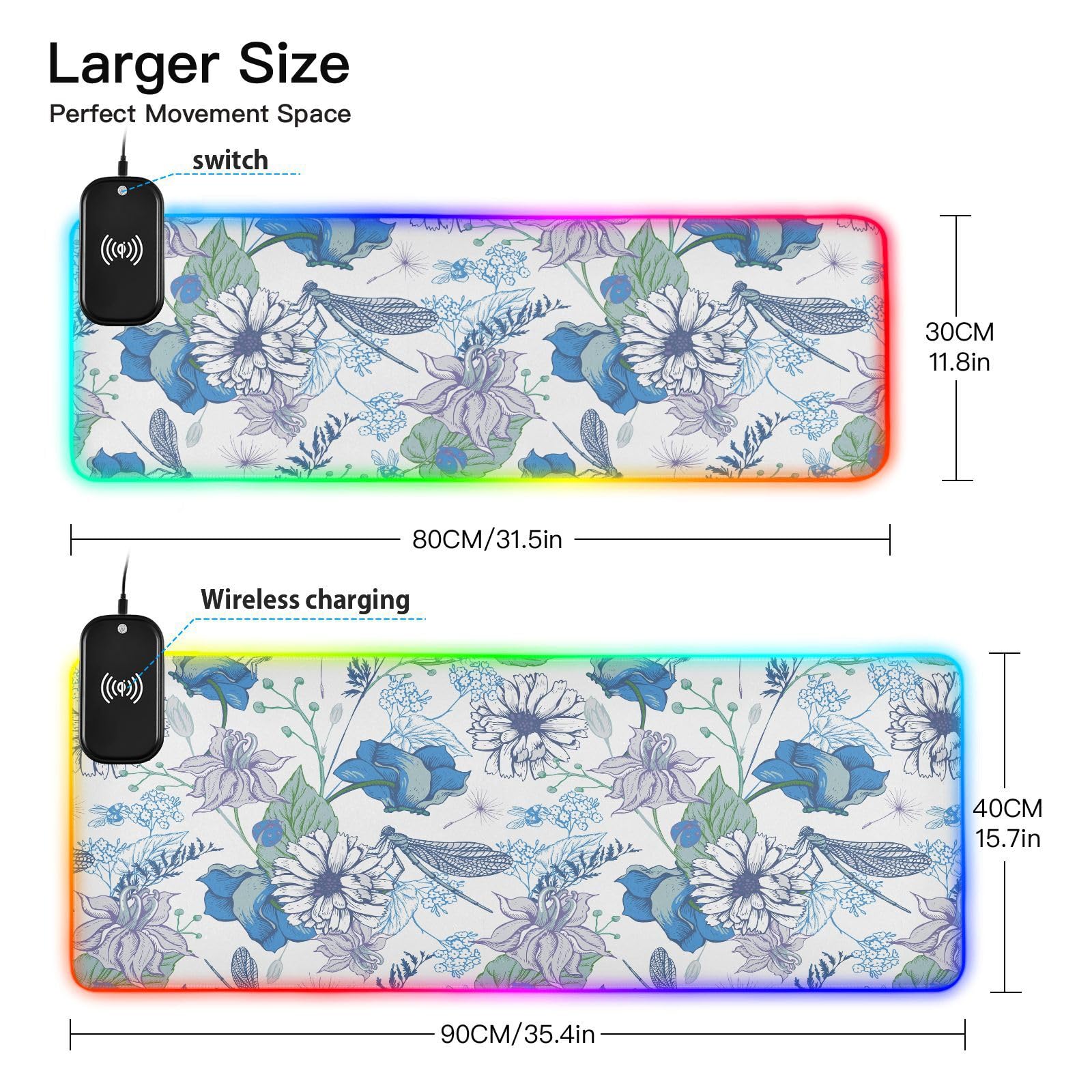 Flower Birds Leaves Vintage Wireless Charging Mouse Pad for Mobile Phone Extra Large Gaming Mousepad with 13 Lighting Modes Keyboard Mat for Gaming MacBook PC Laptop Desk Home Office