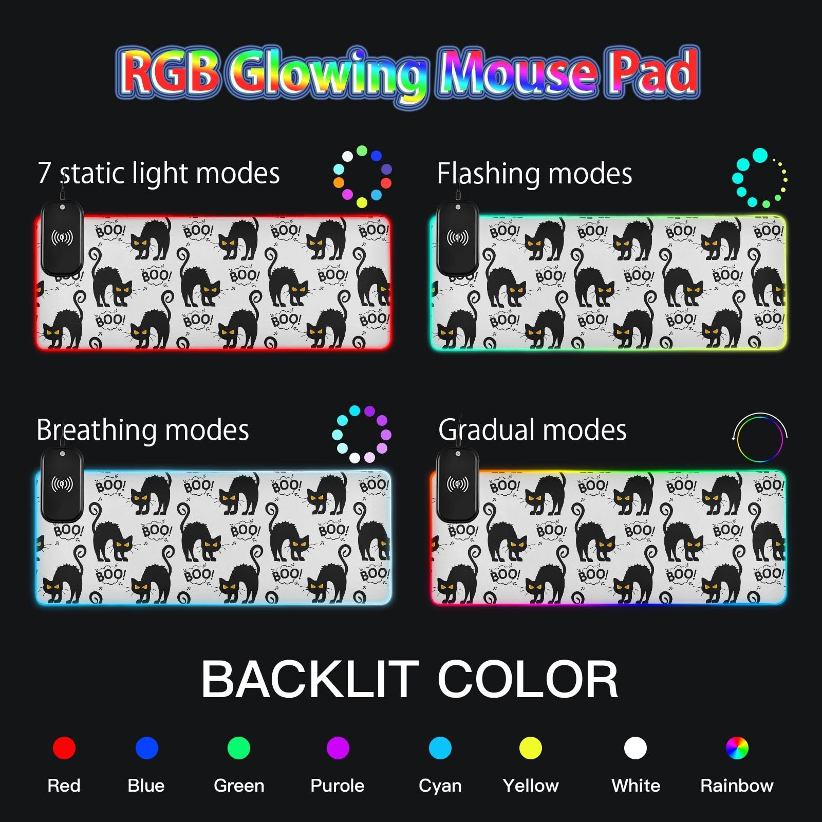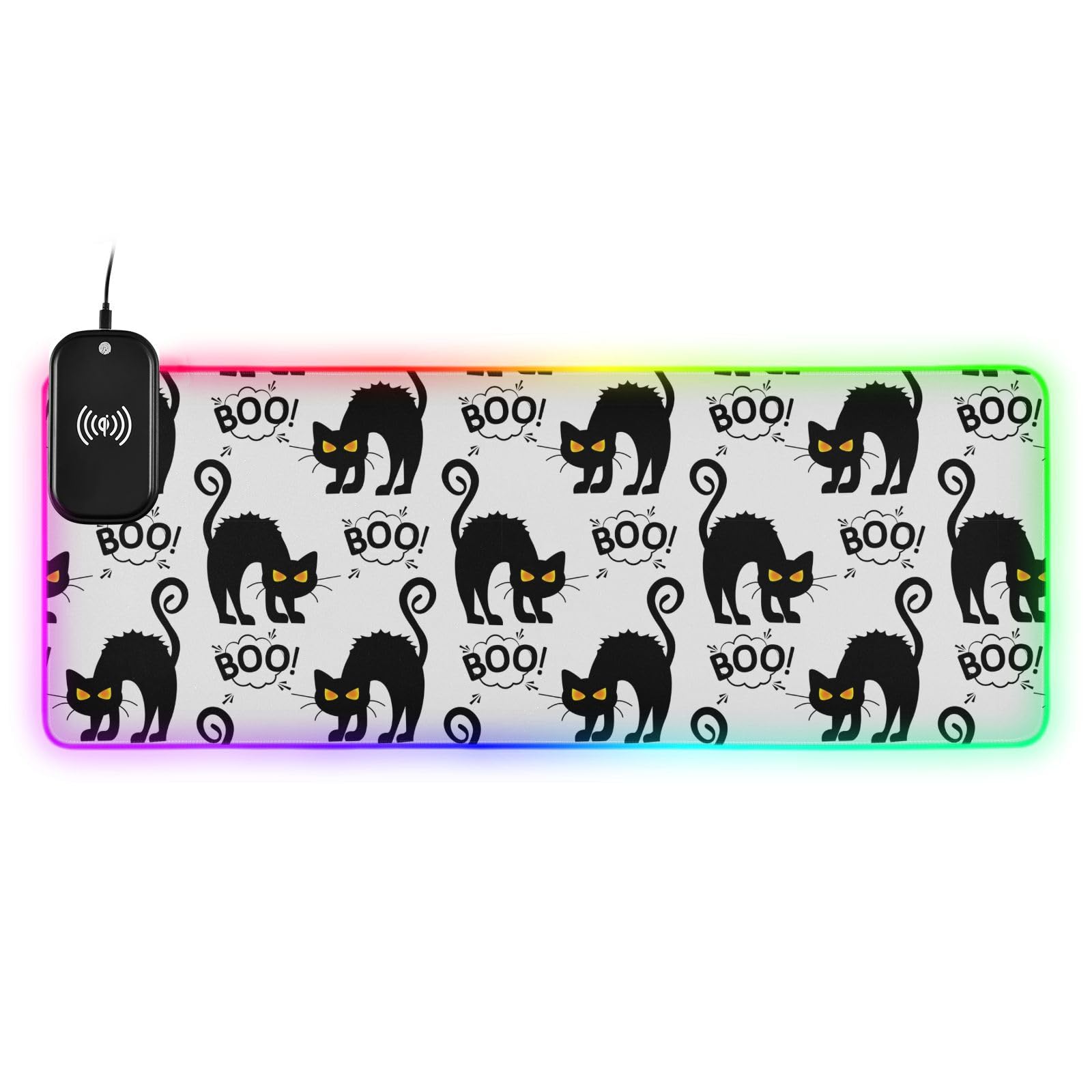 Halloween Black Cats Wireless Charging Mouse Pad for Mobile Phone Extra Large Gaming Mousepad with 13 Lighting Modes Mouse Mat for Office Home Gaming MacBook PC Laptop Desk