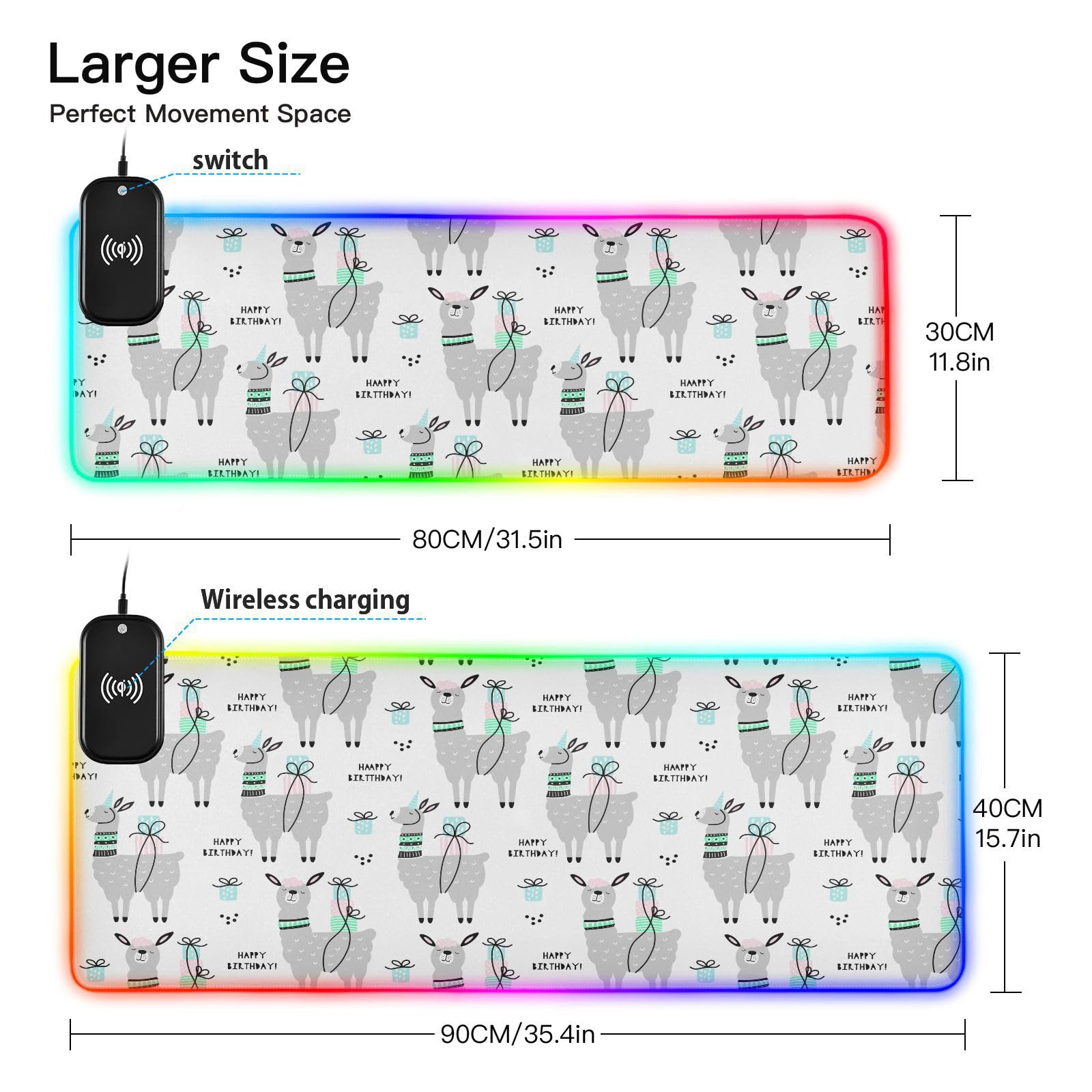 Cute Animals Llama Wireless Charging Mouse Pad for Mobile Phone Extra Large Gaming Mousepad with 13 Lighting Modes Extended Desk Mat for Gaming MacBook PC Laptop Desk Office Home