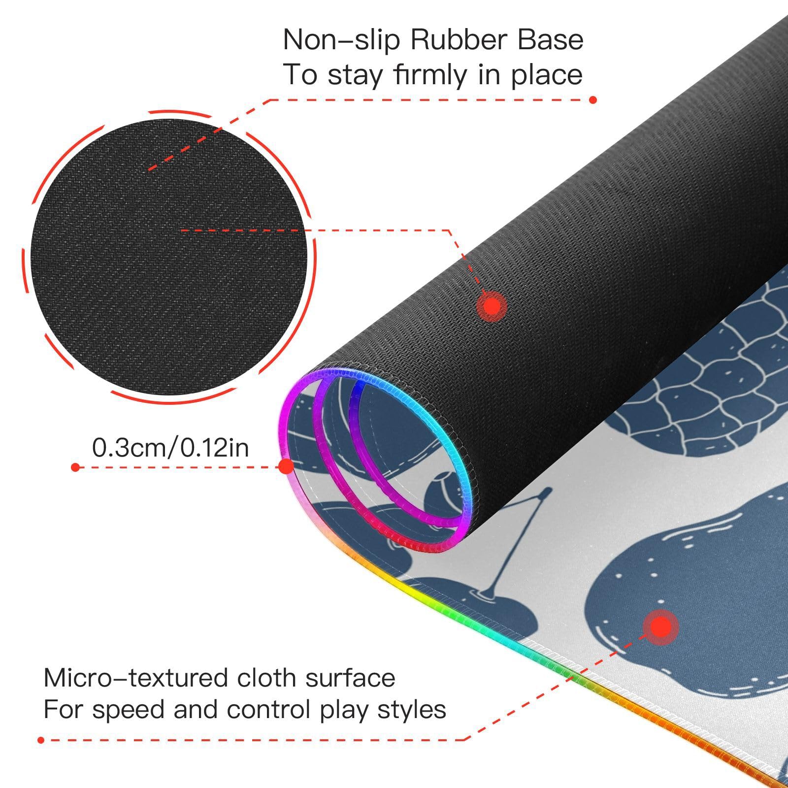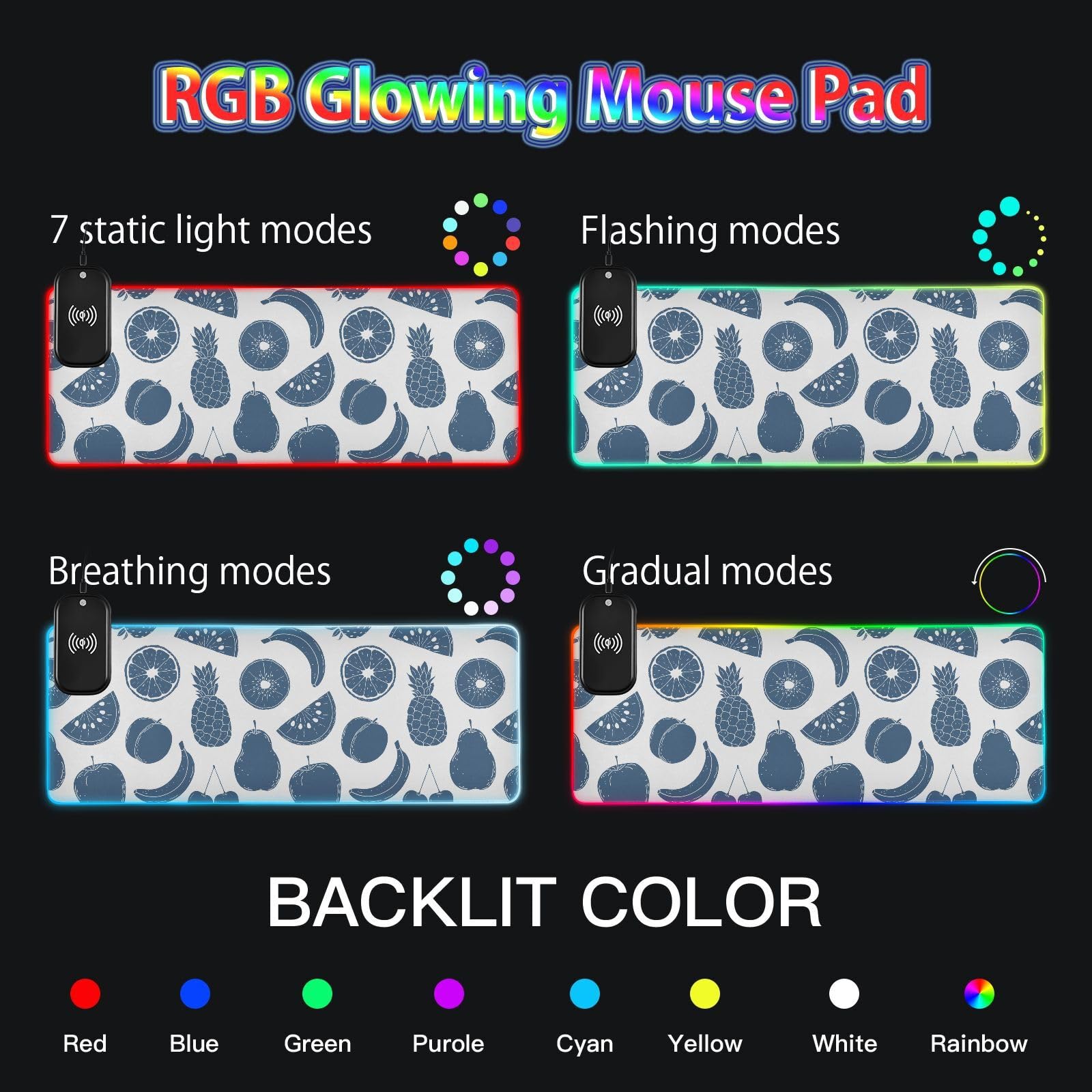 Hand Drawn Strawberry Watermelon Wireless Charging Mouse Pad for Mobile Phone Extra Large Gaming Mousepad with 13 Lighting Modes Extended Desk Mat for Office Home Gaming MacBook PC Laptop Desk