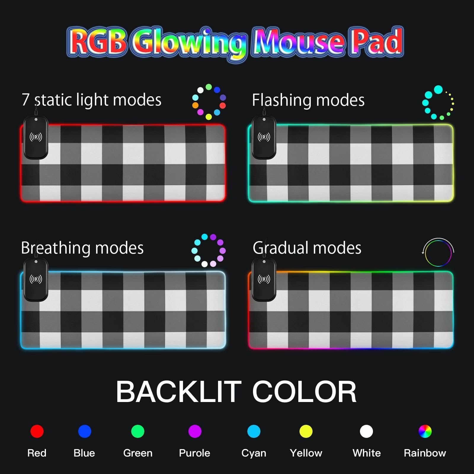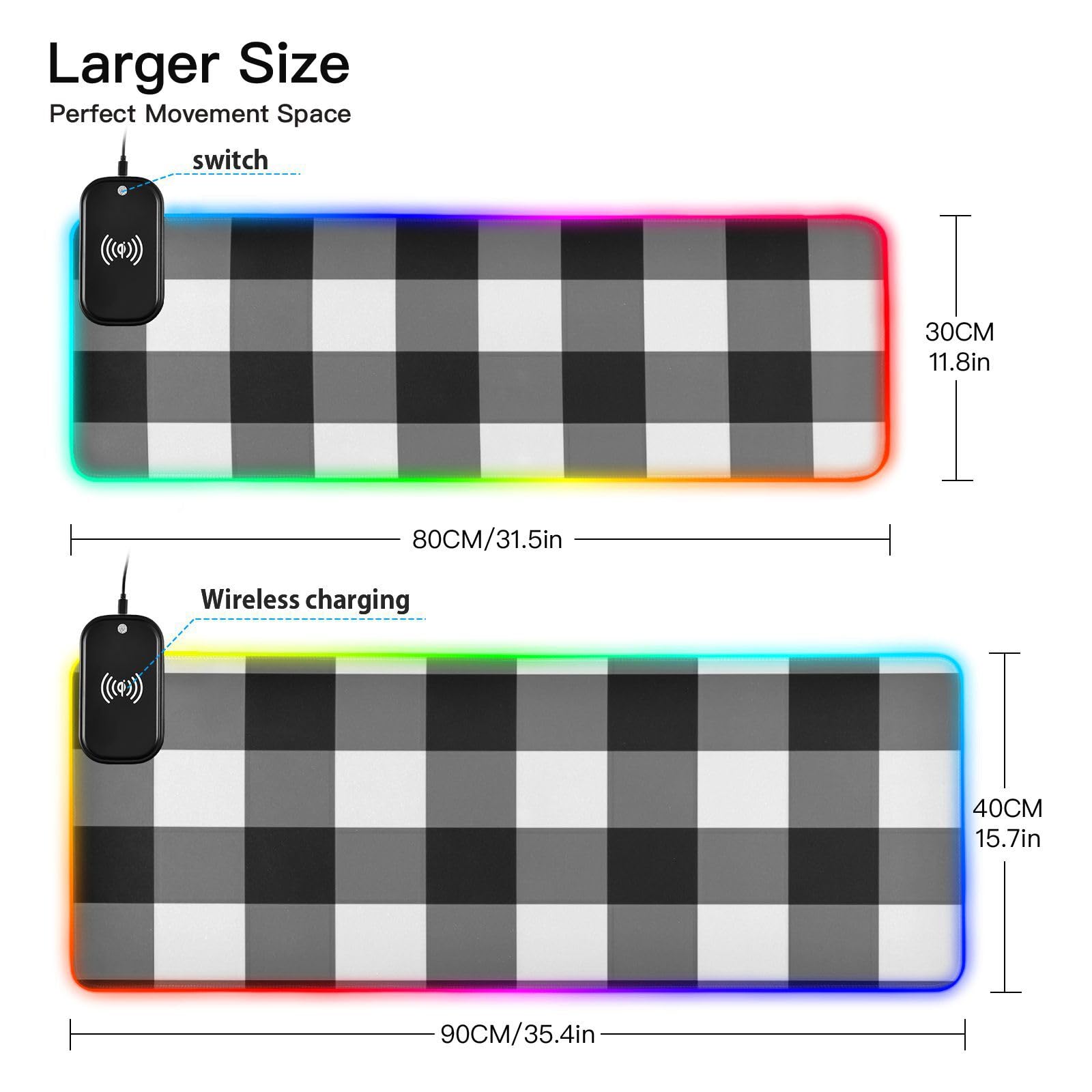 Black White Buffalo Plaid Wireless Charging Mouse Pad for Mobile Phone Extra Large Gaming Mousepad with 13 Lighting Modes Mouse Mat for Office Home Gaming MacBook PC Laptop Desk