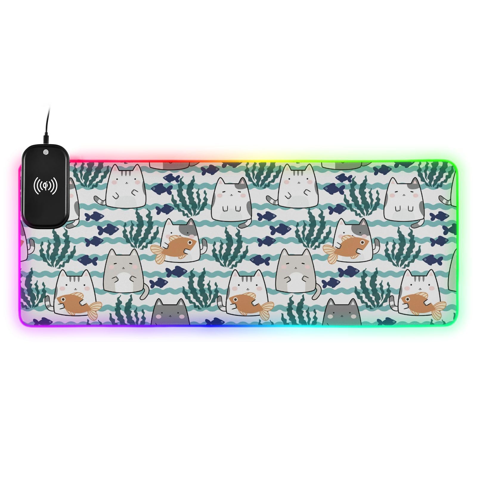 Cats Cartoon Wireless Charging Mouse Pad for Mobile Phone Extra Large Gaming Mousepad with 13 Lighting Modes Computer Mat for Gaming MacBook PC Laptop Desk Home Office