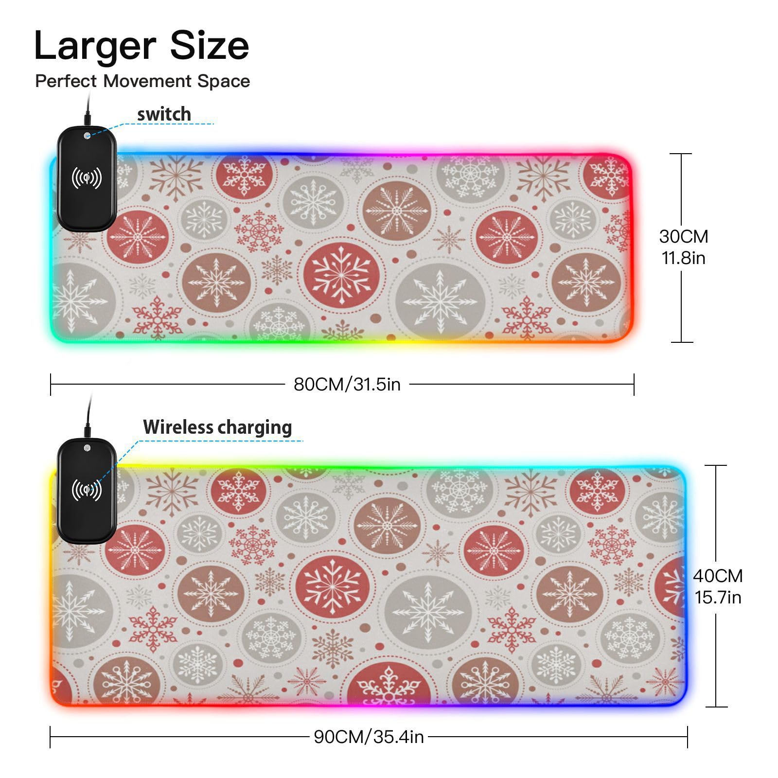 Christmas Snowflake Wireless Charging Mouse Pad for Mobile Phone Extra Large Gaming Mousepad with 13 Lighting Modes Extended Desk Mat for Office Home Gaming MacBook PC Laptop Desk