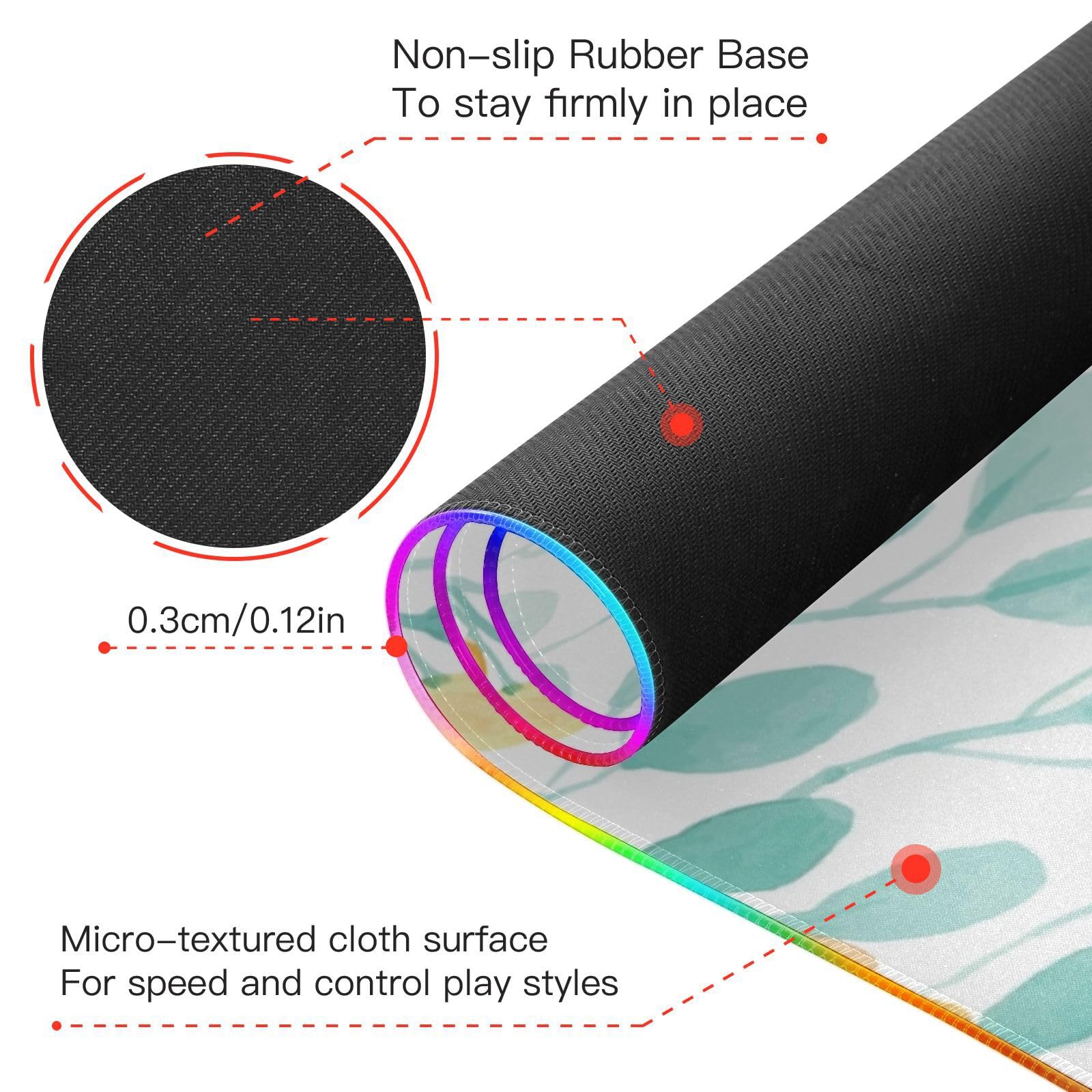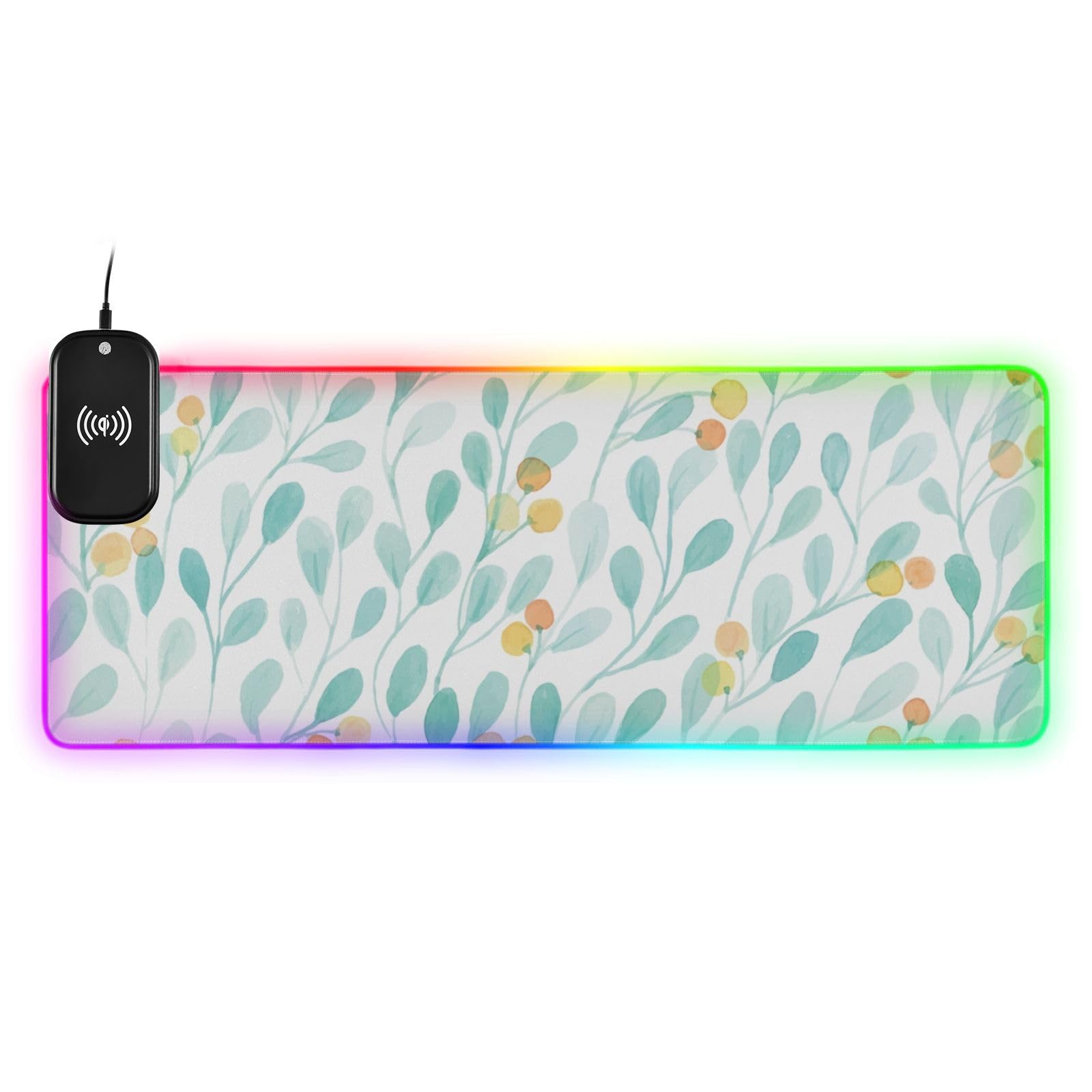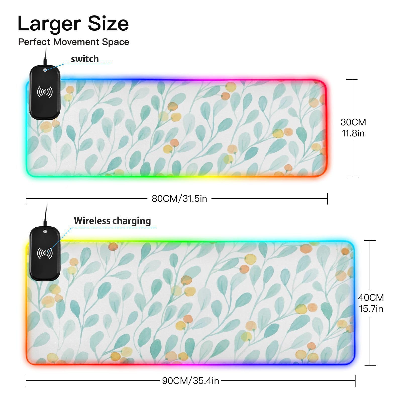 Beautiful Watercolor Leaves Wireless Charging Mouse Pad for Mobile Phone Extra Large Gaming Mousepad with 13 Lighting Modes Keyboard Mat for MacBook PC Laptop Desk Office Home Gaming