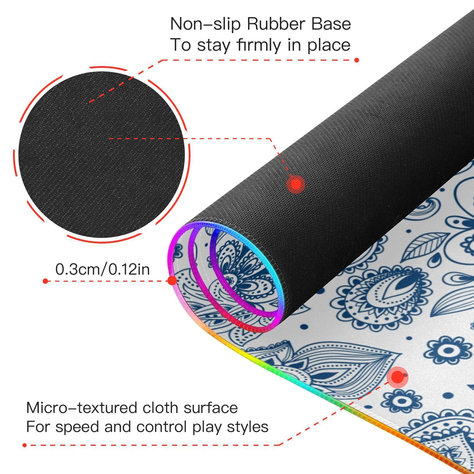 Boho Paisley Flower Wireless Charging Mouse Pad for Mobile Phone Extra Large Gaming Mousepad with 13 Lighting Modes Extended Desk Mat for MacBook PC Laptop Desk Office Home Gaming