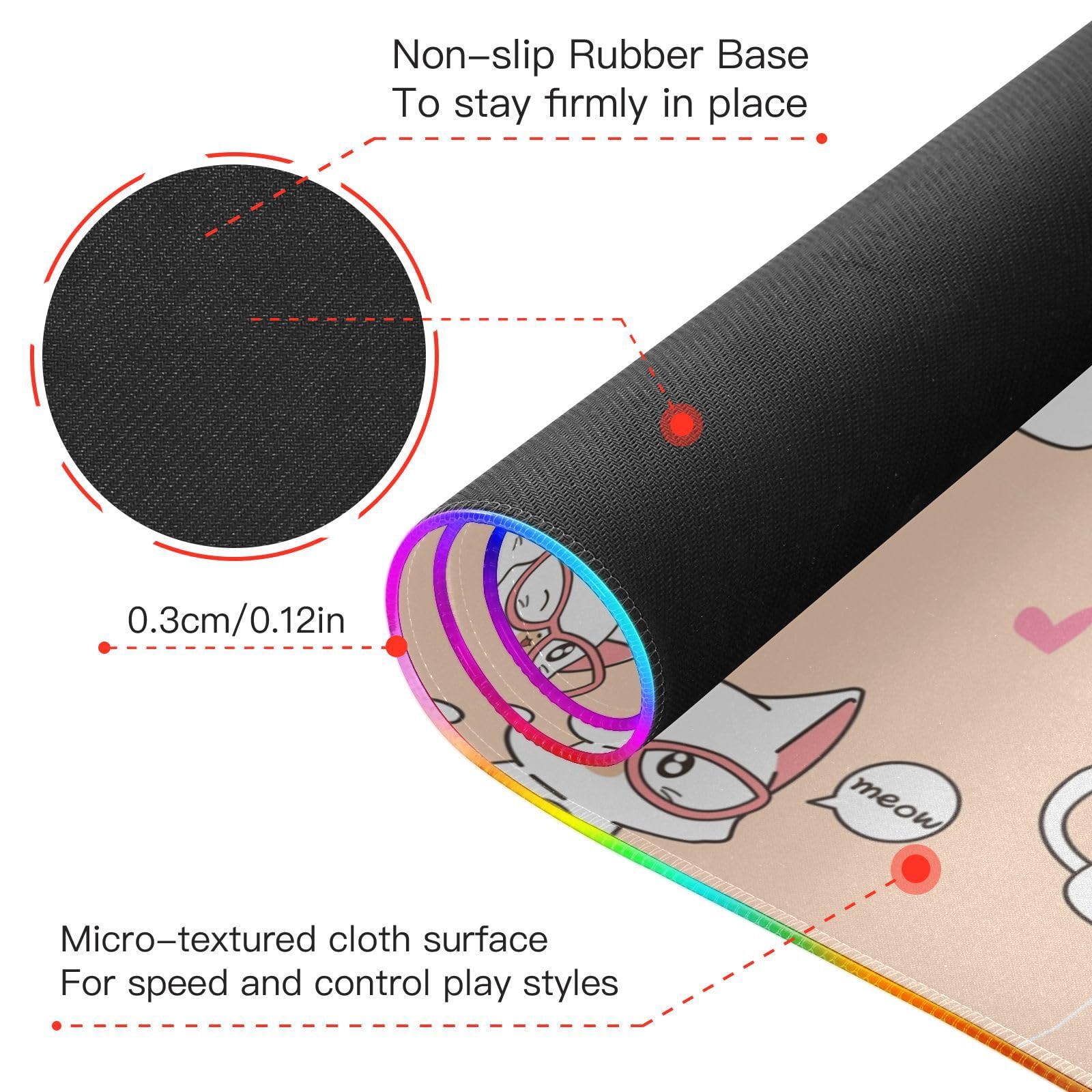 Cute Cat Wireless Charging Mouse Pad for Mobile Phone Extra Large Gaming Mousepad with 13 Lighting Modes Computer Mat for MacBook PC Laptop Desk Office Home Gaming