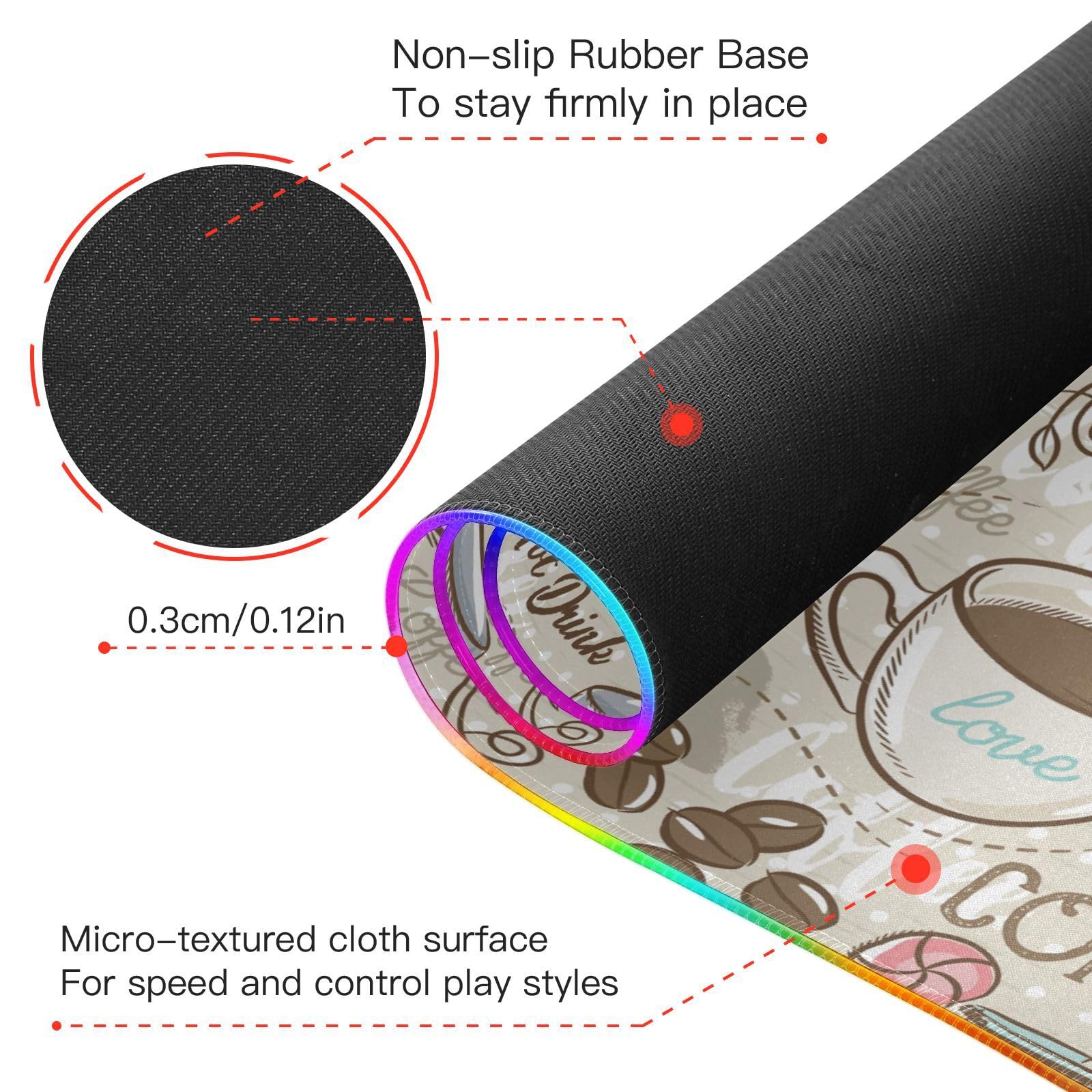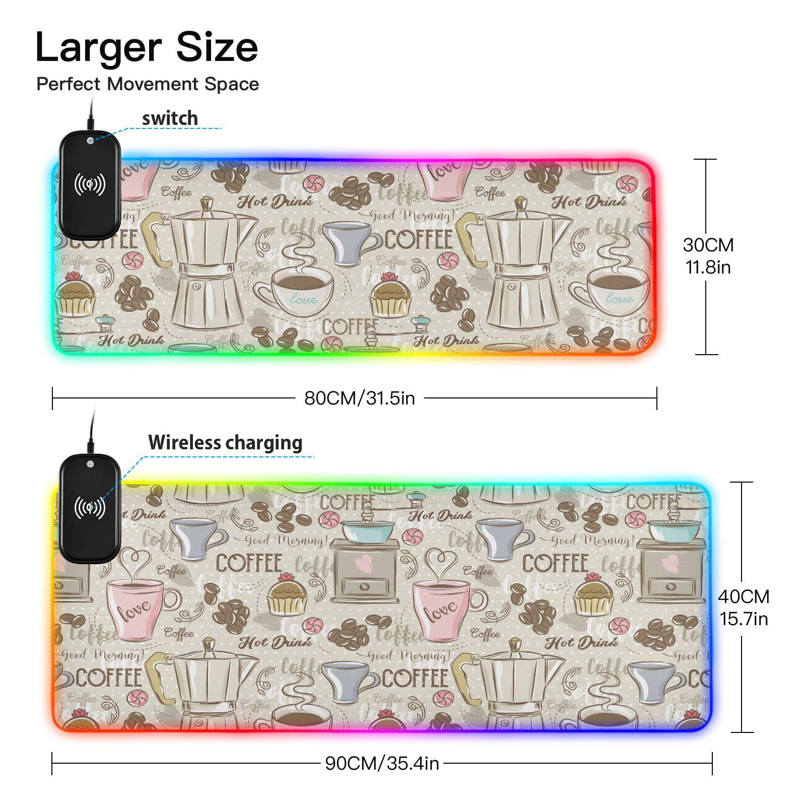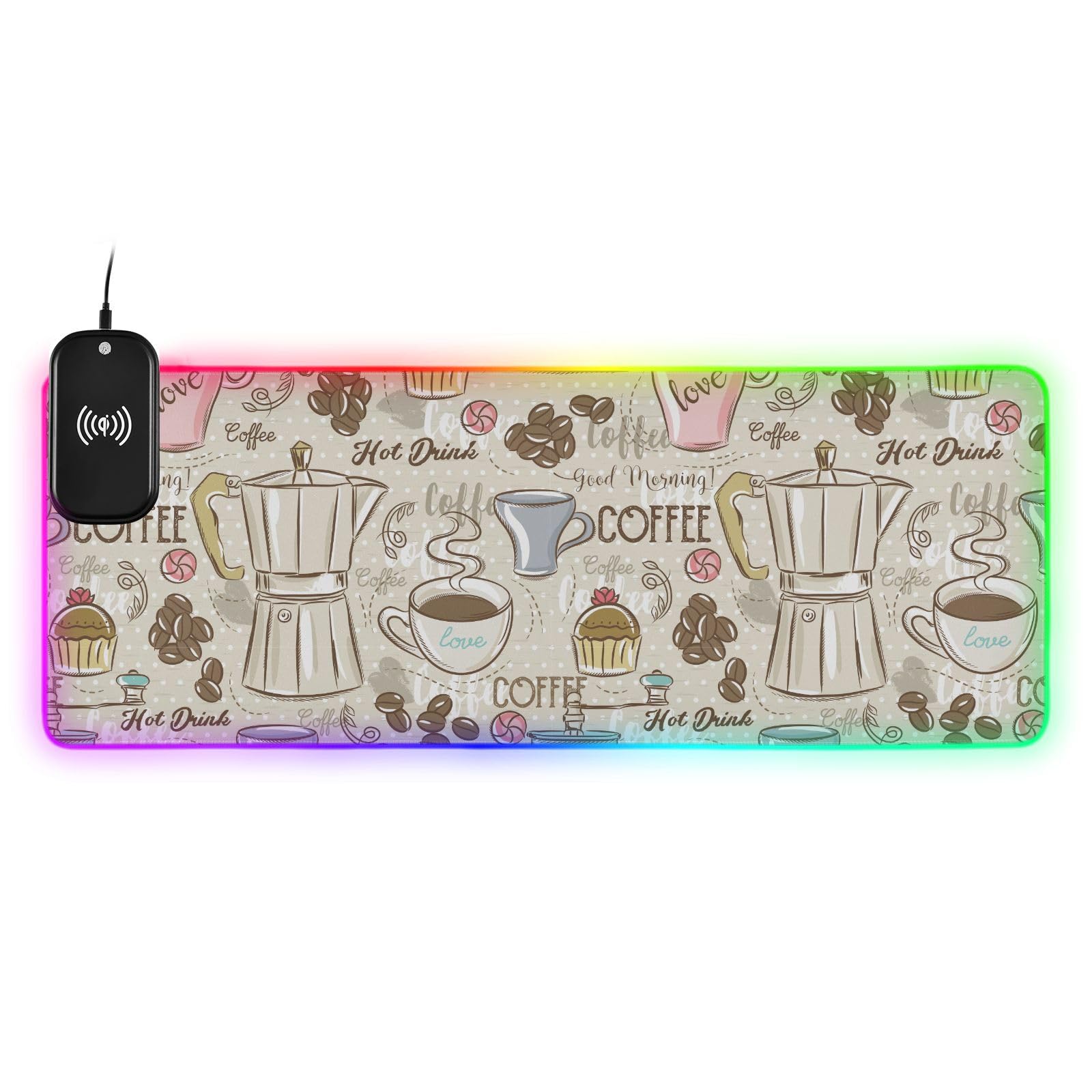 Coffee Maker Wireless Charging Mouse Pad for Mobile Phone Extra Large Gaming Mousepad with 13 Lighting Modes Extended Desk Mat for Gaming MacBook PC Laptop Desk Home Office