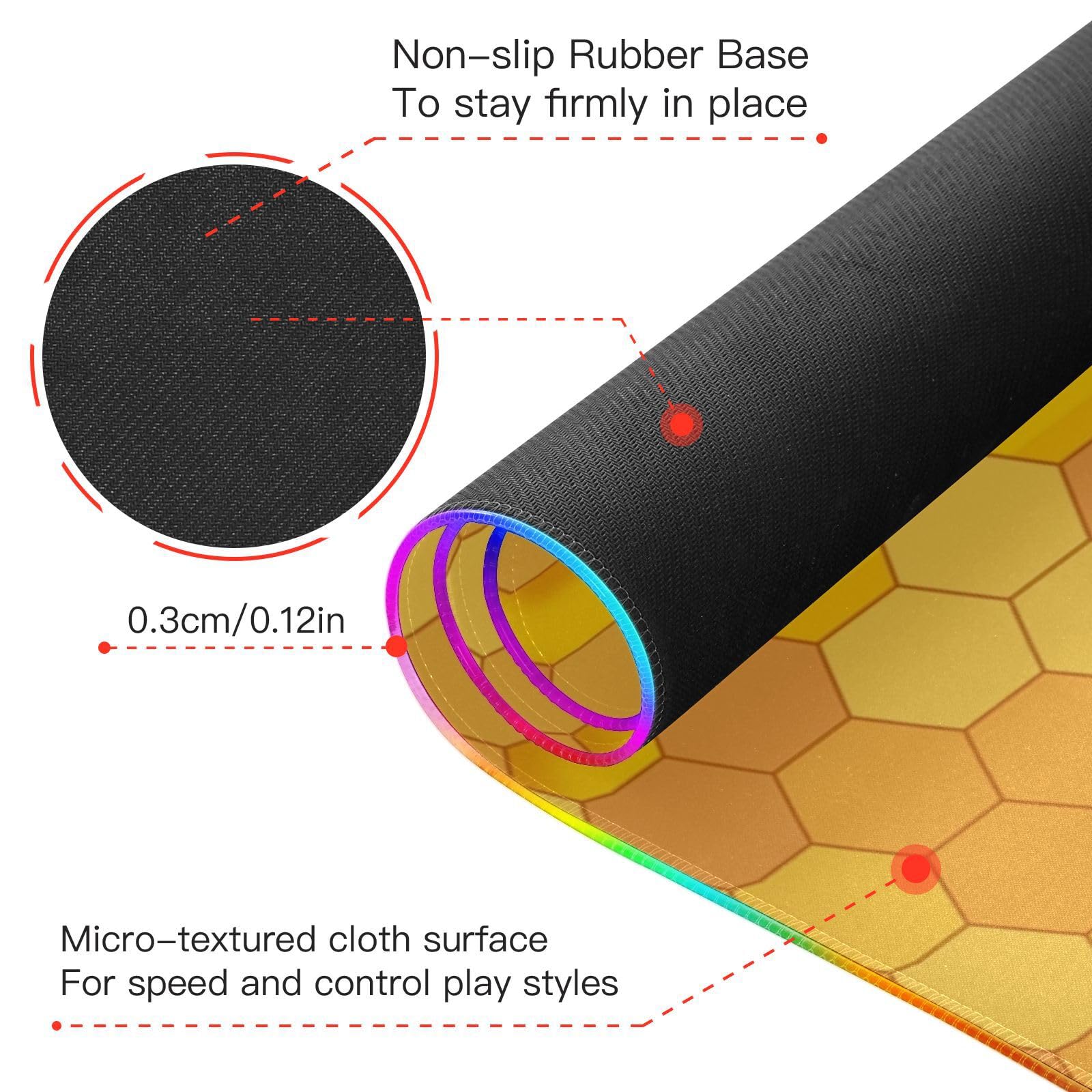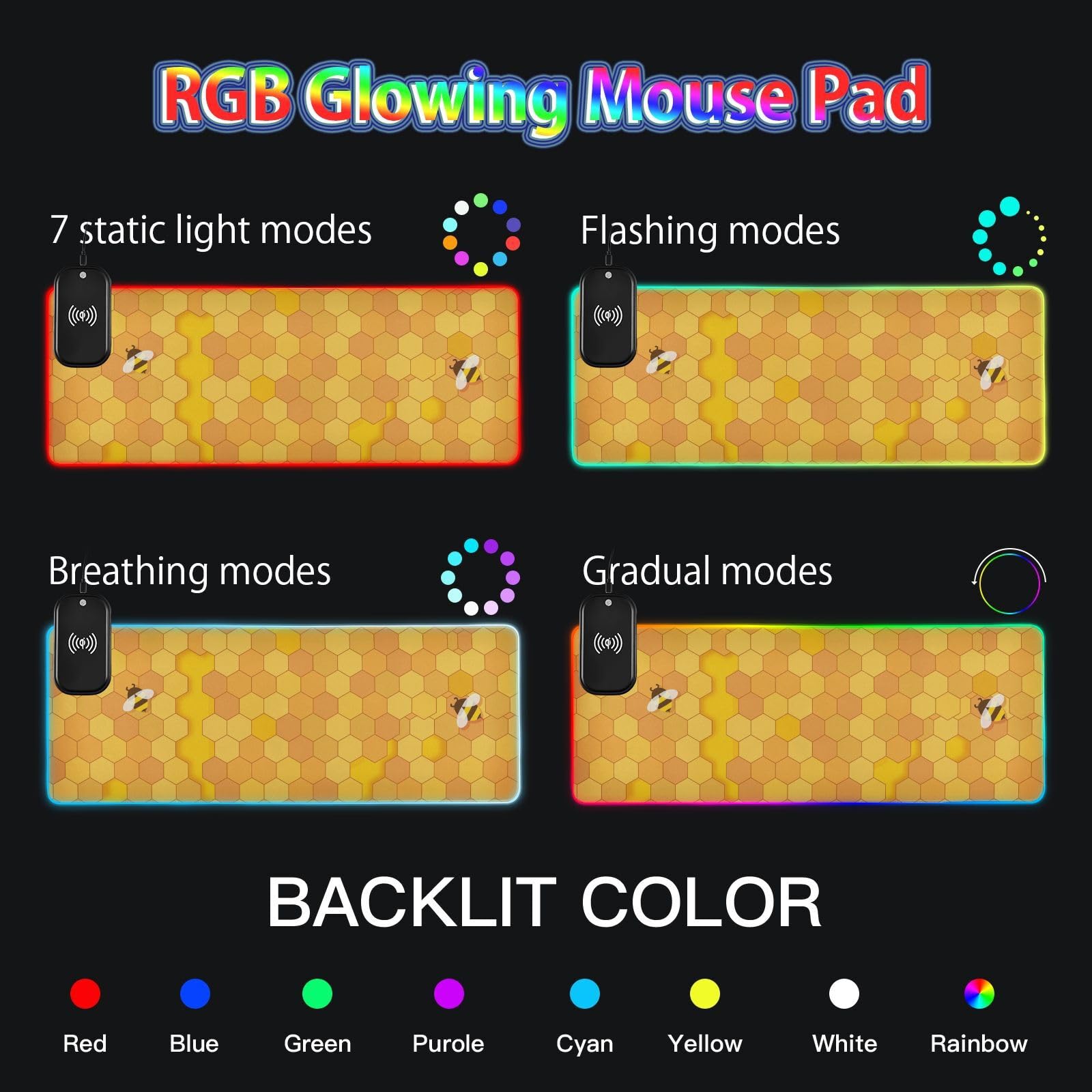 Honey Bee Wireless Charging Mouse Pad for Mobile Phone Extra Large Gaming Mousepad with 13 Lighting Modes Mouse Mat for Gaming MacBook PC Laptop Desk Office Home