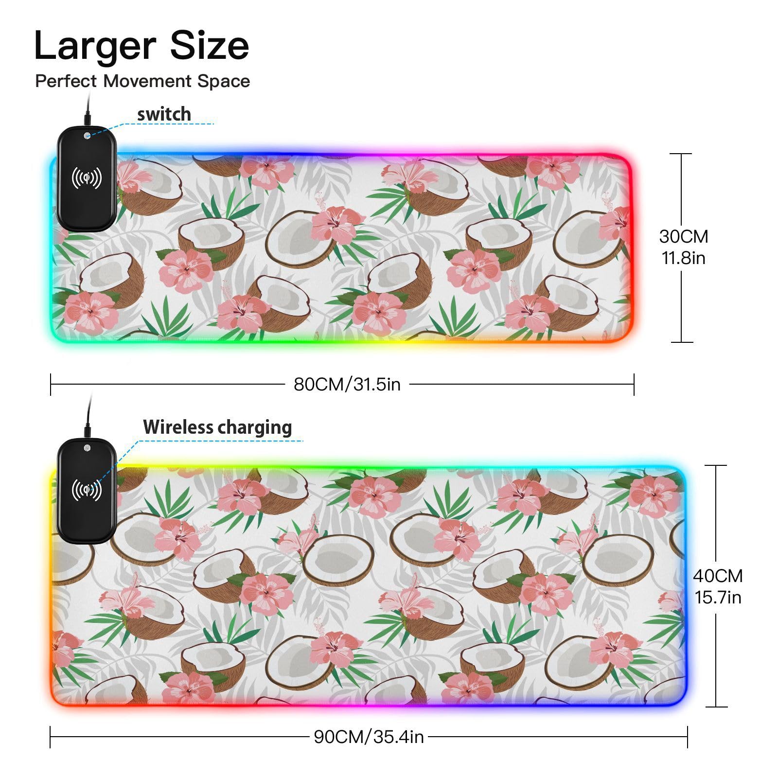 Coconut Piece Palm Leaves Hibiscus Wireless Charging Mouse Pad for Mobile Phone Extra Large Gaming Mousepad with 13 Lighting Modes Keyboard Mat for Gaming MacBook PC Laptop Desk Home Office