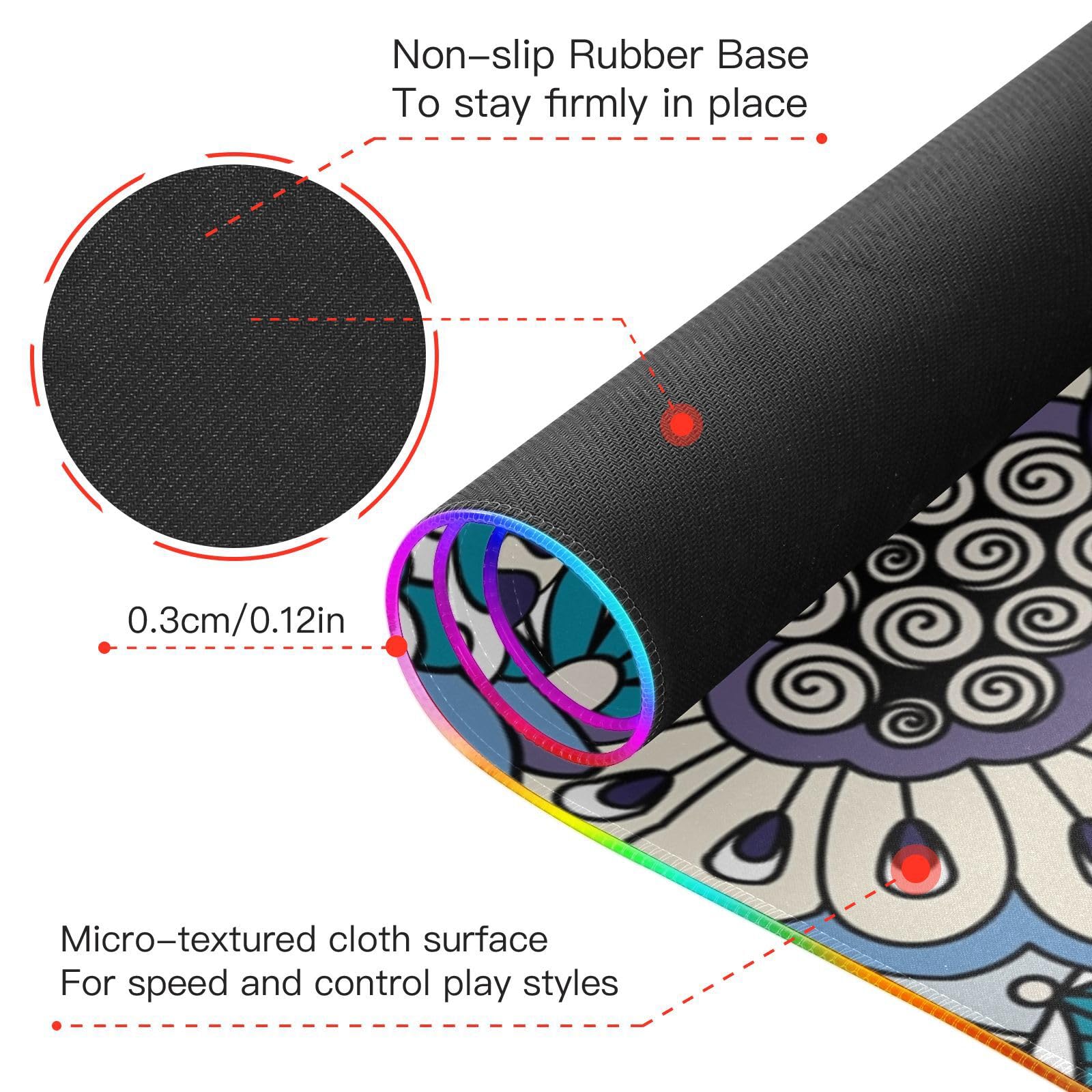 Boho Floral Wireless Charging Mouse Pad for Mobile Phone Extra Large Gaming Mousepad with 13 Lighting Modes Keyboard Mat for Gaming MacBook PC Laptop Desk Office Home