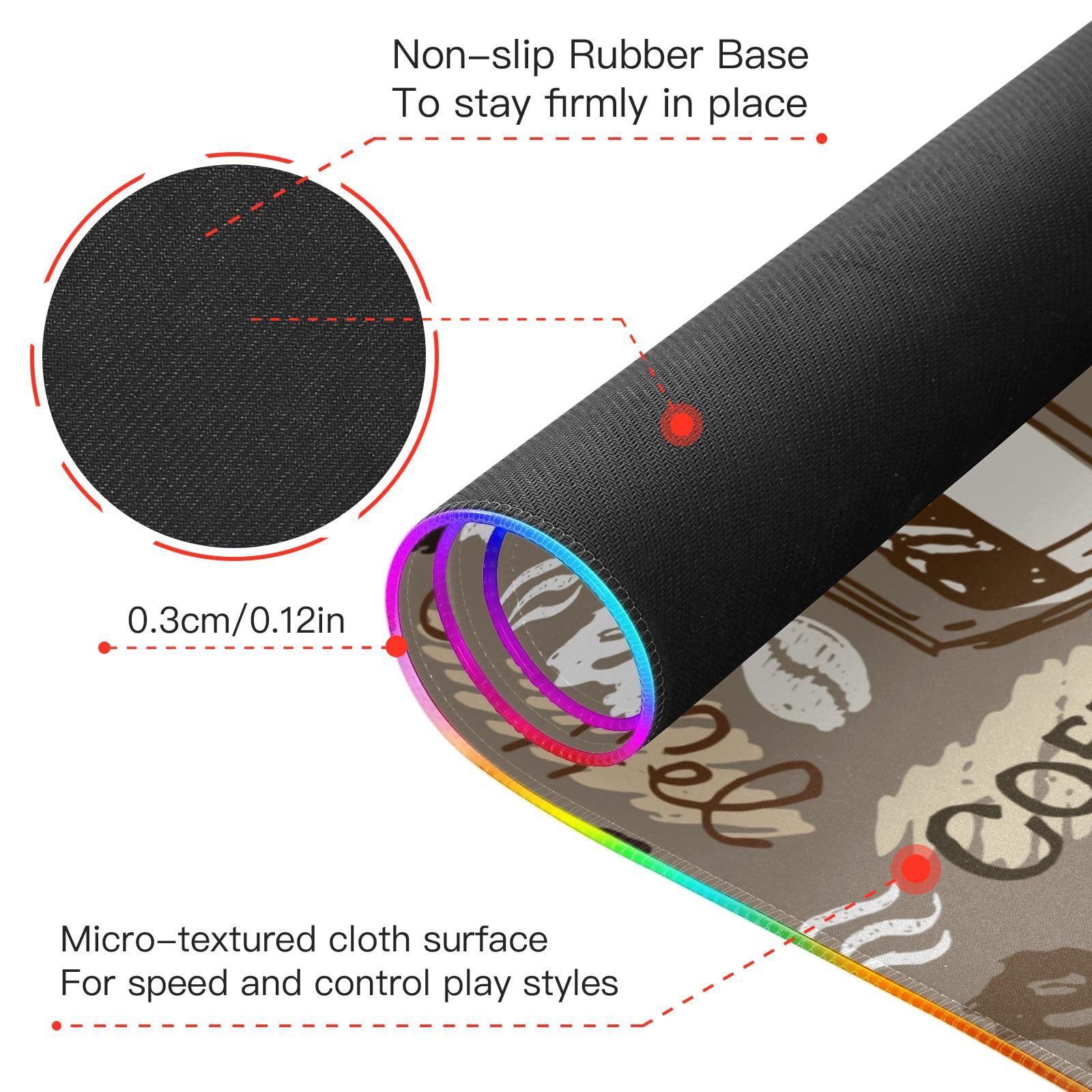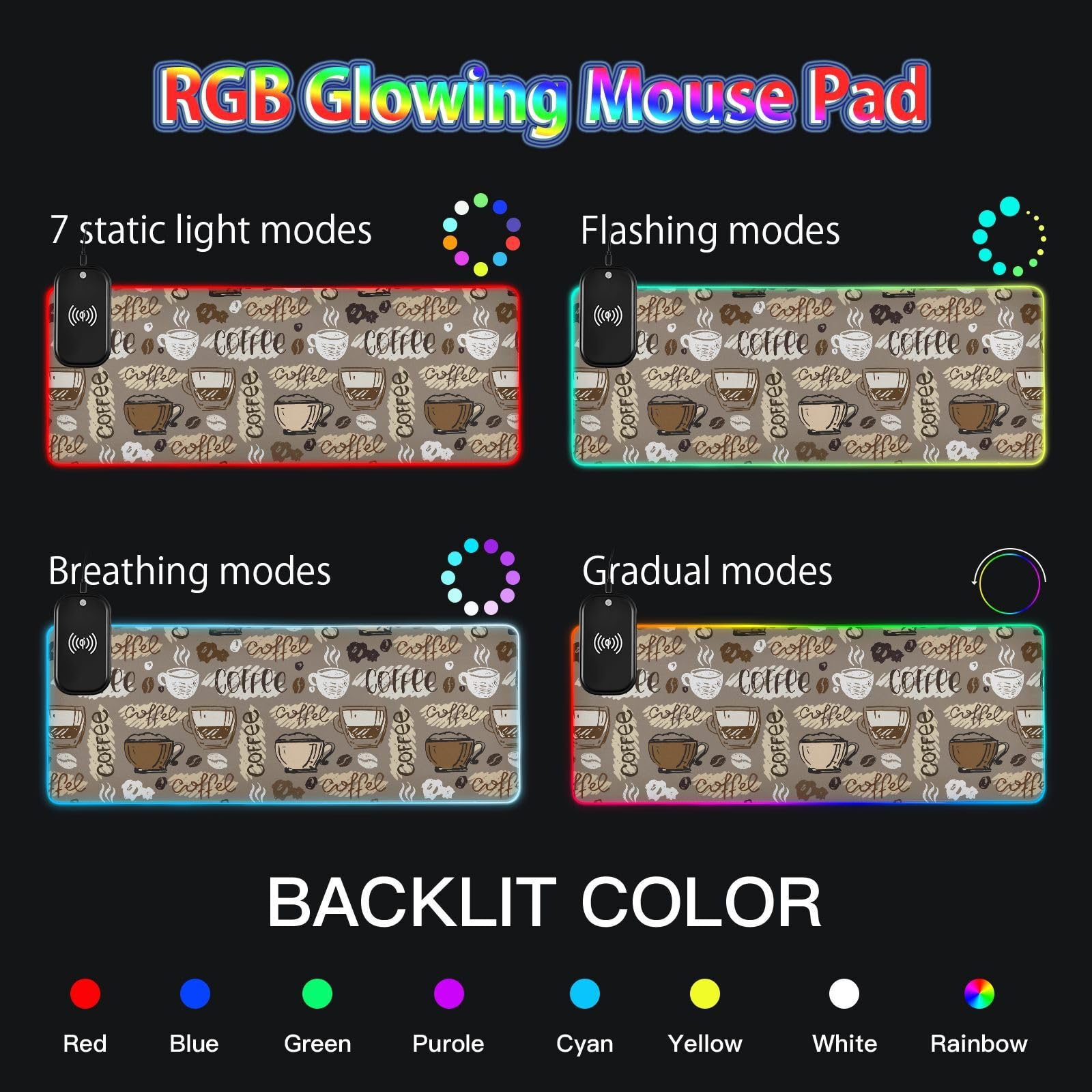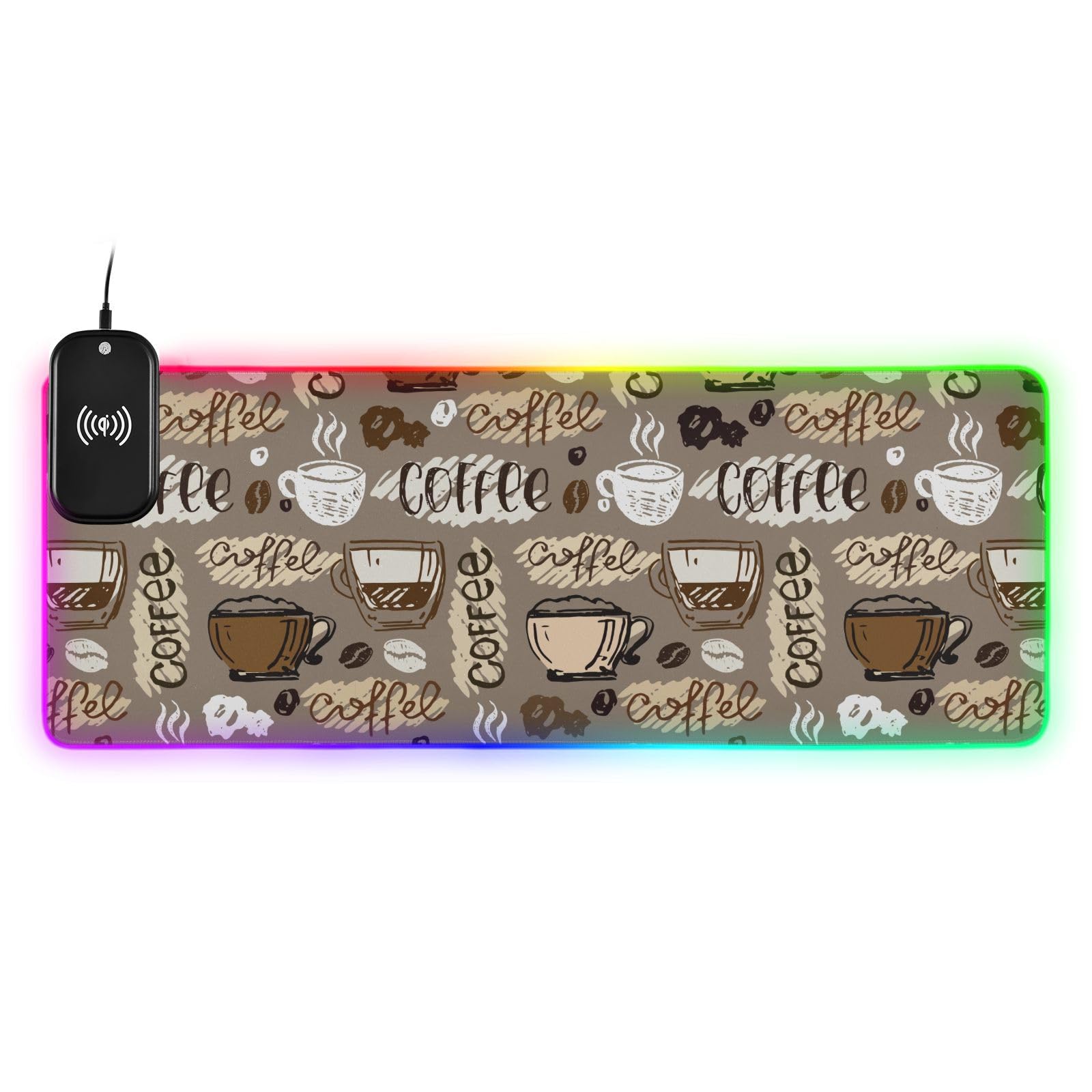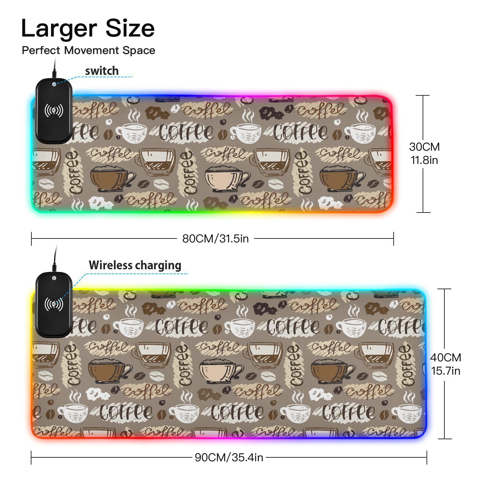 Coffee Wireless Charging Mouse Pad for Mobile Phone Extra Large Gaming Mousepad with 13 Lighting Modes Extended Desk Mat for Office Home Gaming MacBook PC Laptop Desk