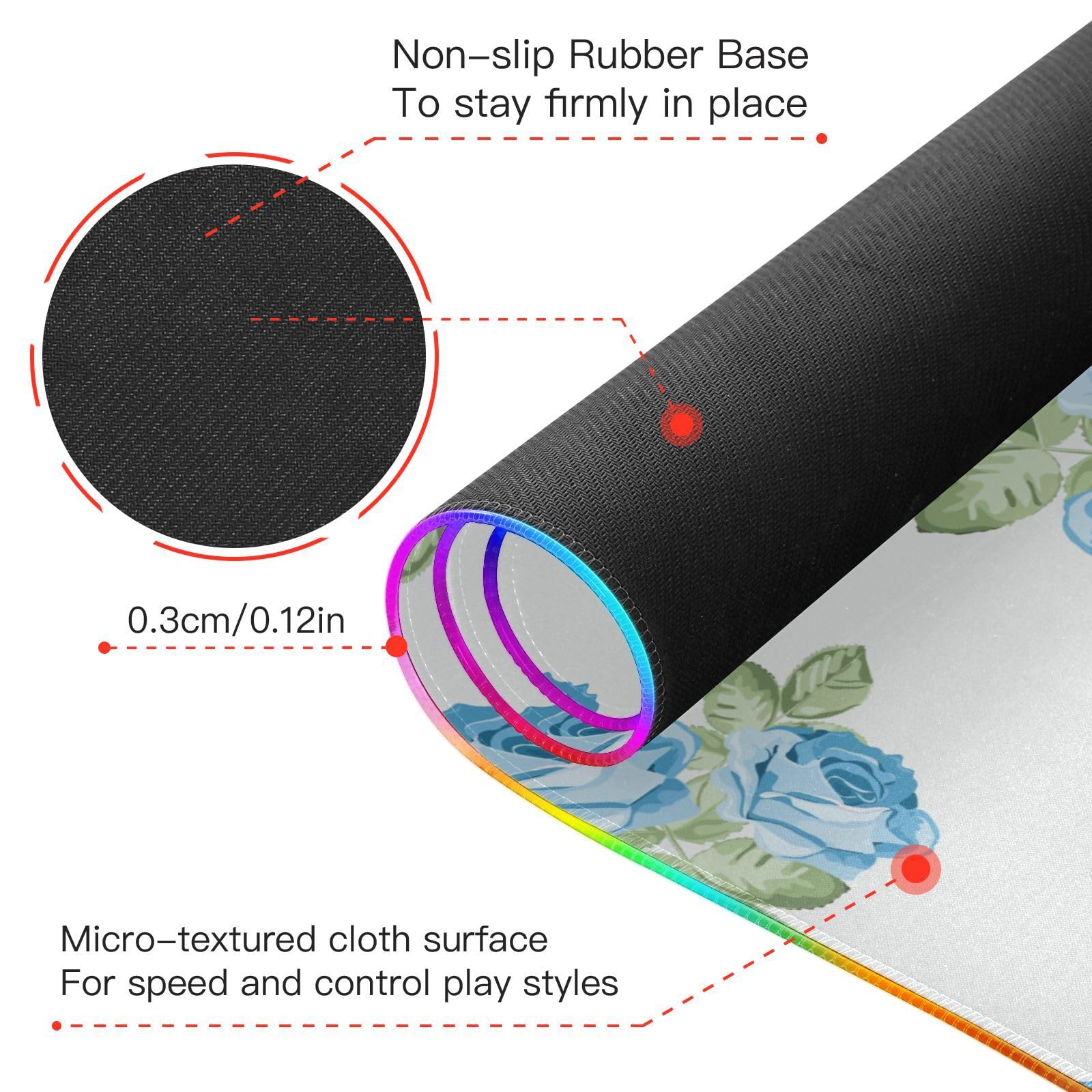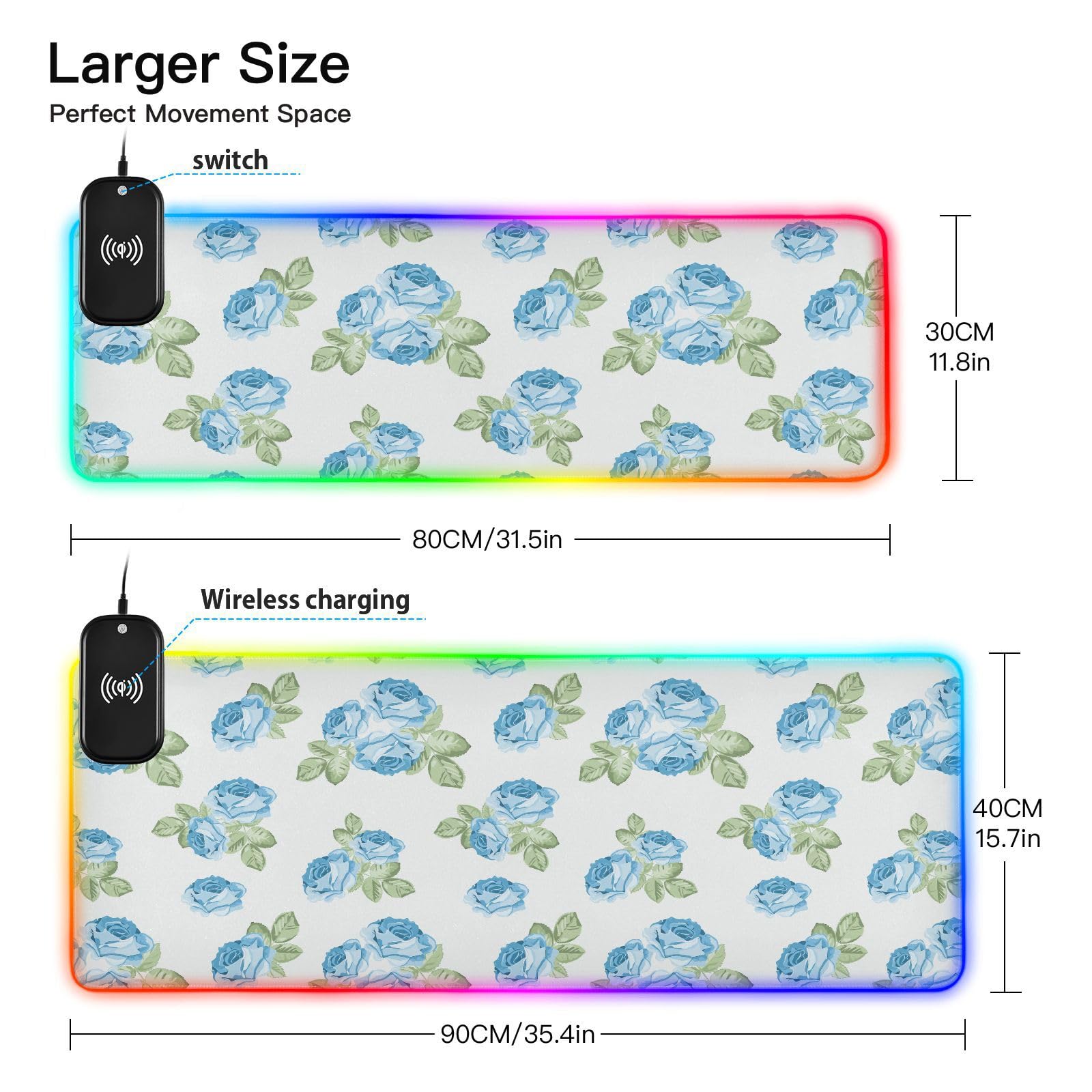 Chic Blue Rose Wireless Charging Mouse Pad for Mobile Phone Extra Large Gaming Mousepad with 13 Lighting Modes Mouse Mat for Gaming MacBook PC Laptop Desk Office Home