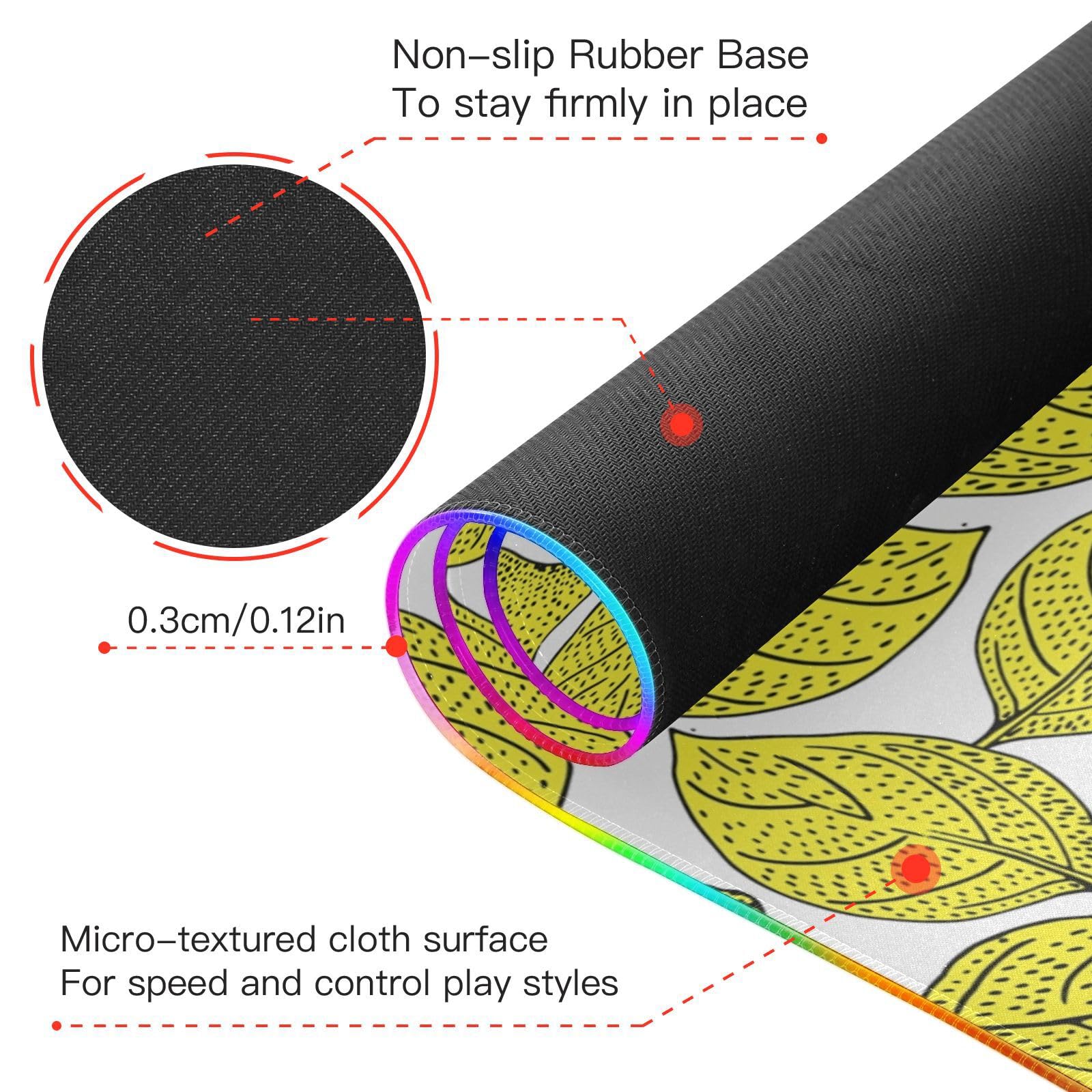 Floral Lemon Fruits Leaves Wireless Charging Mouse Pad for Mobile Phone Extra Large Gaming Mousepad with 13 Lighting Modes Computer Mat for Gaming MacBook PC Laptop Desk Office Home