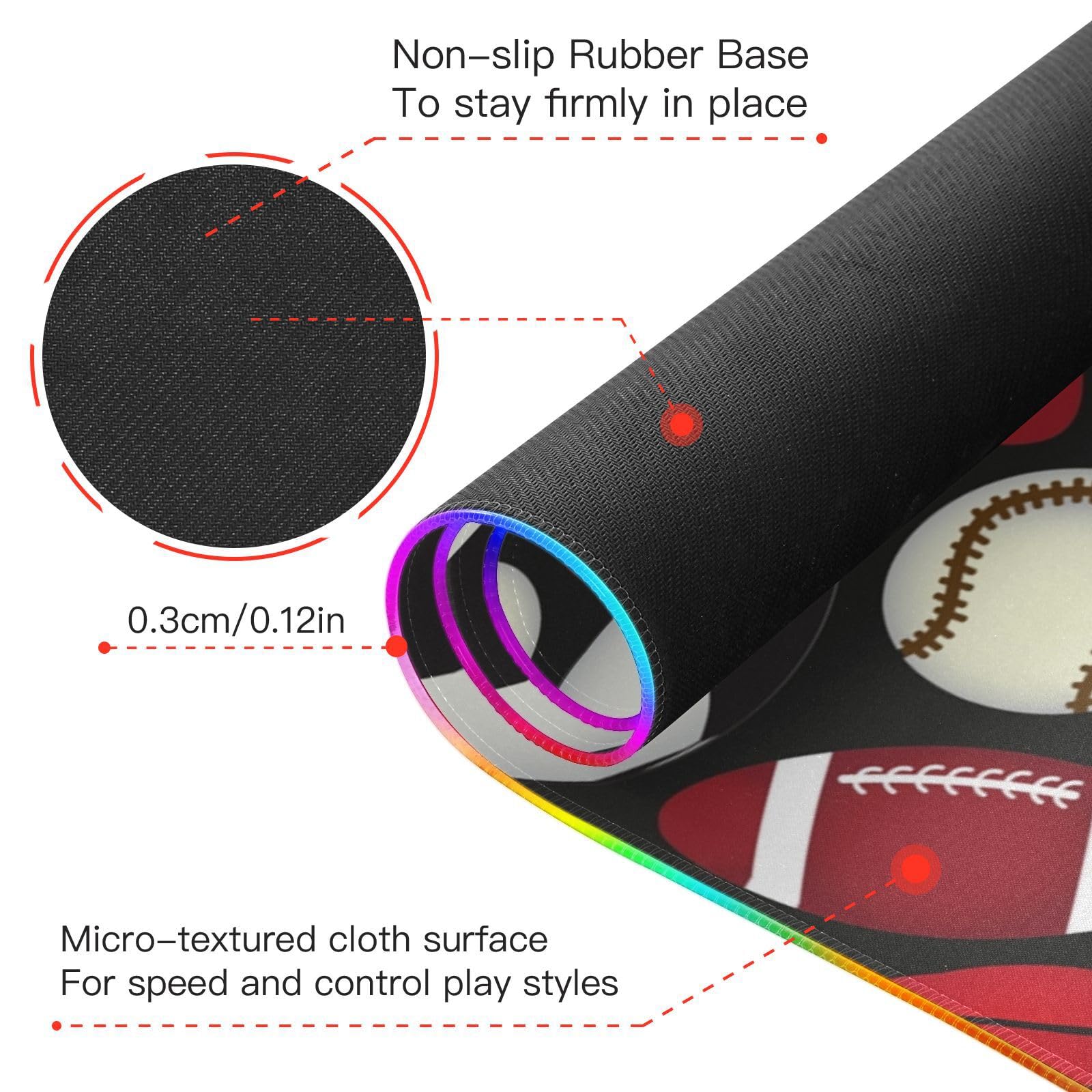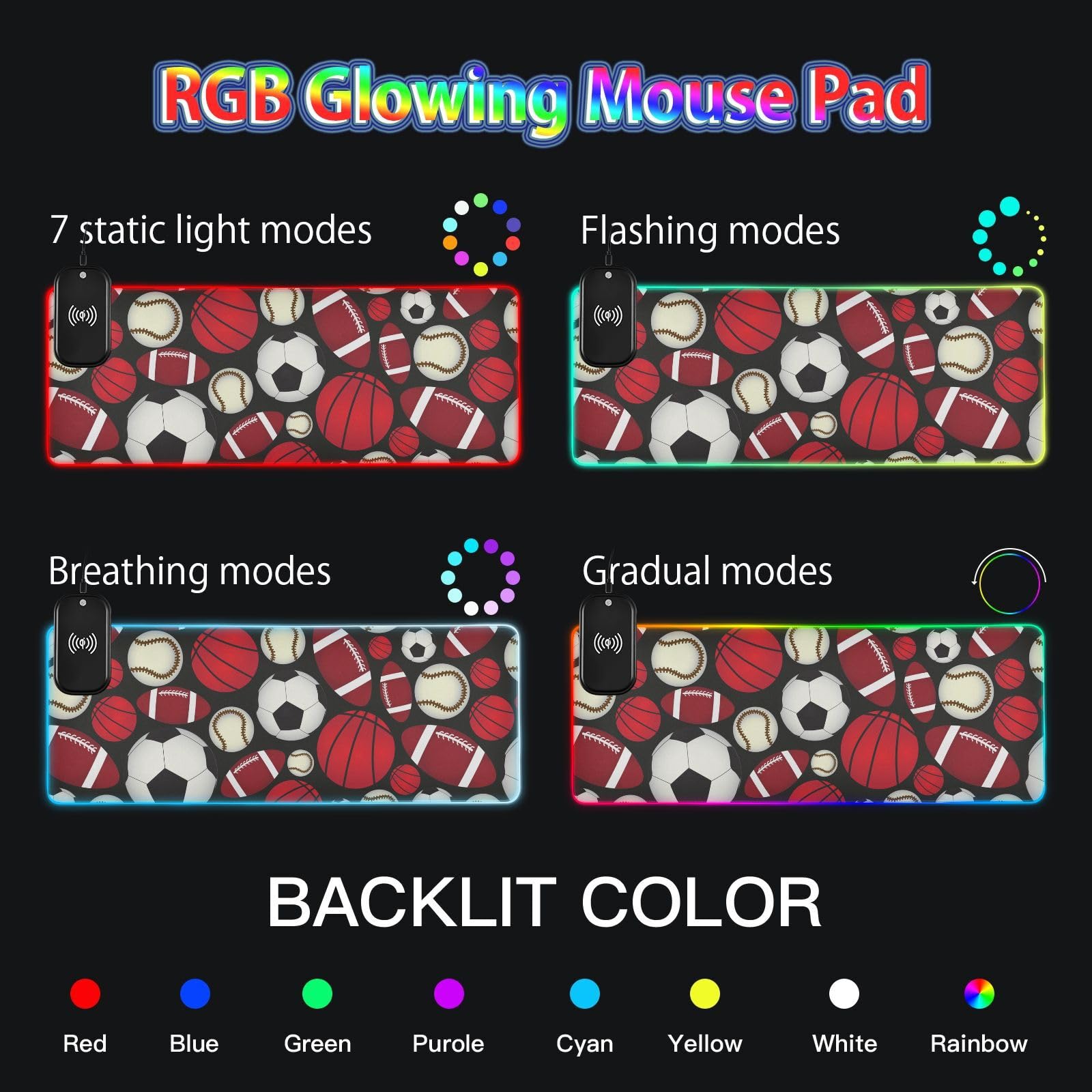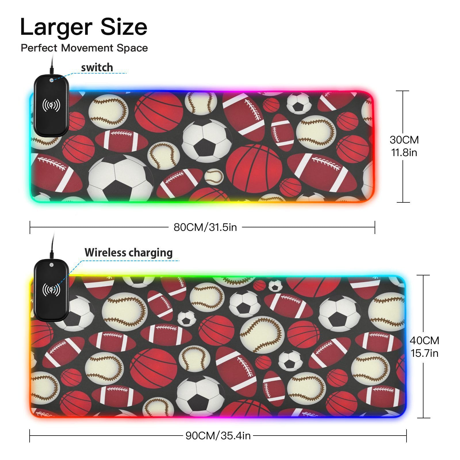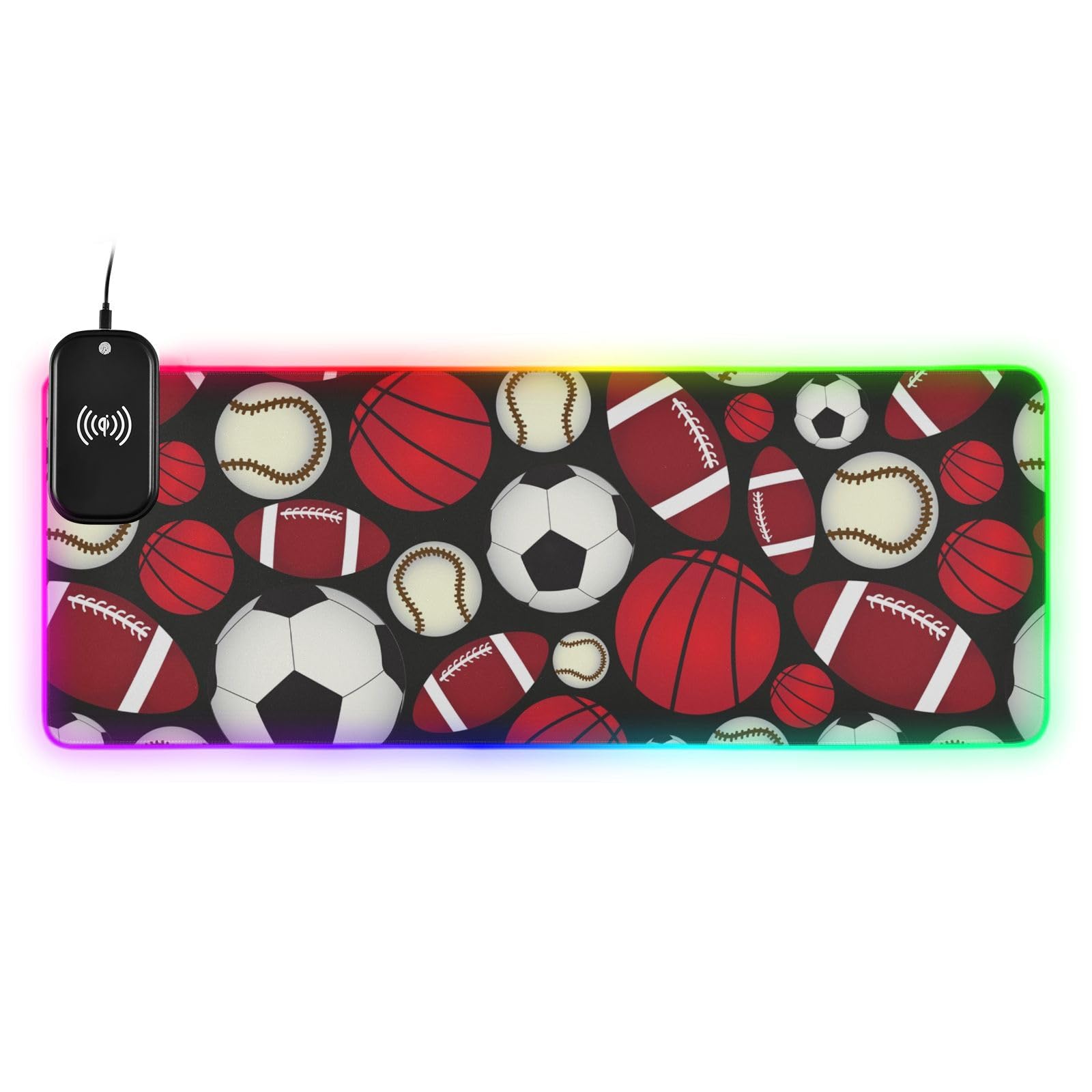 Football Soccer Baseball Sports Fan Wireless Charging Mouse Pad for Mobile Phone Extra Large Gaming Mousepad with 13 Lighting Modes Computer Mat for Gaming MacBook PC Laptop Desk Home Office