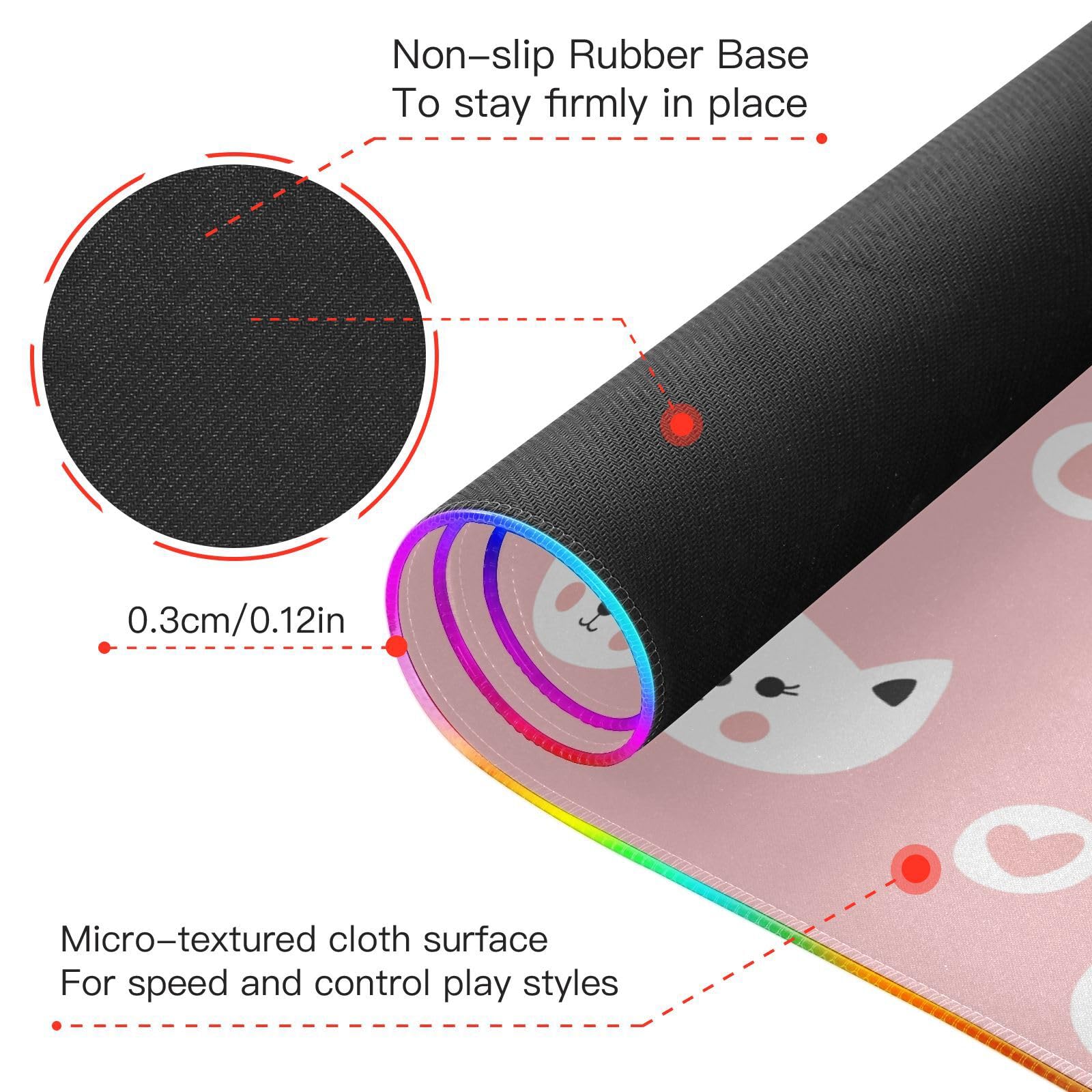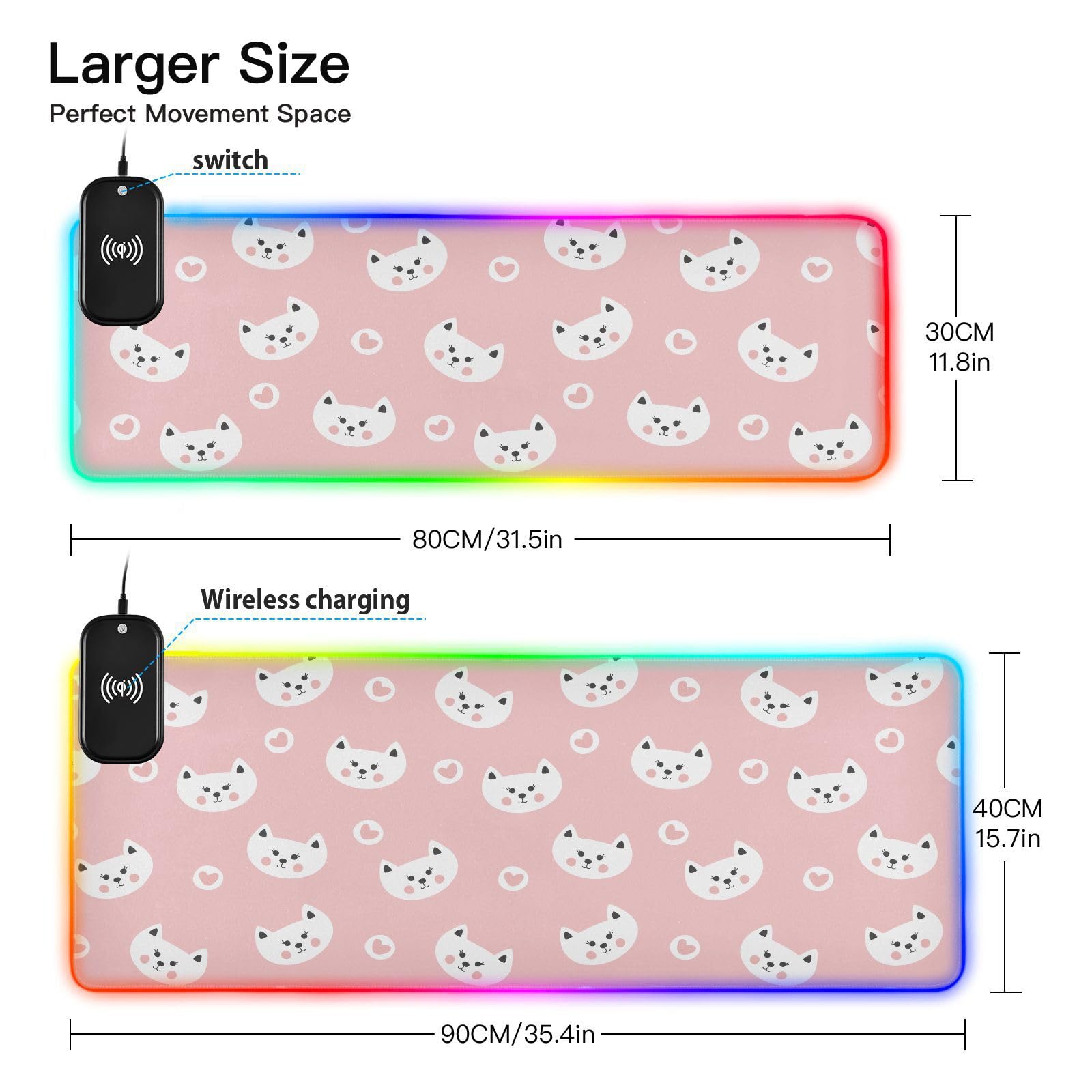 Cute Cats Hearts Wireless Charging Mouse Pad for Mobile Phone Extra Large Gaming Mousepad with 13 Lighting Modes Computer Mat for Office Home Gaming MacBook PC Laptop Desk
