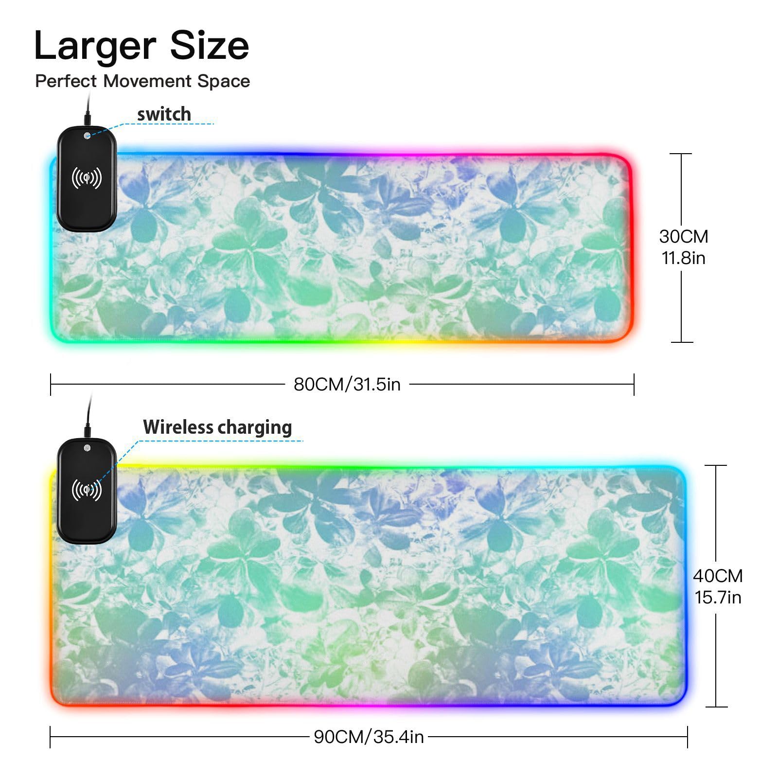 Color Leaves Wireless Charging Mouse Pad for Mobile Phone Extra Large Gaming Mousepad with 13 Lighting Modes Mouse Mat for MacBook PC Laptop Desk Office Home Gaming