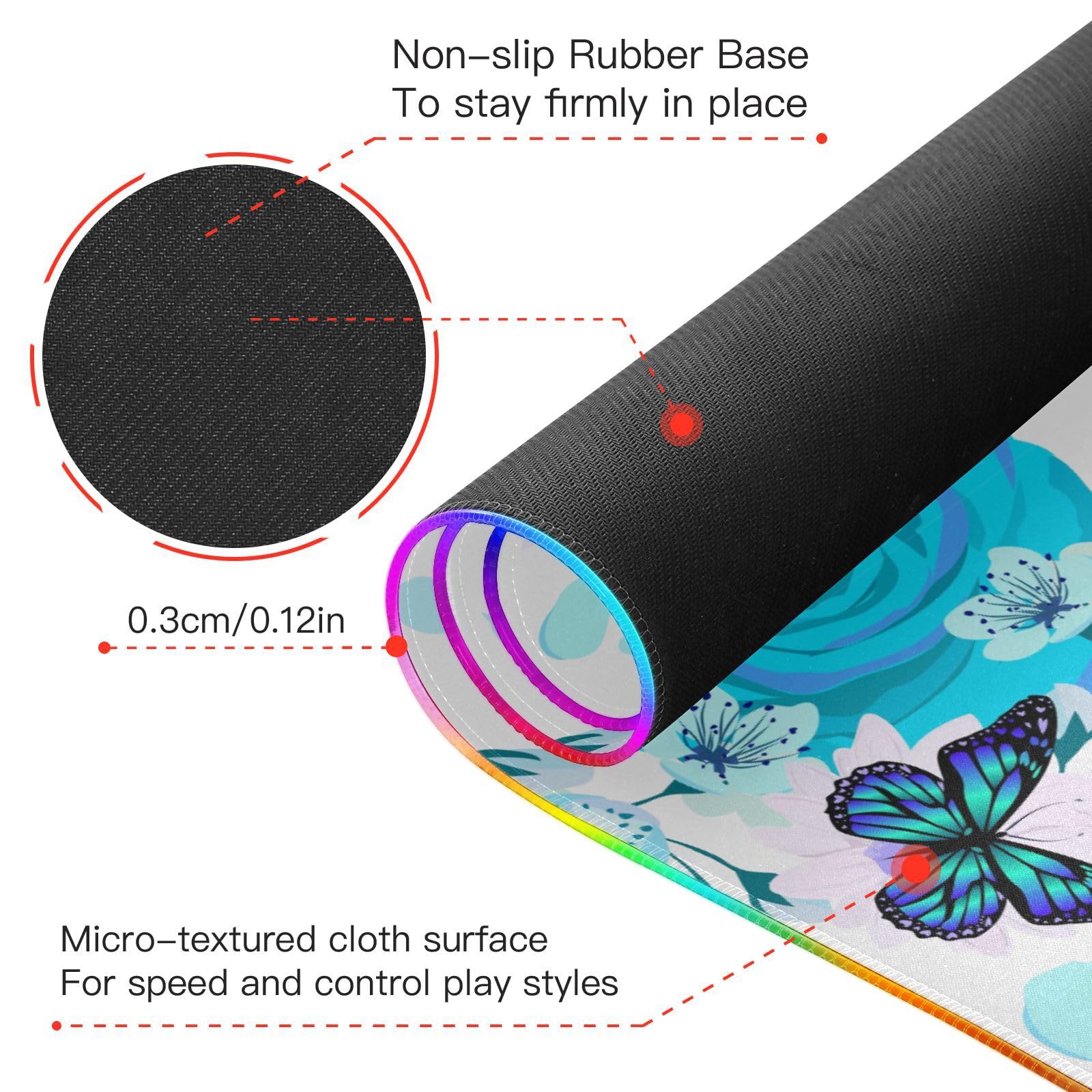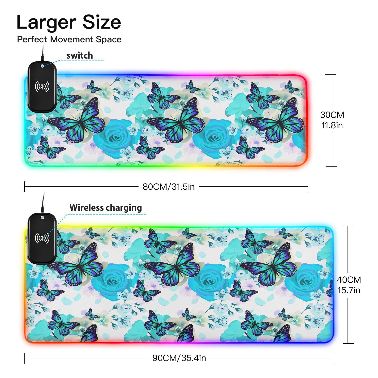 Flowers Butterfly Wireless Charging Mouse Pad for Mobile Phone Extra Large Gaming Mousepad with 13 Lighting Modes Extended Desk Mat for Office Home Gaming MacBook PC Laptop Desk