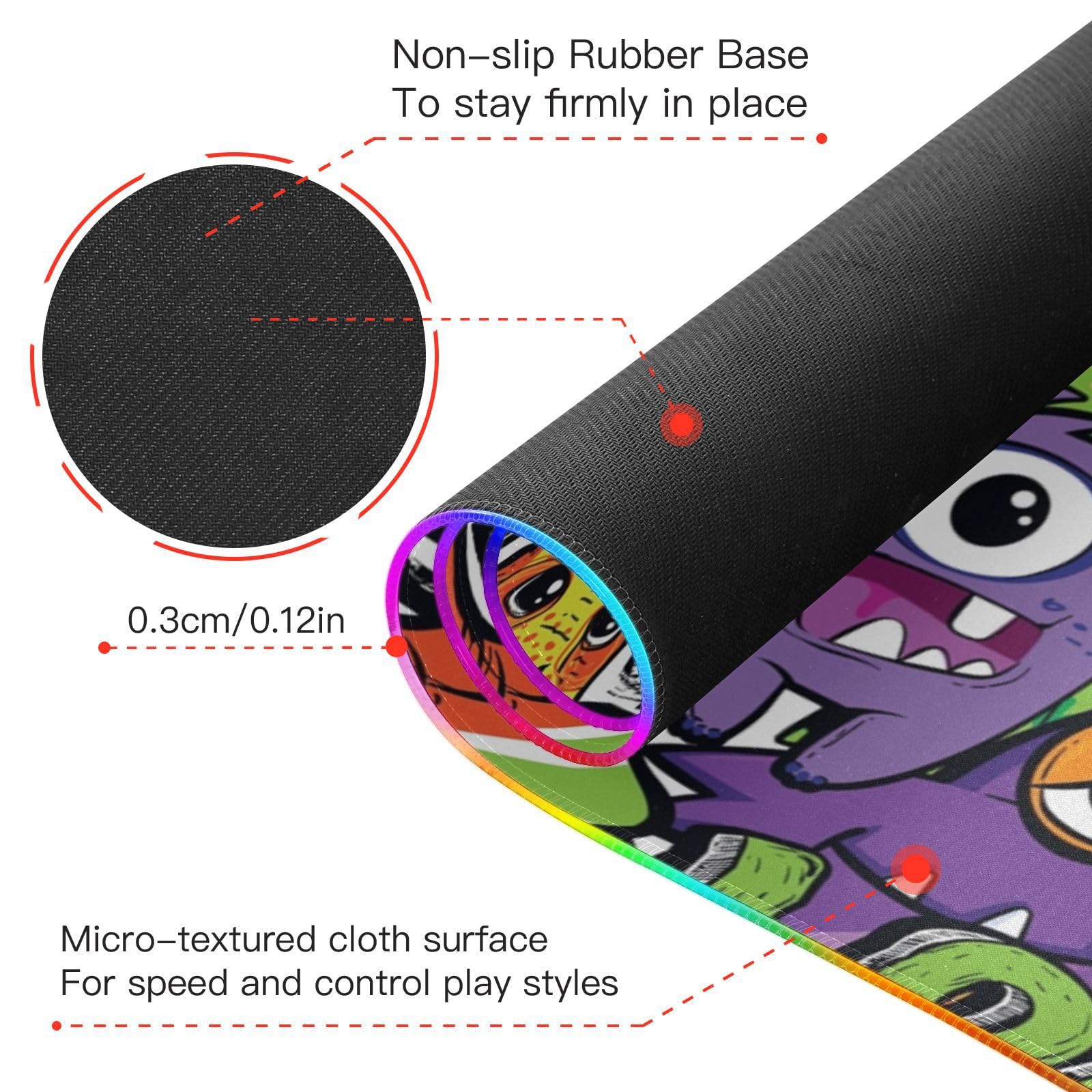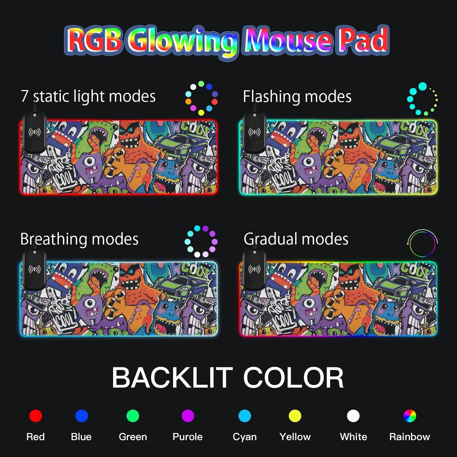 Cartoon Monsters Wireless Charging Mouse Pad for Mobile Phone Extra Large Gaming Mousepad with 13 Lighting Modes Keyboard Mat for Office Home Gaming MacBook PC Laptop Desk