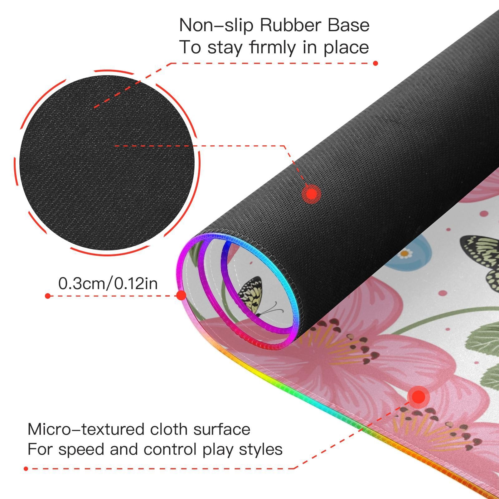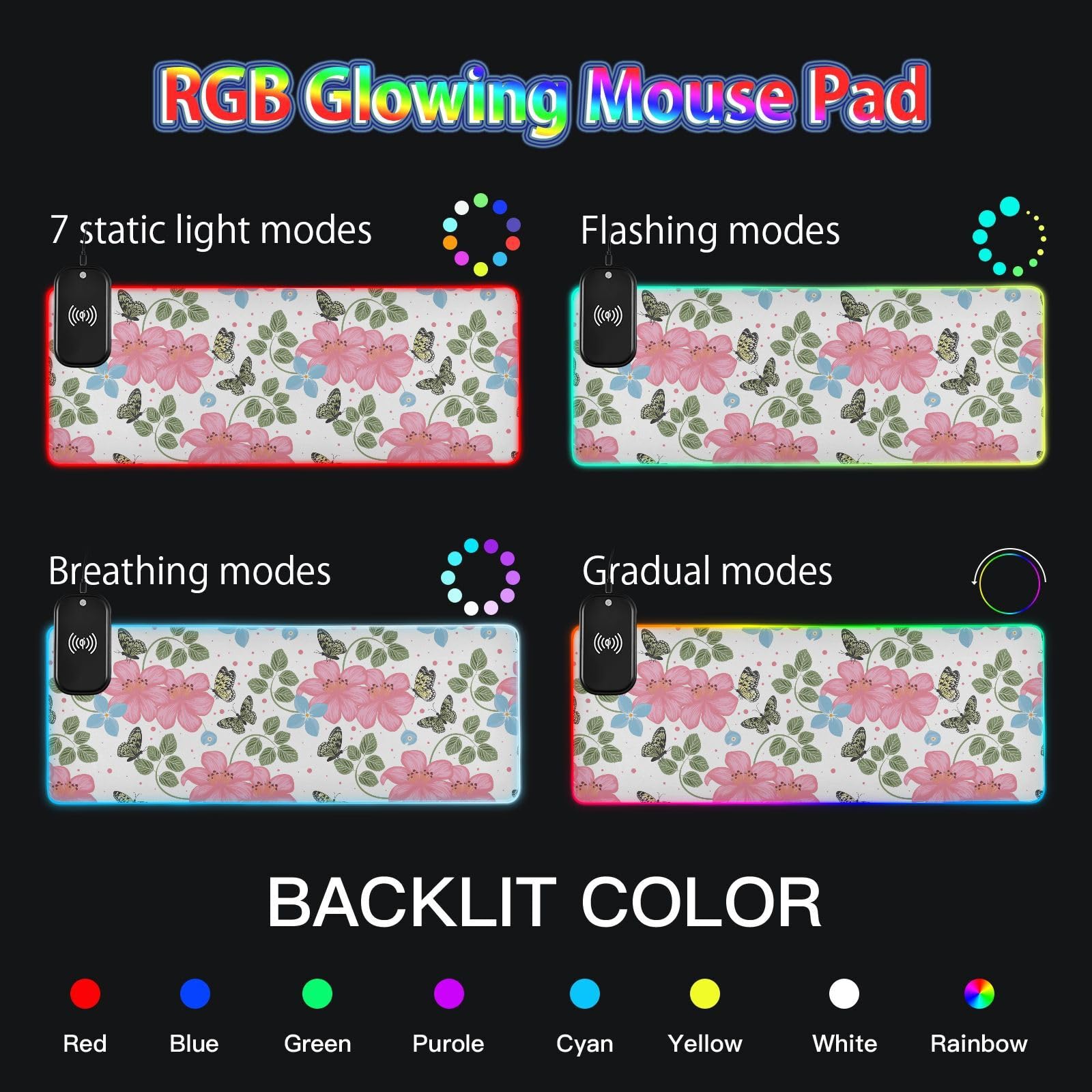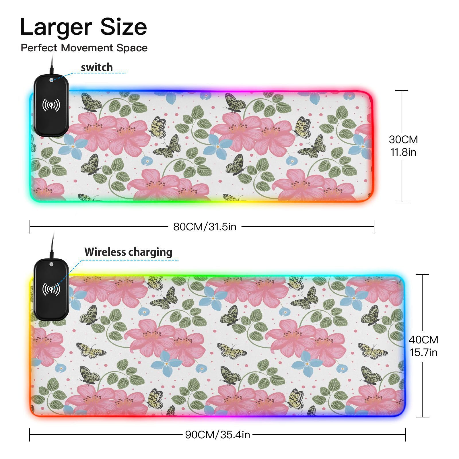 Beautiful Butterfly Wireless Charging Mouse Pad for Mobile Phone Extra Large Gaming Mousepad with 13 Lighting Modes Keyboard Mat for Gaming MacBook PC Laptop Desk Home Office