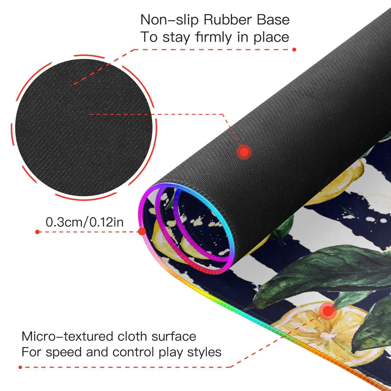 Flowers Leaves Lemon Wireless Charging Mouse Pad for Mobile Phone Extra Large Gaming Mousepad with 13 Lighting Modes Extended Desk Mat for Office Home Gaming MacBook PC Laptop Desk