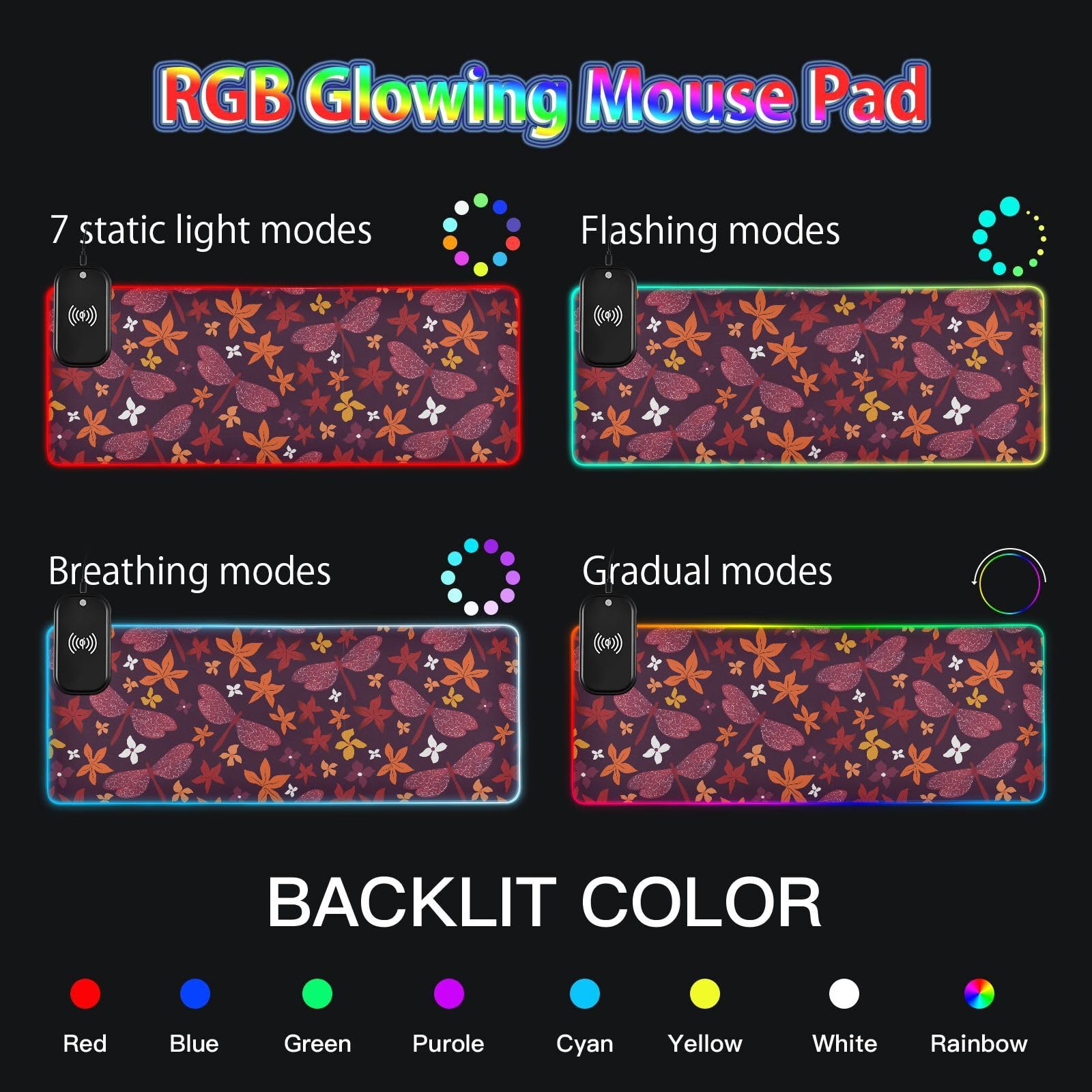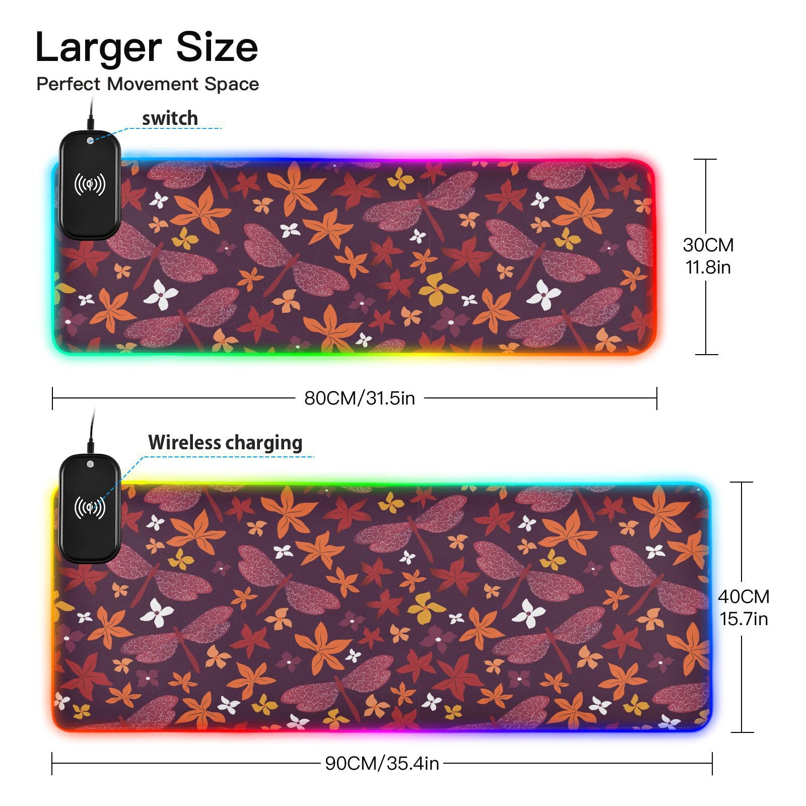 Autumn Fall Dragonfly Wireless Charging Mouse Pad for Mobile Phone Extra Large Gaming Mousepad with 13 Lighting Modes Computer Mat for Gaming MacBook PC Laptop Desk Office Home