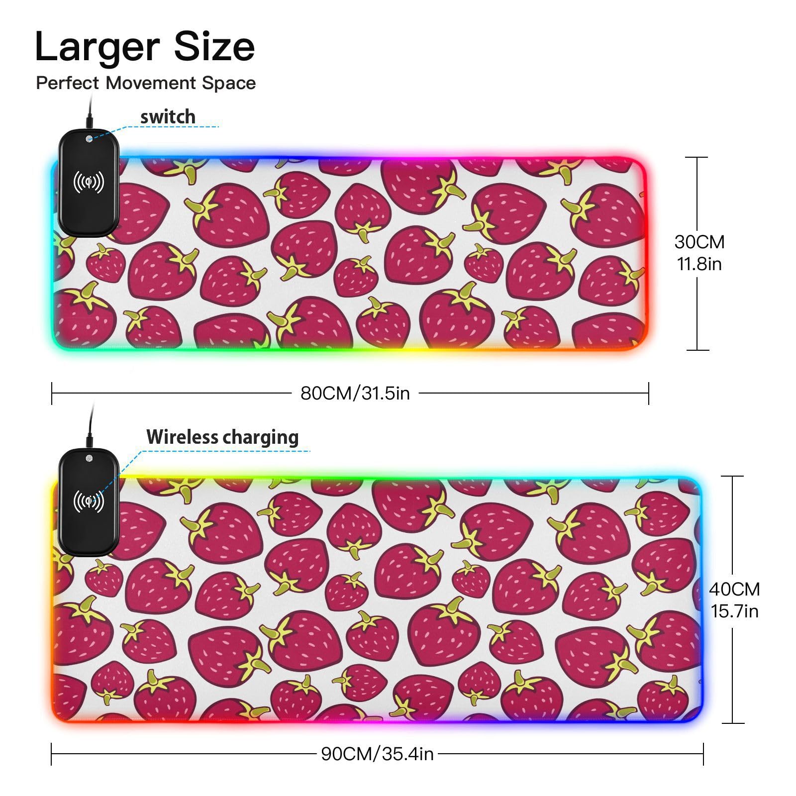 Fruit Red Strawberry Berry Wireless Charging Mouse Pad for Mobile Phone Extra Large Gaming Mousepad with 13 Lighting Modes Mouse Mat for Gaming MacBook PC Laptop Desk Office Home