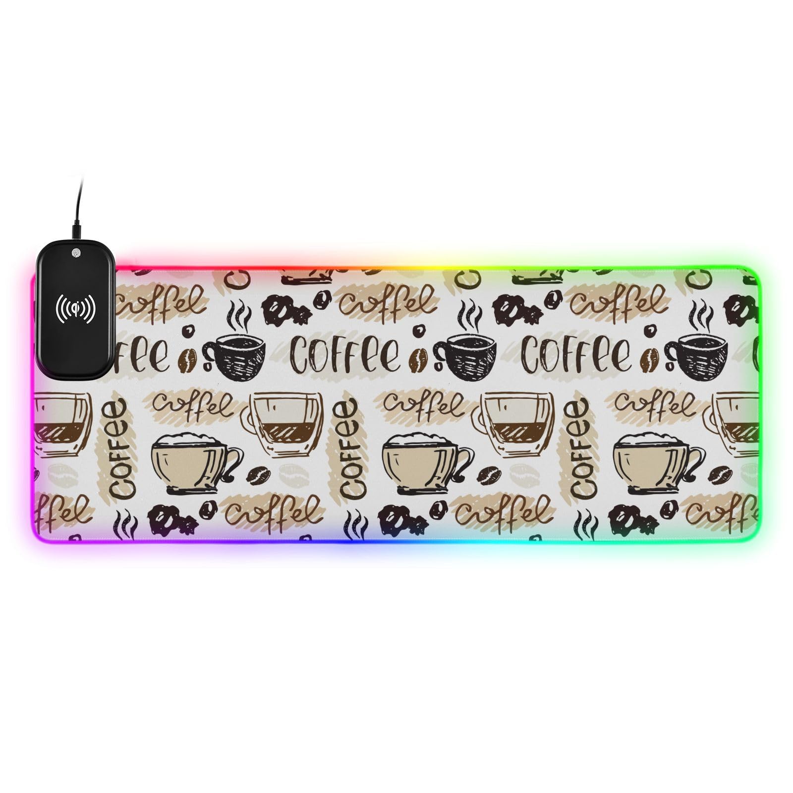 Coffee Wireless Charging Mouse Pad for Mobile Phone Extra Large Gaming Mousepad with 13 Lighting Modes Mouse Mat for Gaming MacBook PC Laptop Desk Office Home