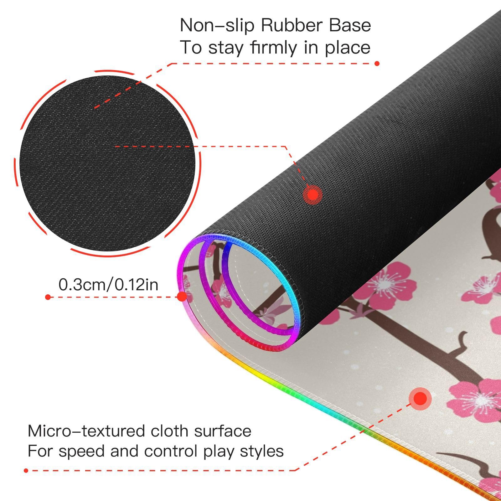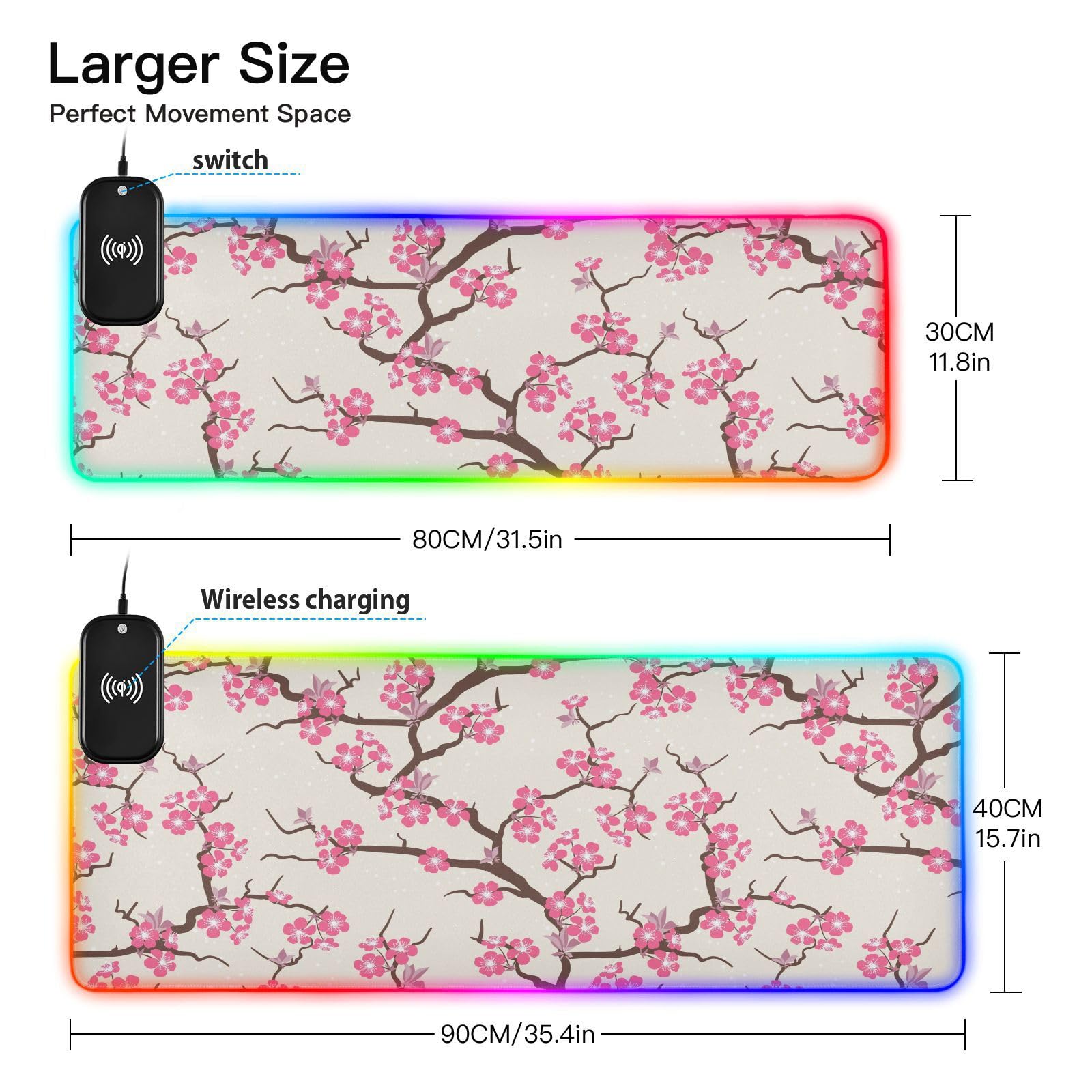 Cherry Tree Wireless Charging Mouse Pad for Mobile Phone Extra Large Gaming Mousepad with 13 Lighting Modes Computer Mat for Gaming MacBook PC Laptop Desk Office Home