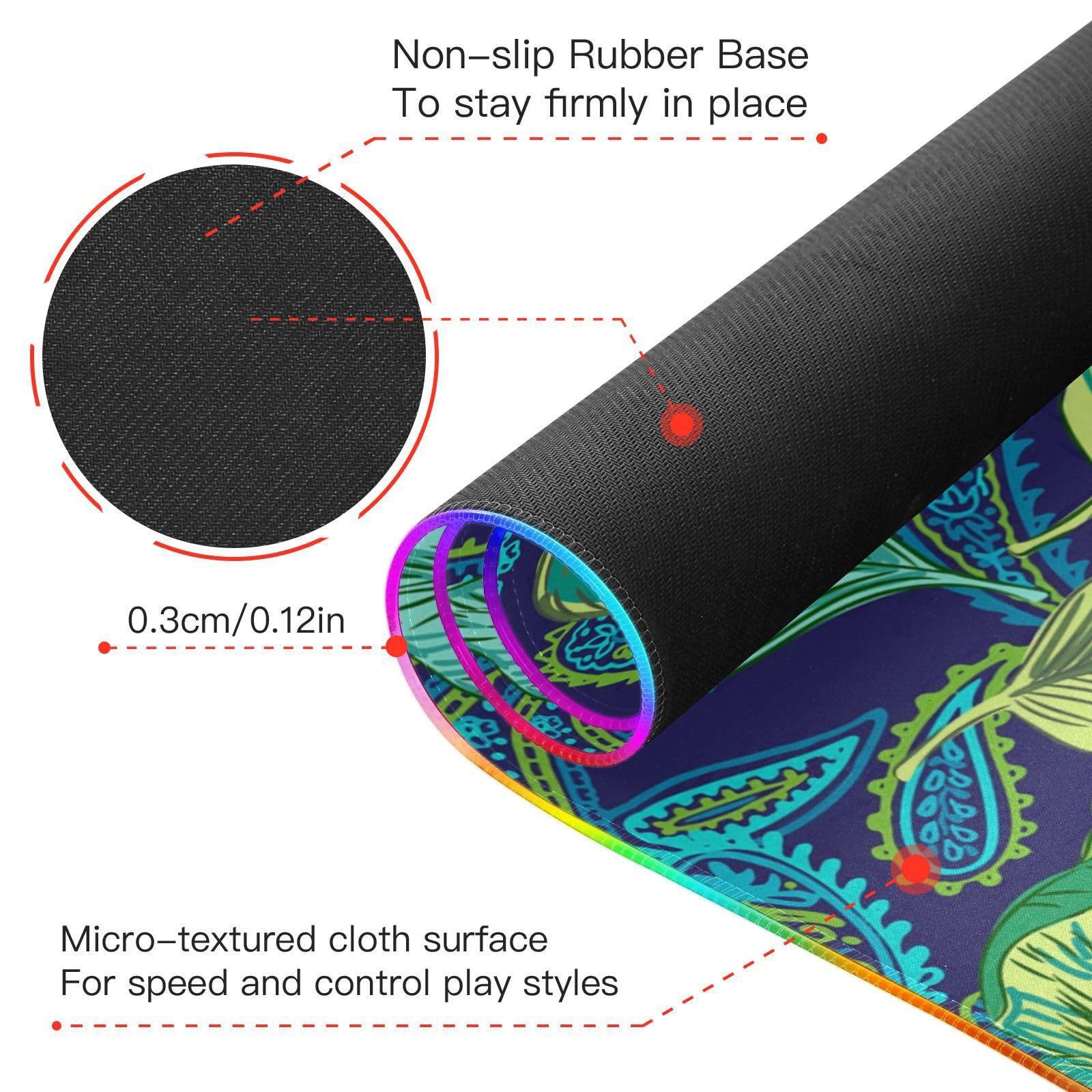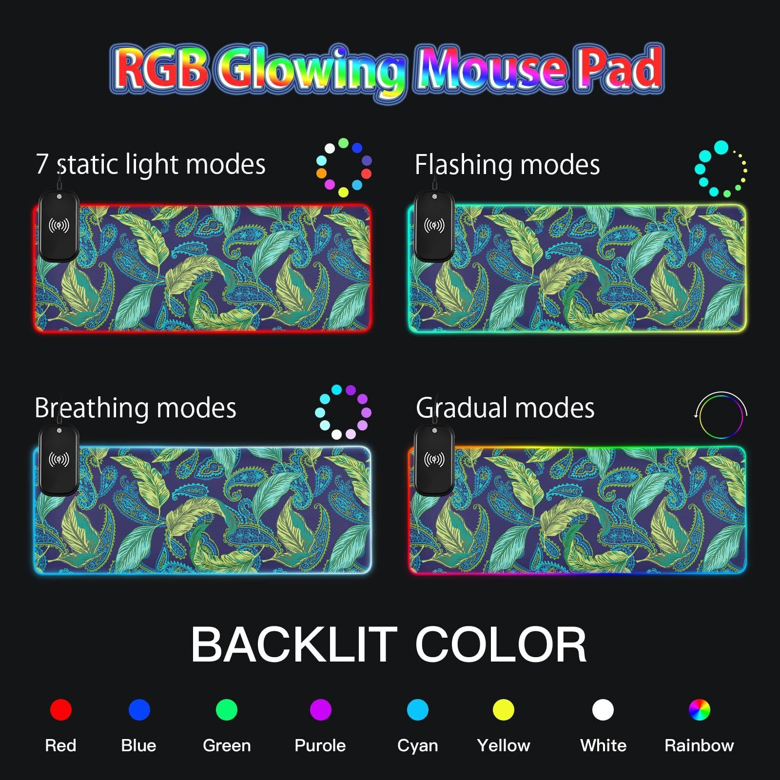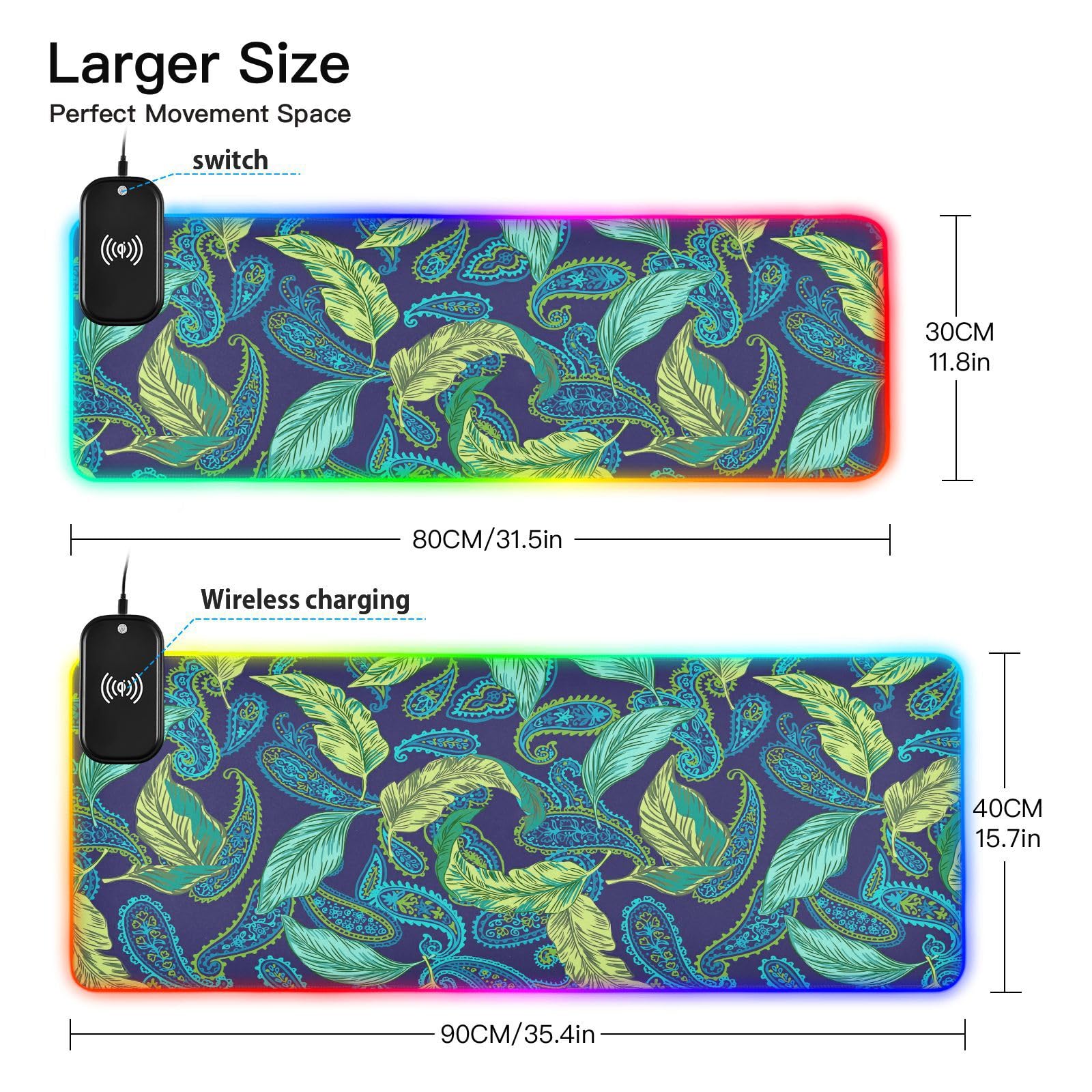 Blue Paisley Leaves Wireless Charging Mouse Pad for Mobile Phone Extra Large Gaming Mousepad with 13 Lighting Modes Mouse Mat for Office Home Gaming MacBook PC Laptop Desk