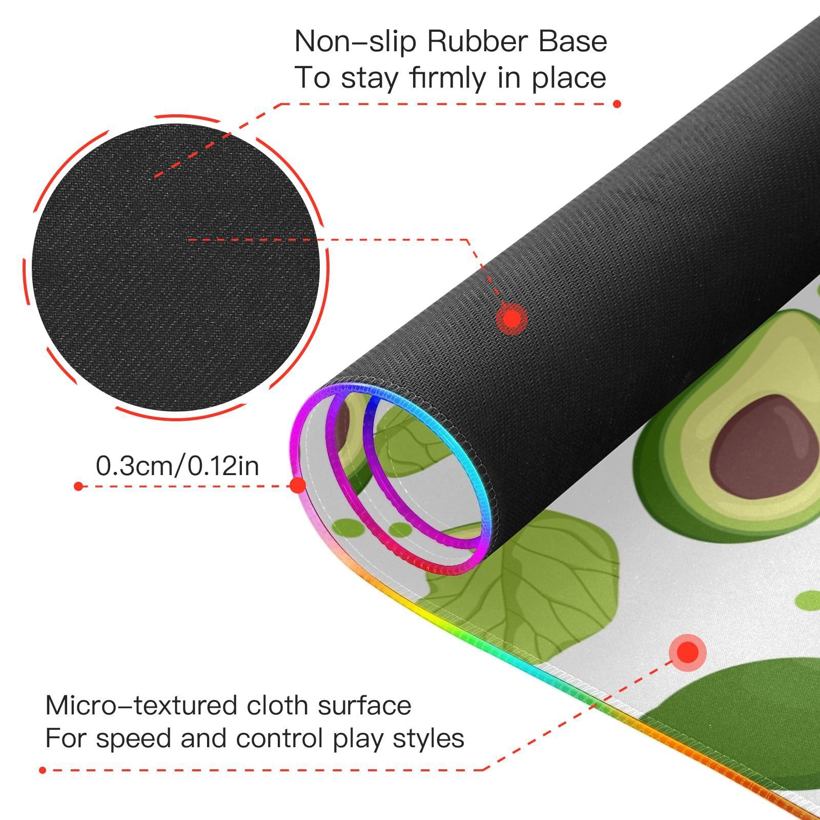 Avocado Fruit Leaves Wireless Charging Mouse Pad for Mobile Phone Extra Large Gaming Mousepad with 13 Lighting Modes Extended Desk Mat for Gaming MacBook PC Laptop Desk Office Home