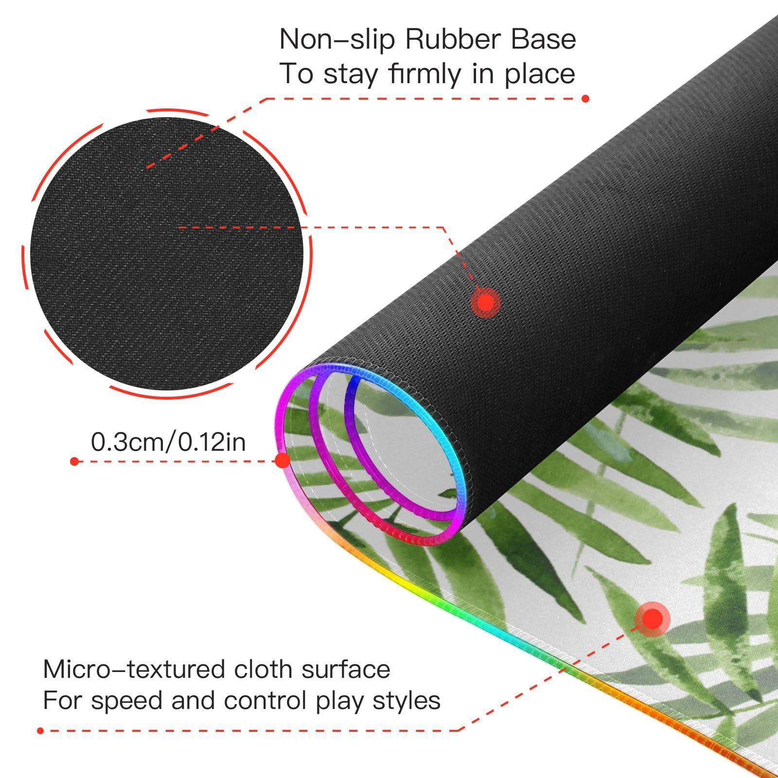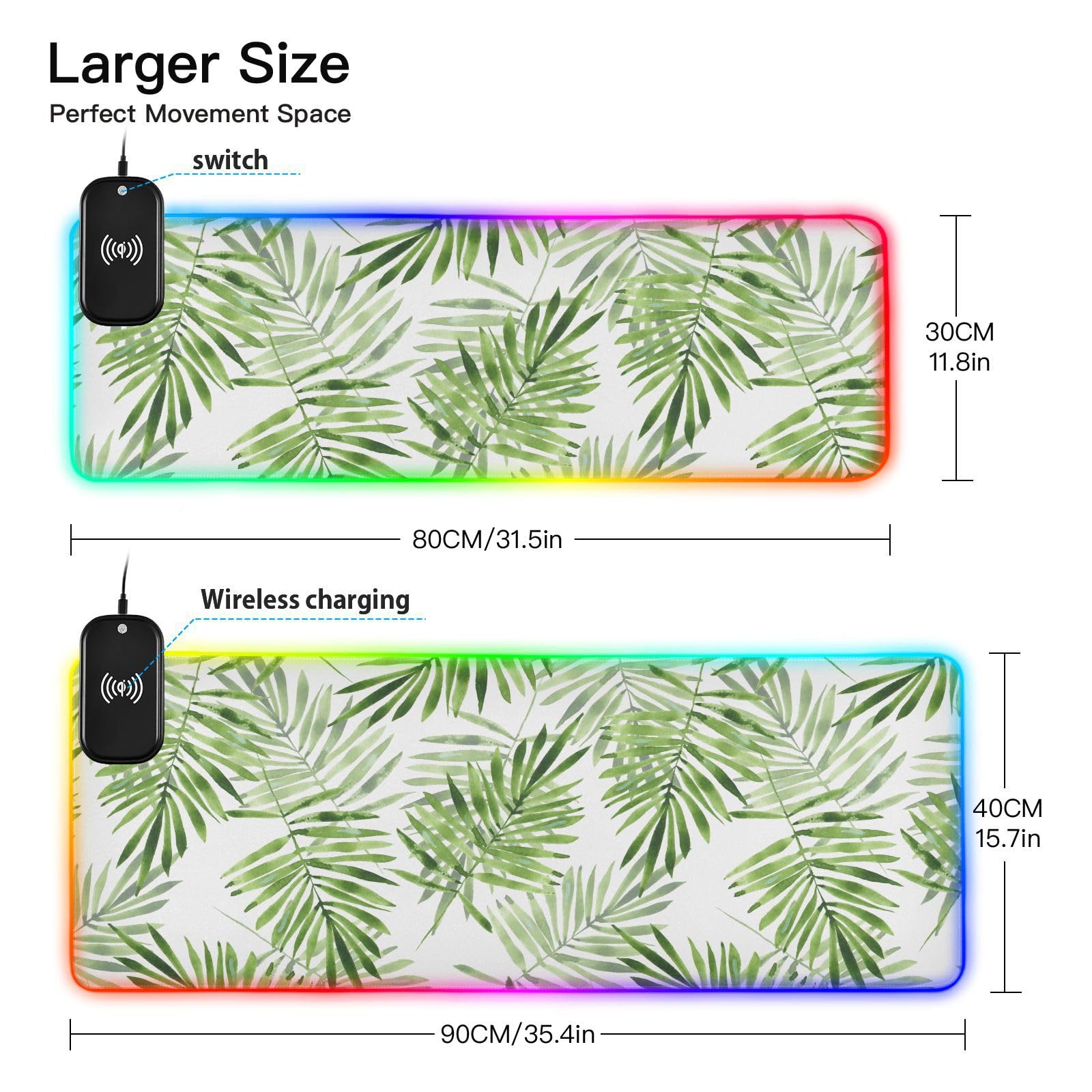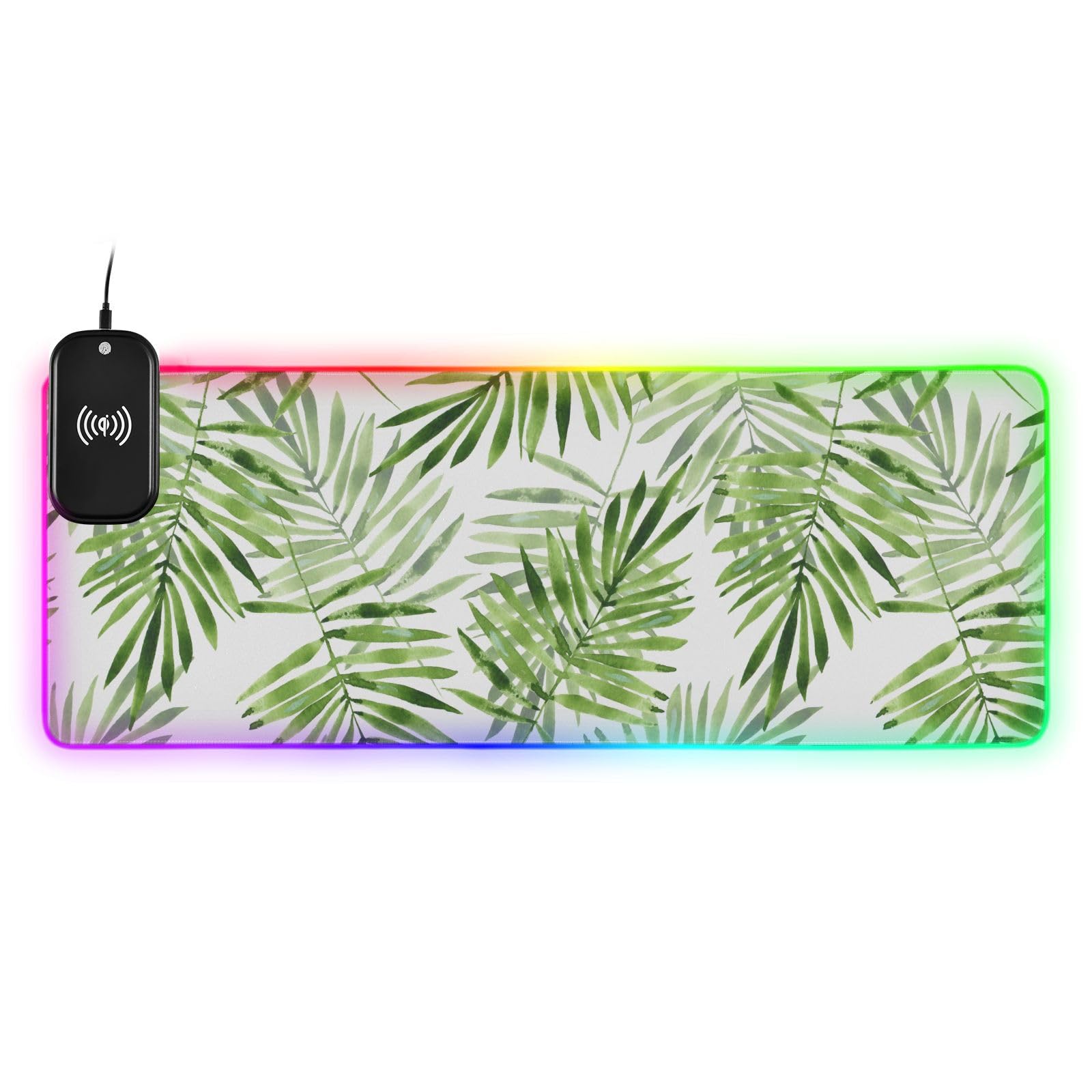 Green Leaves Wireless Charging Mouse Pad for Mobile Phone Extra Large Gaming Mousepad with 13 Lighting Modes Keyboard Mat for Office Home Gaming MacBook PC Laptop