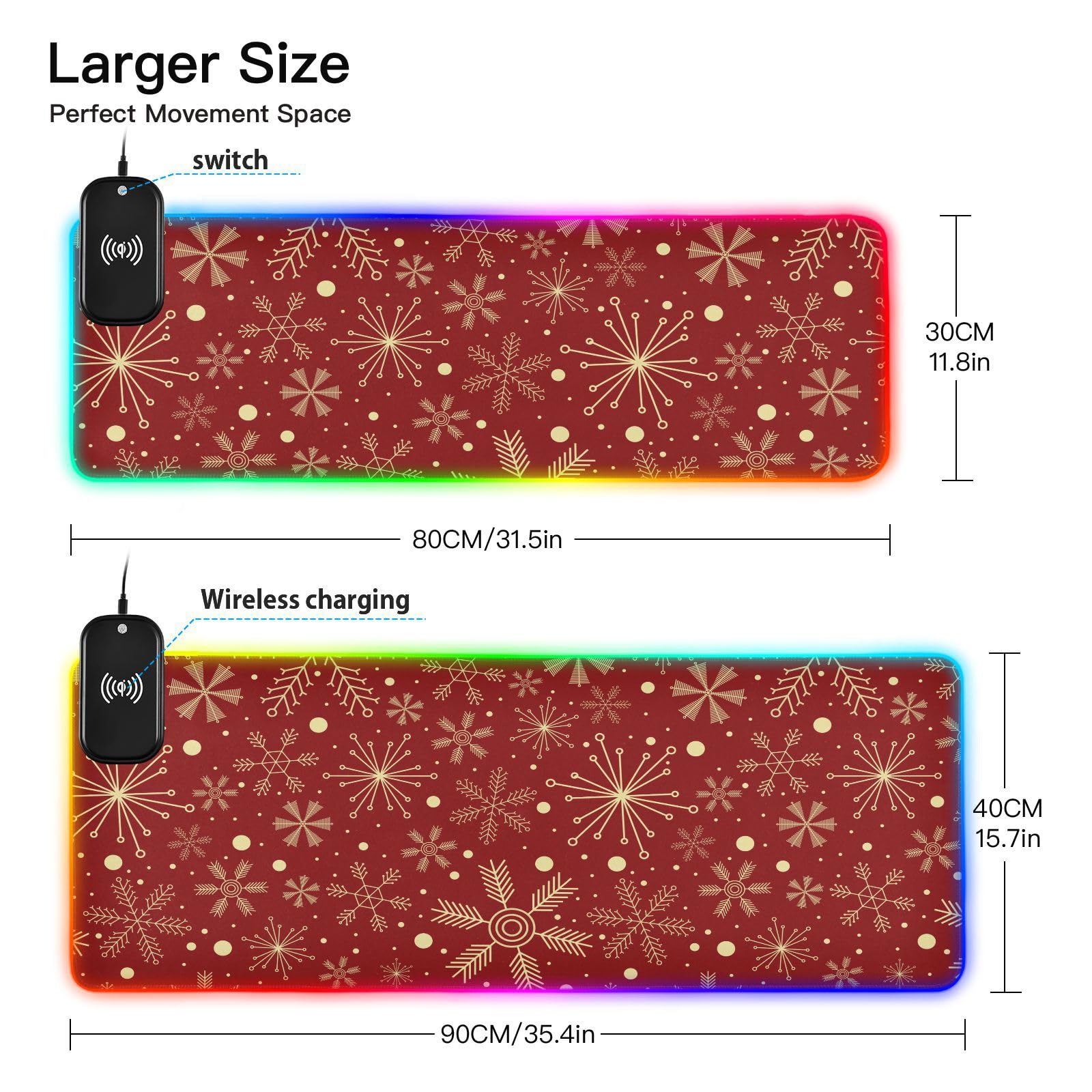 Christmas Snowflake Wireless Charging Mouse Pad for Mobile Phone Extra Large Gaming Mousepad with 13 Lighting Modes Extended Mat for Office Home Gaming MacBook PC Laptop
