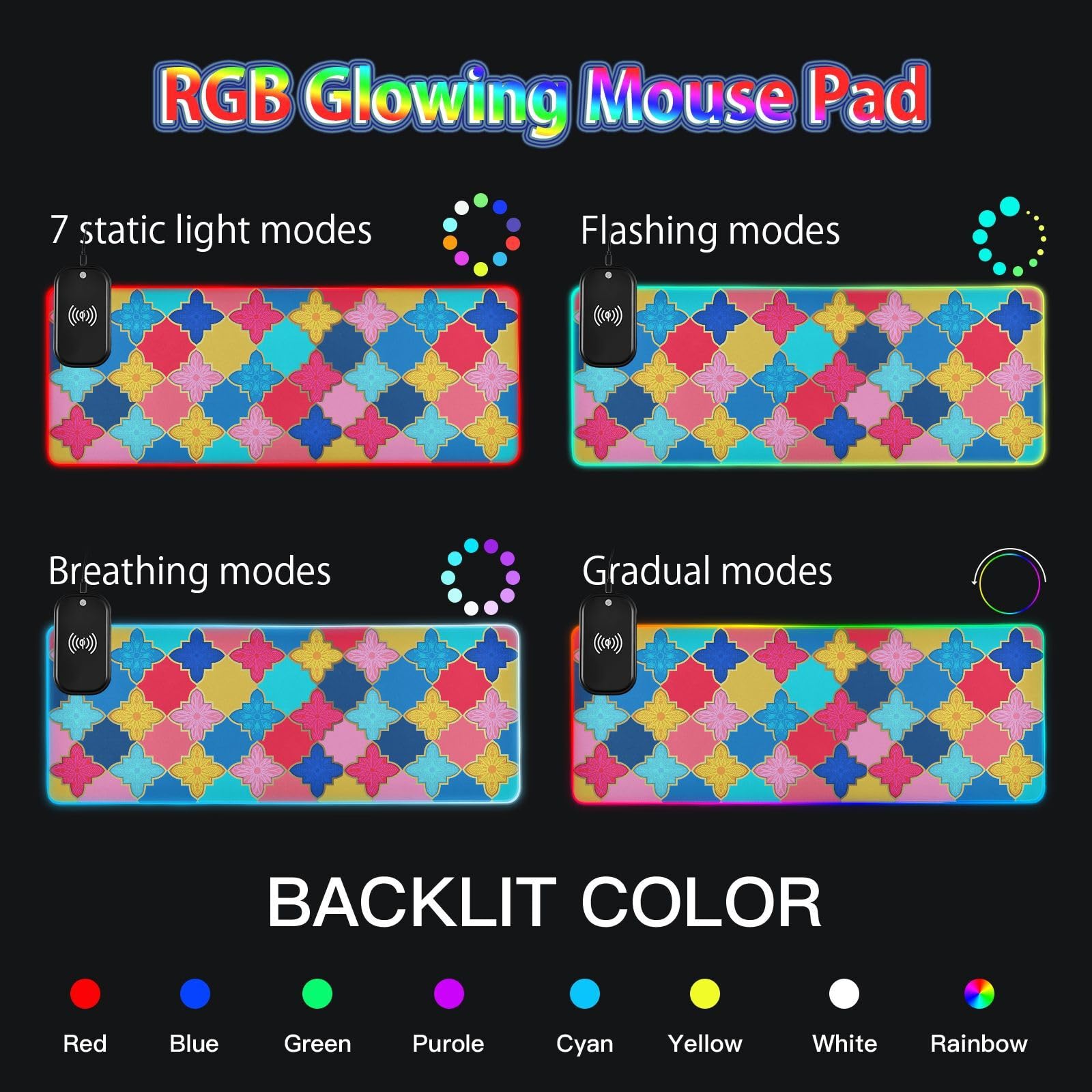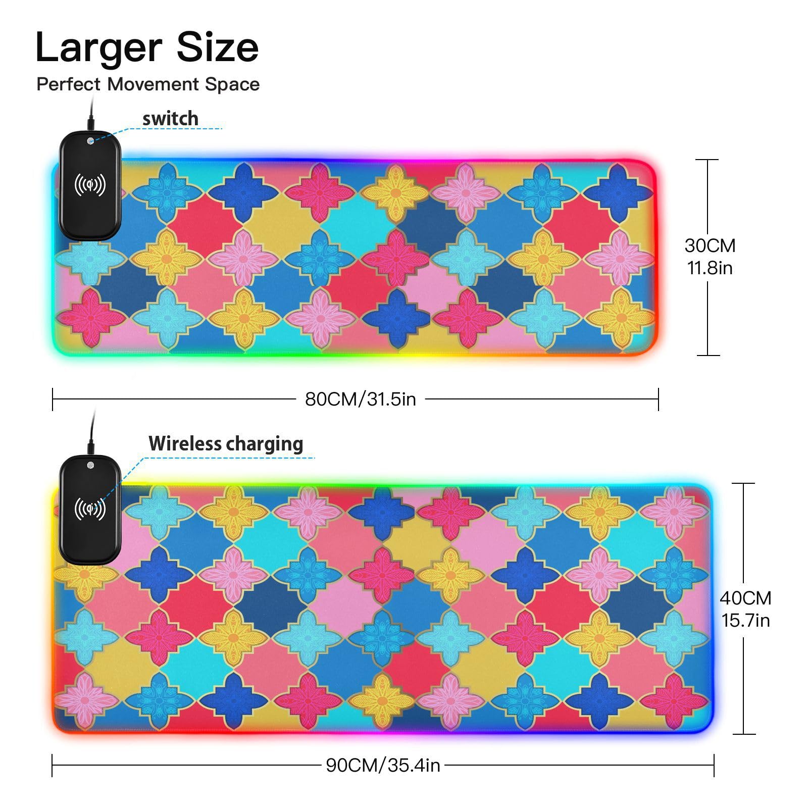 Boho Mandala Wireless Charging Mouse Pad for Mobile Phone Extra Large Gaming Mousepad with 13 Lighting Modes Keyboard Mat for MacBook PC Laptop Office Home Gaming