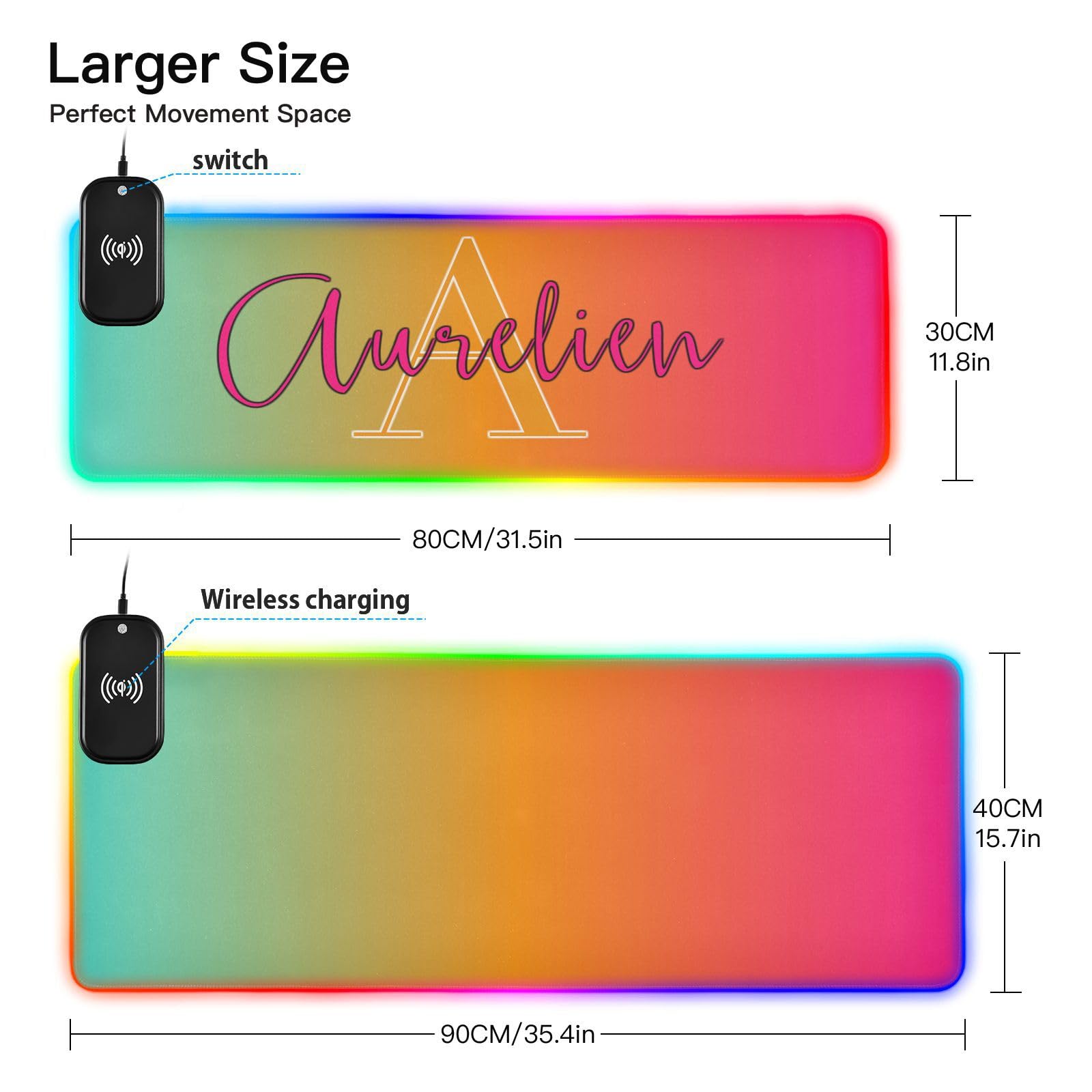 Green Red Gradient Custom Wireless Charging Mouse Pad for Mobile Phone Personalized Extra Large Gaming Mousepad with 13 Lighting Modes Computer Mat for Gaming MacBook PC Laptop Desk Home Office