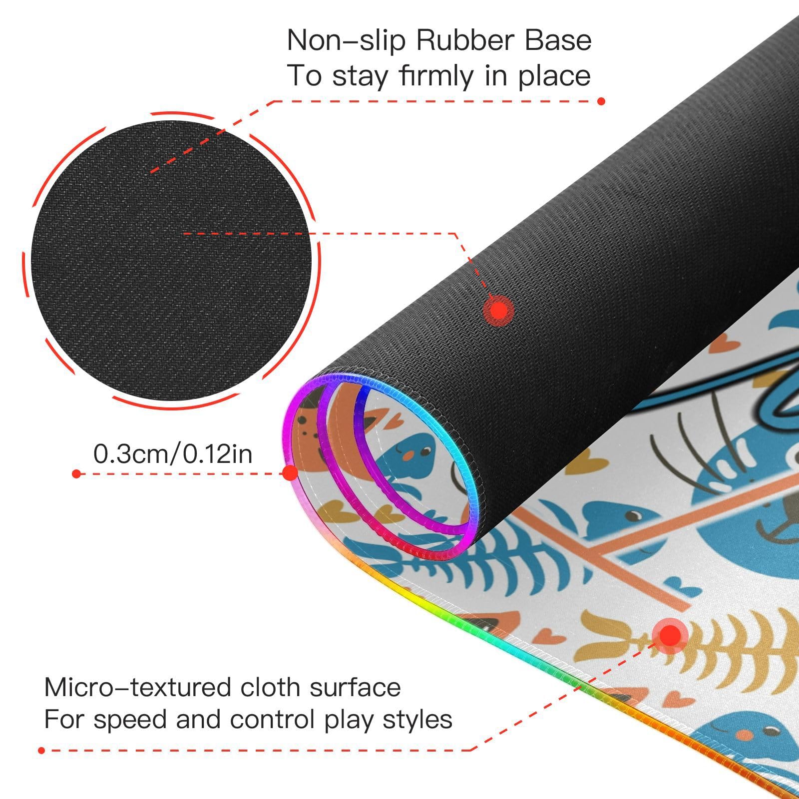 Funny Cats and Fish Custom Wireless Charging Mouse Pad for Mobile Phone Personalized Extra Large Gaming Mousepad with 13 Lighting Modes Extended Desk Mat for Gaming MacBook PC Laptop Desk Home Office