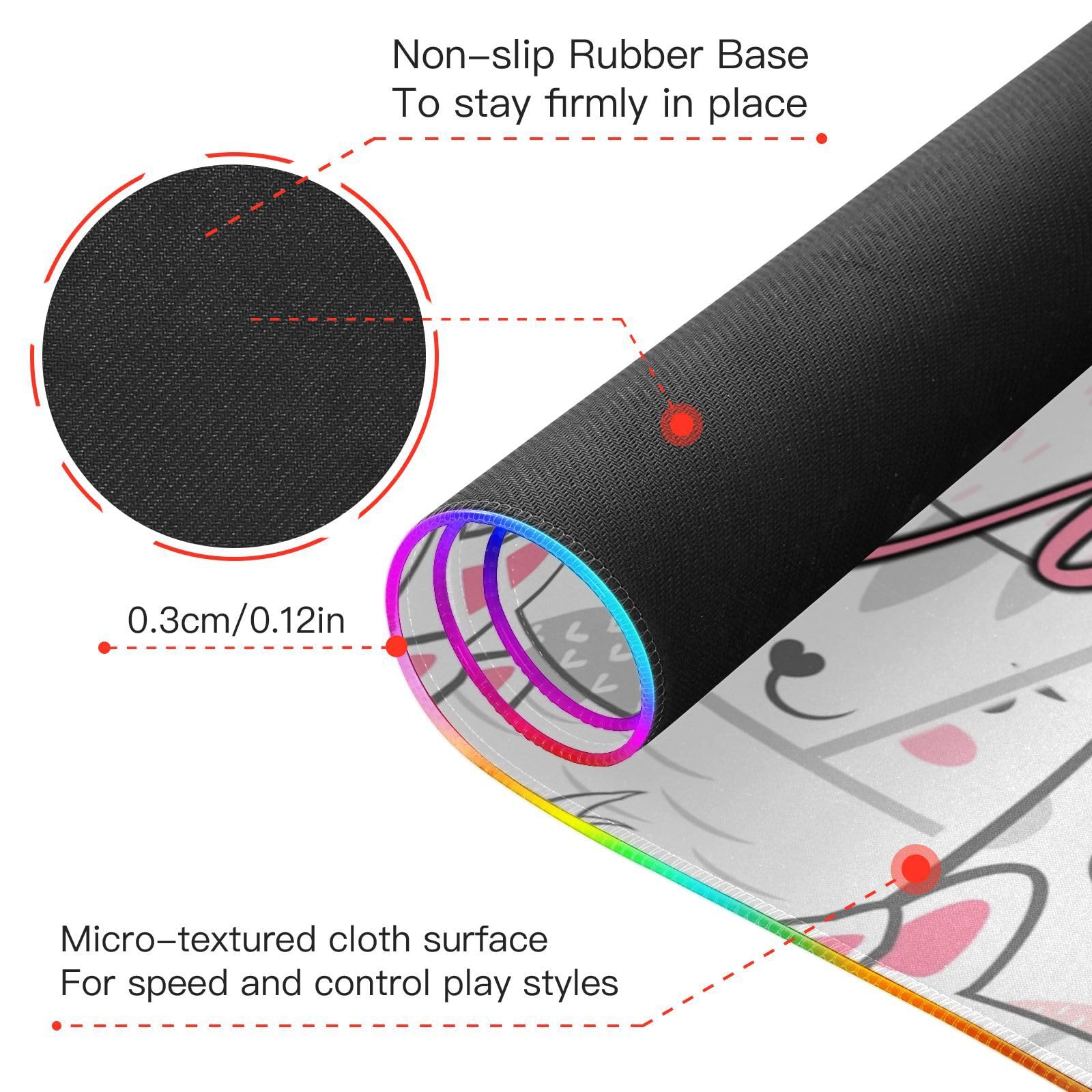 Cute Cartoon Animals Bear Custom Wireless Charging Mouse Pad for Mobile Phone Personalized Gaming Mousepad with 13 Lighting Modes Extended Desk Mat for Gaming MacBook PC Laptop Desk Home Office