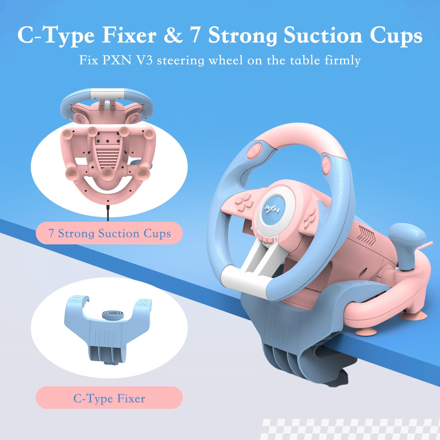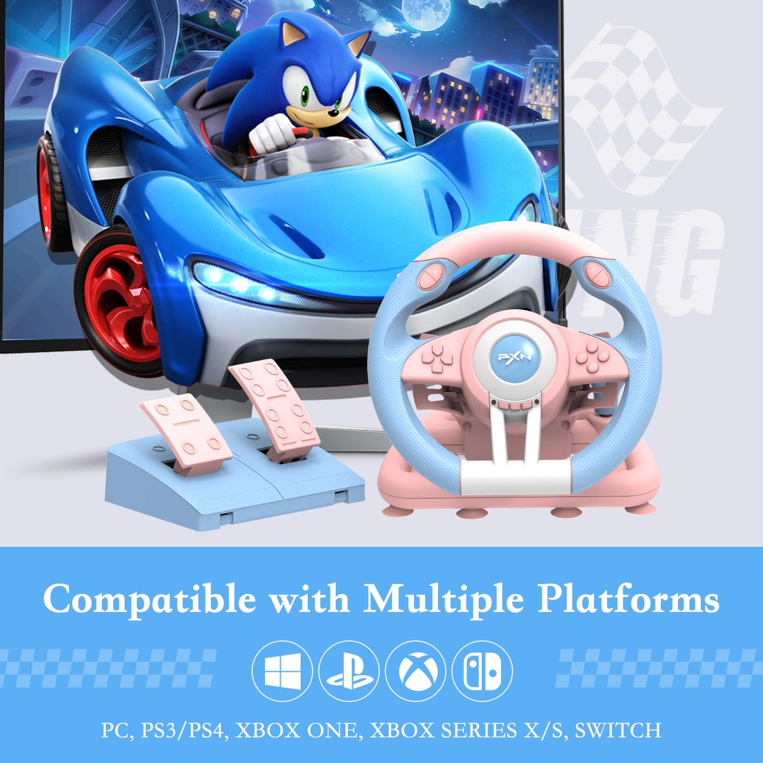 PXN V3III Steering Wheel Gaming - Racing Wheel with Line Pedals and Paddle Shifter Vibration Feedback Racing Wheel for Xbox One, Xbox Series S/X, PS4, PS3, Switch, PC