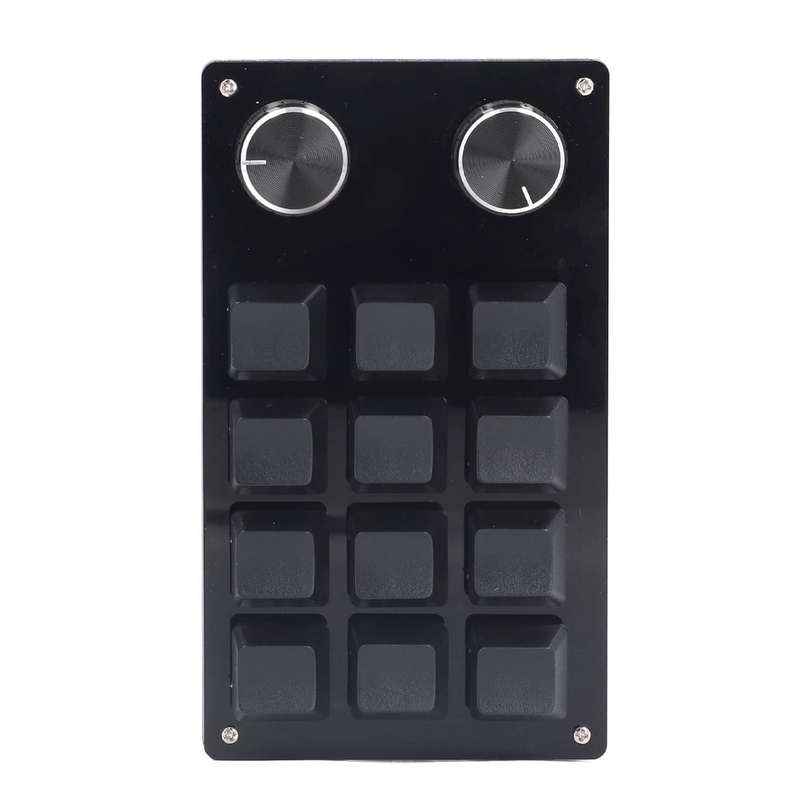 Cuifati DIY Programmable Mechanical Gaming Keypad with 12 Keys & 2 Knobs, Small & Portable, USB Cable, Wide Applications