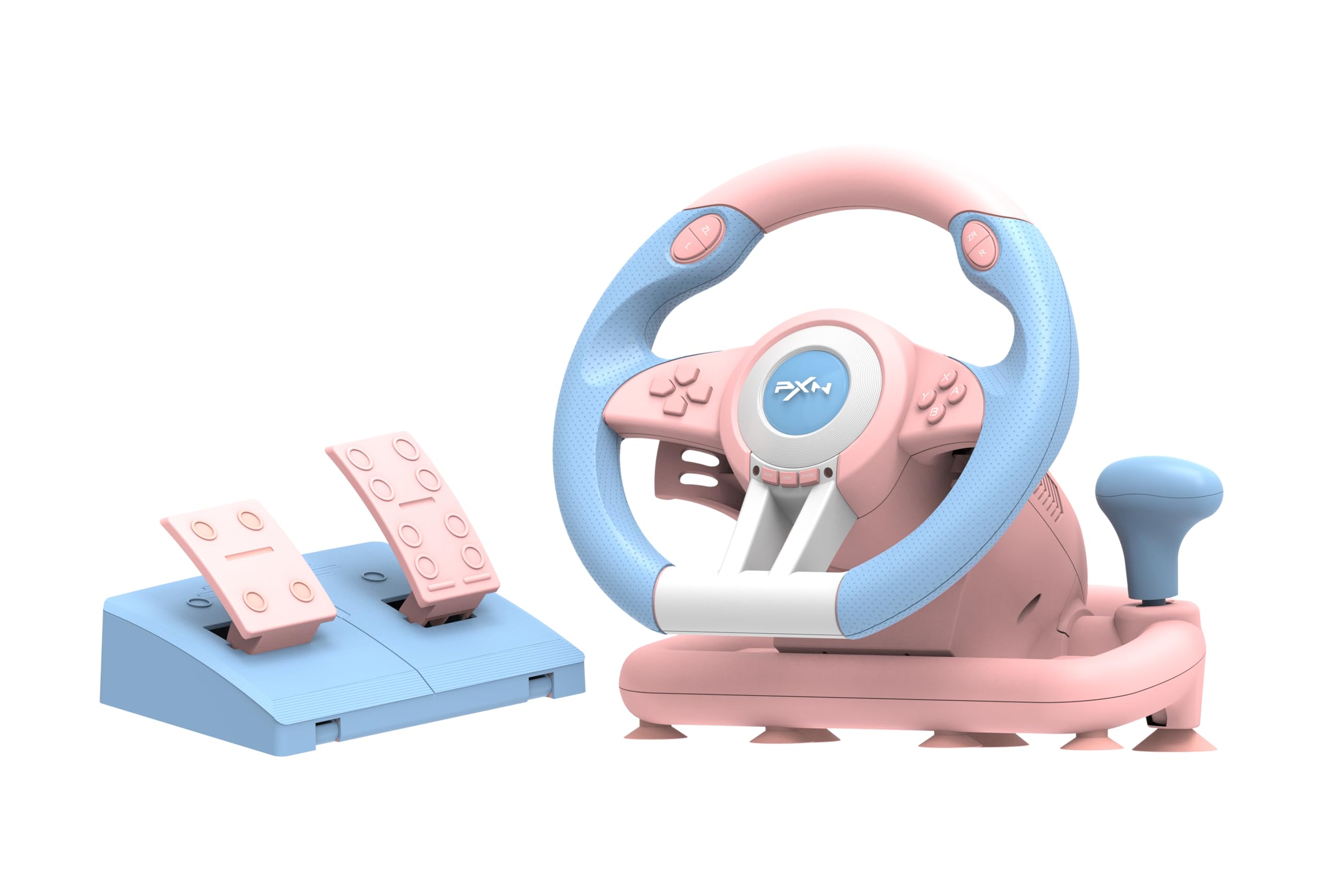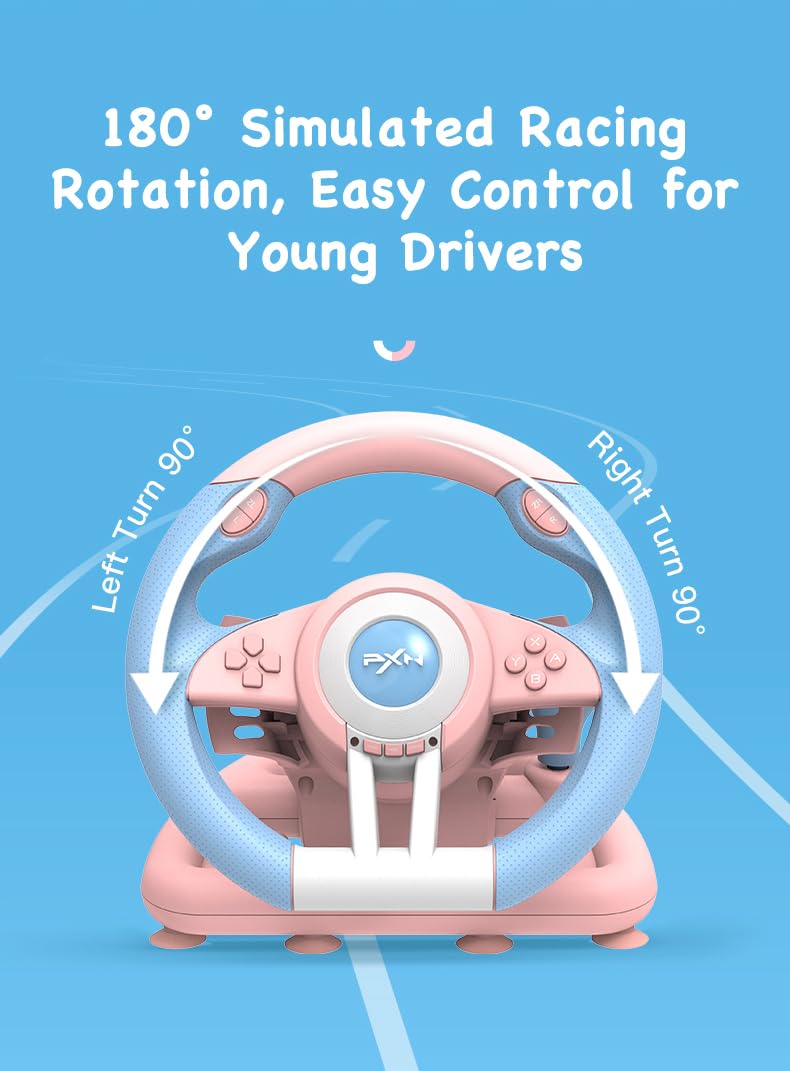 PXN V3II Gaming Steering Wheel with Pedal PC Steering Wheel 180 Degree racing Wheel for PC, PS3, PS4,Xbox One, Xbox Series X/S,N-Switch (pink)