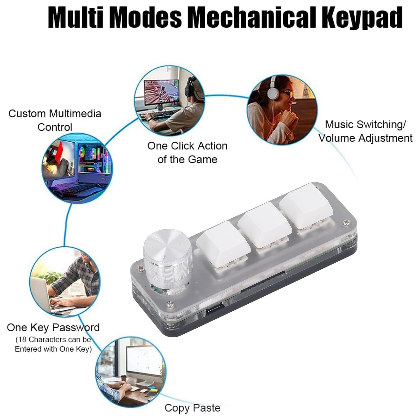 Walfront 3 Key Mini Keypad Mechanical Gaming Keyboard RGB Led Customize Programmable for PC Video Game Office Work