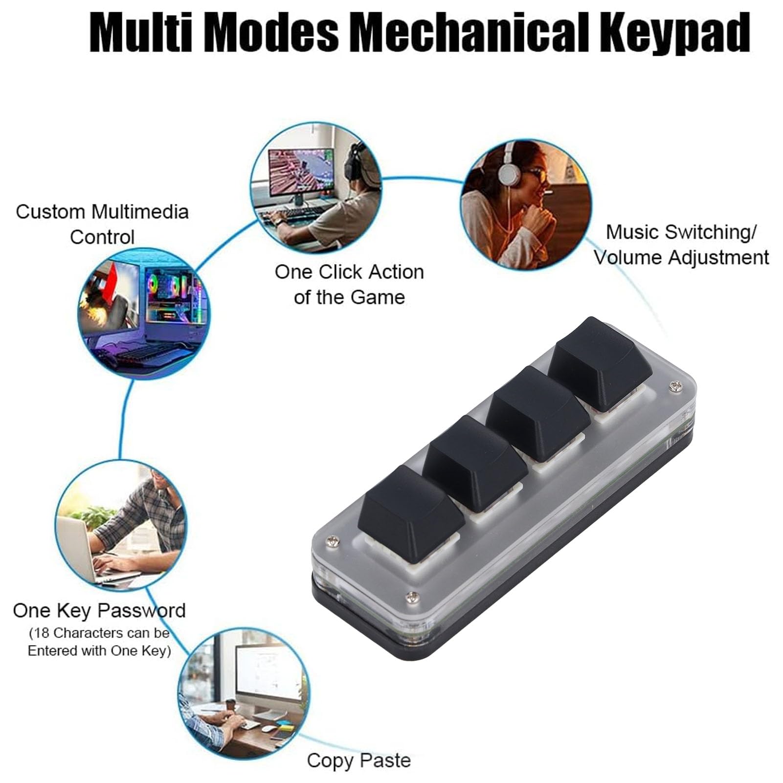 1. Support Multiple Customization: Users can set the most suitable shortcut keys according to their own habits and needs. Can be used for gaming, office, music, media, industrial control and so on.2. Red Switch: The mechanical keypad adopts the red switch mechanical keypad, ergonomic design, making the keypad key strength and stroke very scientific, gently press to complete the operation.3. Default Functions: The default functions of the four keys are select all, cut, copy and paste (Ctrl+A, Ctrl+X, Ctrl+C, Ctrl+V). Plug and play, no software required. Make the workflow super fast.4. Upgrade Design: Programmable shortcuts to customize the industrial console, upgrade the red Switch for more gaming experience. Fine workmanship and perfect style.5. Setup by Yourself: There is a special setup program, you can repeat the setup. And onboard storage, the settings are saved in the keypad, no need to set up again when changing devices.Specification:Item Type: Mini KeypadKeypad Switch: Dustproof Red SwitchProduct Material: ABS, Acrylic, MetalOperating Voltage: 5V 1AConnection: USB C CableSize: Approx. 100x35mm / 3.9x1.4inHow to Use:Use according to instructionsPackage List:1 x Keypad1 x USB Cable1 Bag x Foot Pads (1 Bag of 4)1 x Instruction ManualNotice:All data are measured manually, and there are certain errors in the measurement results.