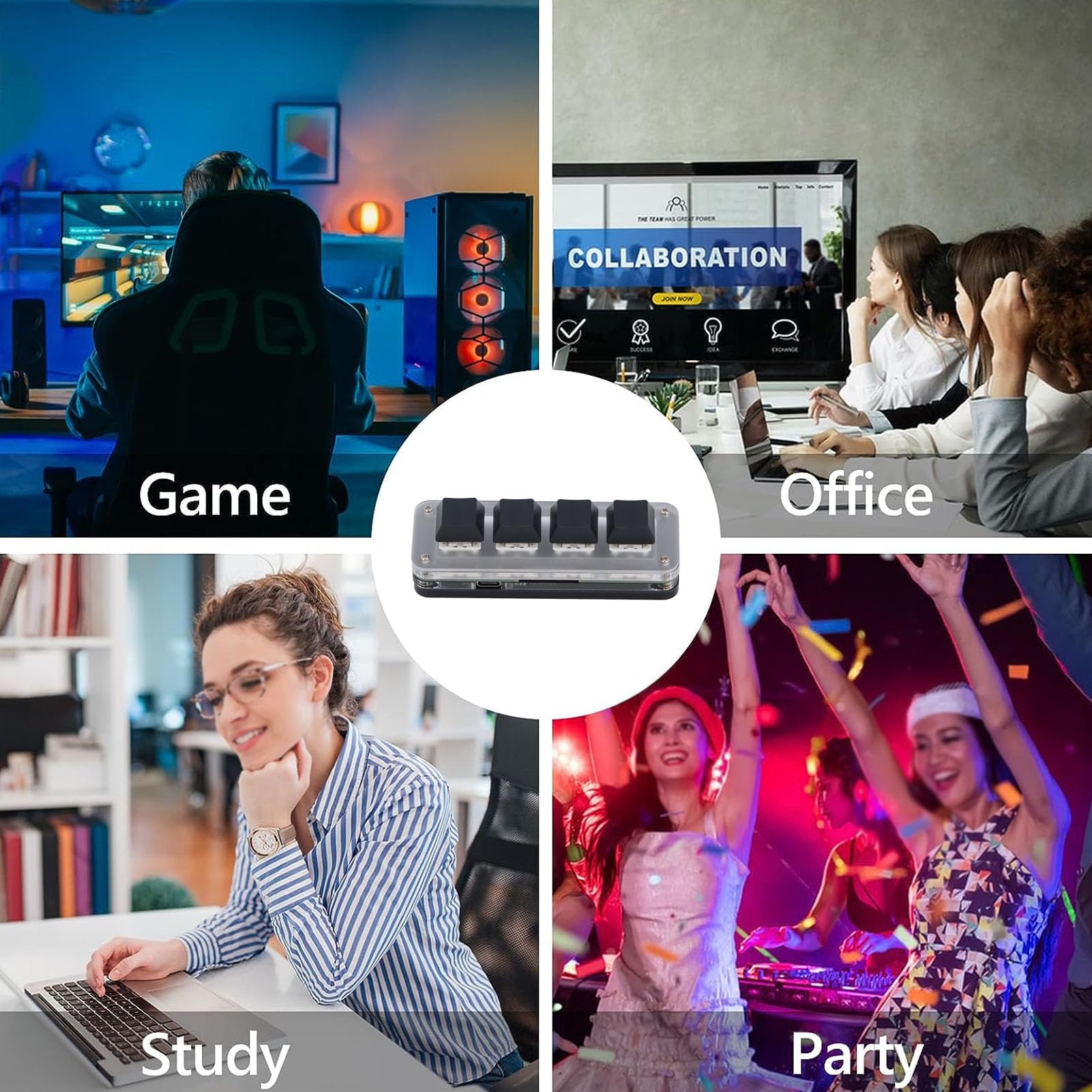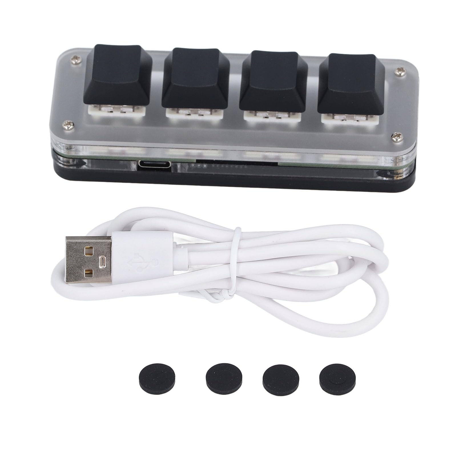 Walfront Mini Red Switch Macro Mechanical Keypad with RGB Light USB C Wired Programmable Customized 4 Key Gaming Keyboard Plug and Play Setup by Yourself