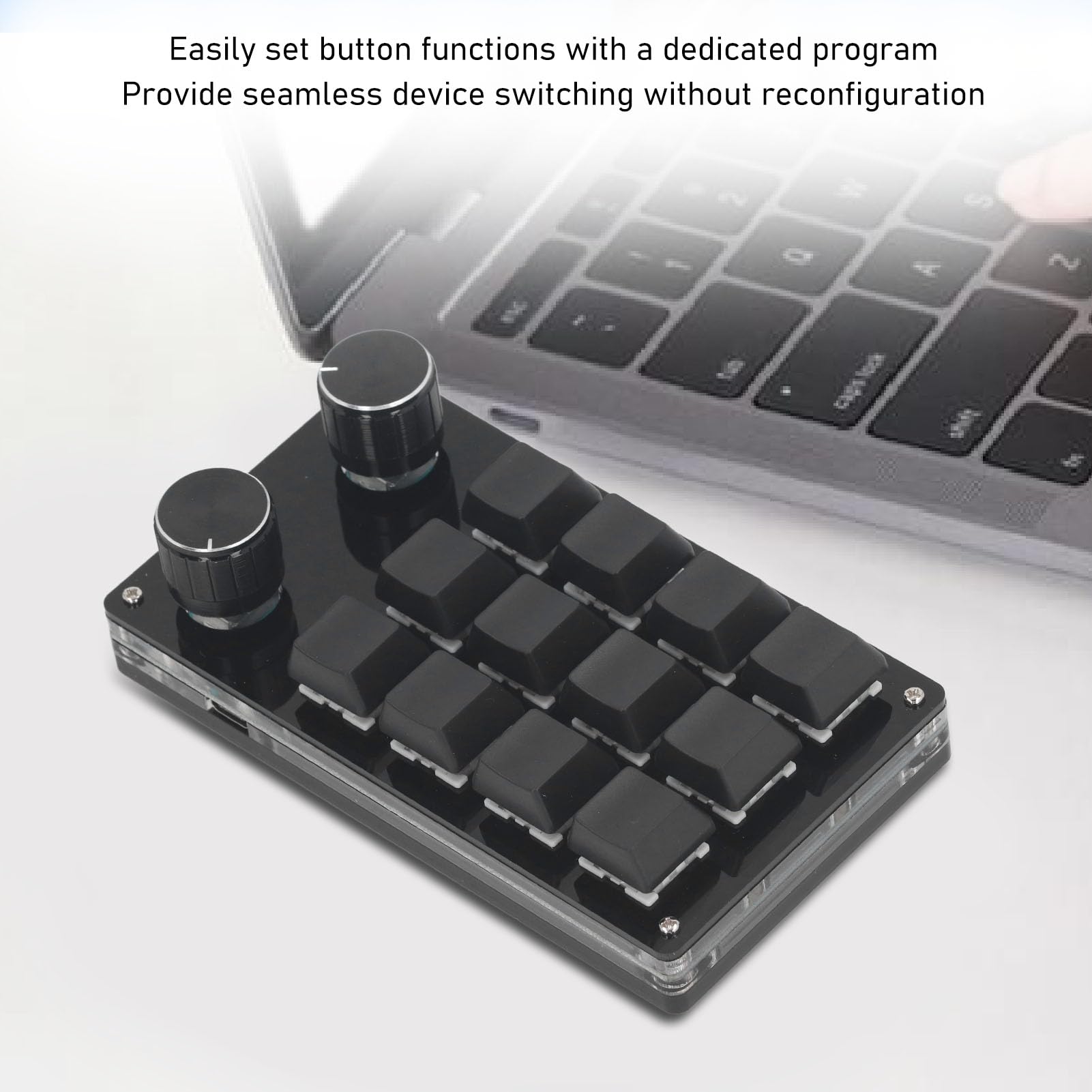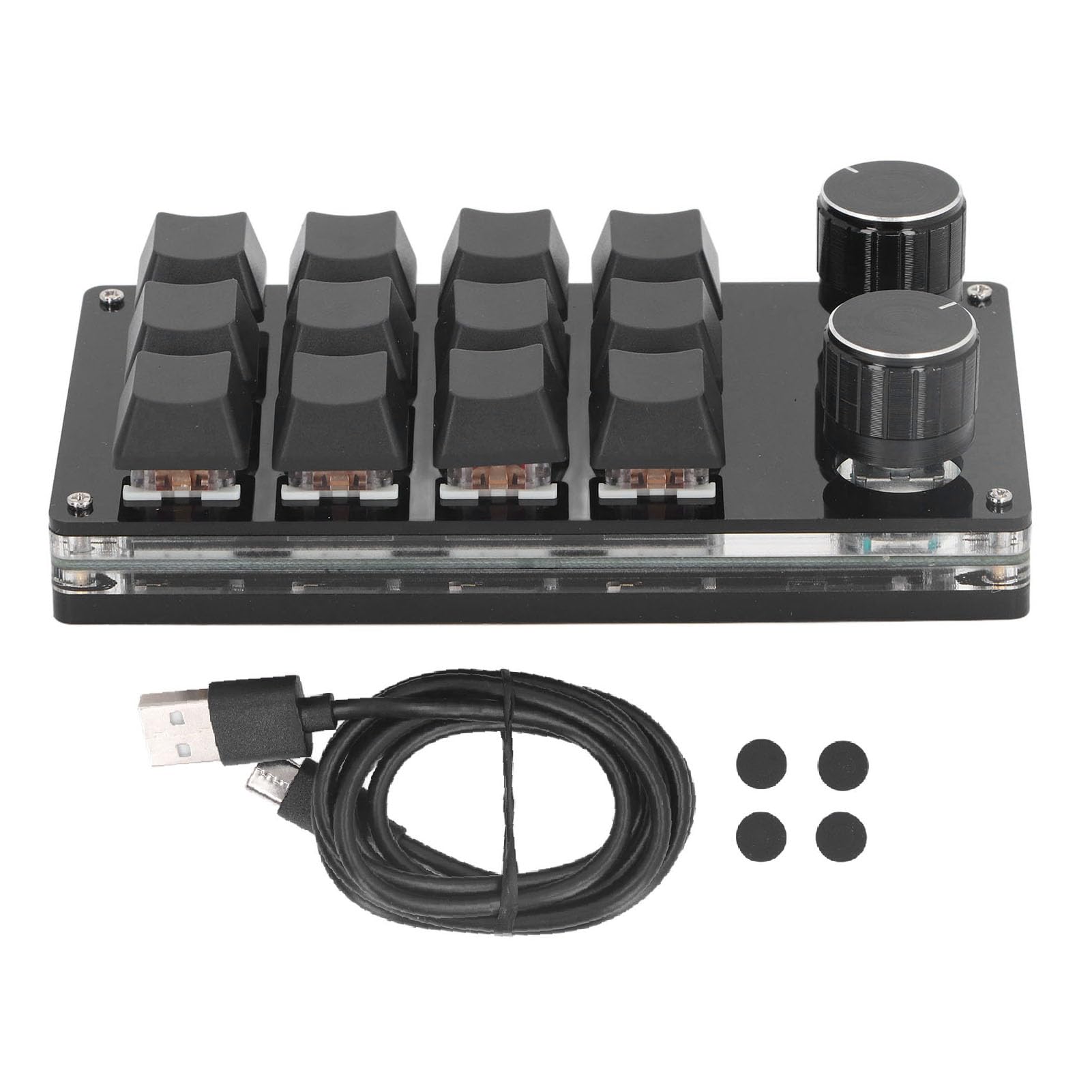 Walfront Red Switch Mechanical Gaming Keyboard 12 Keys 2 Knobs Programmable Wired Keyboard One Handed Mini USB Keypad for Windows for Linux for OS X