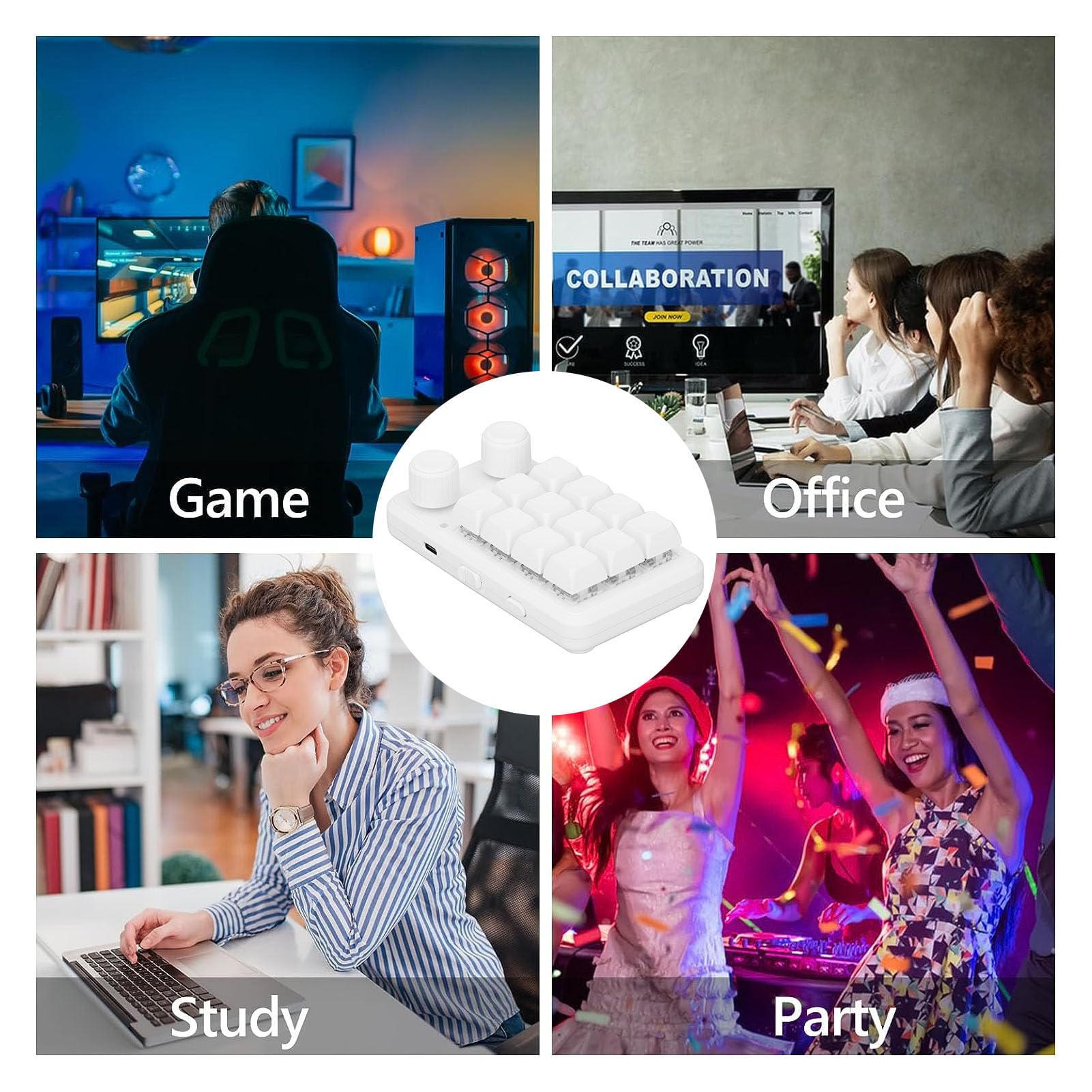 Walfront RGB LED Mechanical 12 Key Knob Keyboard 3 Modes Programmable Blue Switch Gaming Office Music Keypad Rechargeable Supports USB C BT 2.4G Receiver
