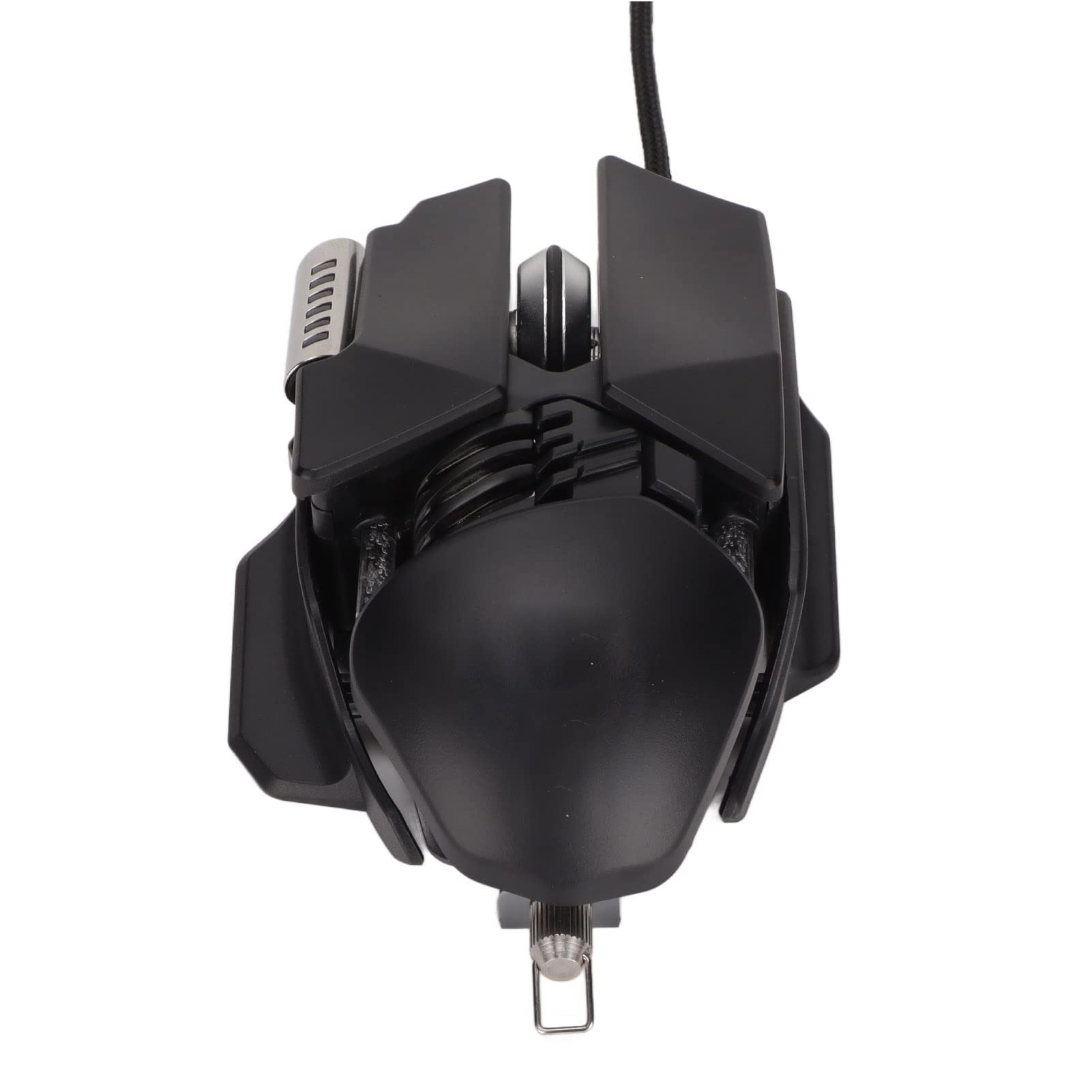 1. Metal Style: The mechanical mouse has metal style and mechanical aesthetic design, bringing you interesting visual experience2. Base DPI Cycle Key: The mechanical mouse has metal plating scroll wheel, metal brushed base, with base DPI cycle key3. Retractable Adjustment: The gaming mouse has a comfortable grip with retractable adjustment, which reduces fatigue during gaming4. RGB Lighting Effect: The gaming mouse has RGB water cooled lighting effect, allowing you to have cool lighting while playing competitive games5. High Frequency Noise Immunity: The computer mouse has nylon long wire with magnetic circle, which can resist high frequency noise interferenceSpecification:Item Type: Mechanical MouseMaterial: ABSCable Interface: USBLine Length: Approx. 180mm/7.1inLighting: Breathing LightButton: 6DDPI: 12800Package List:1 x Mechanical Mouse1 x User Manual