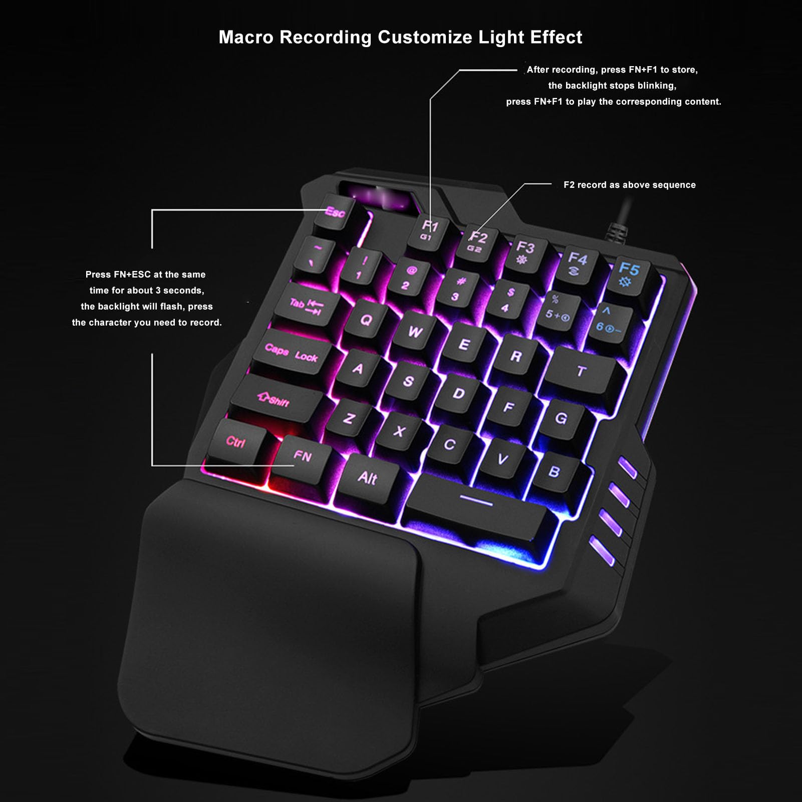 Zunate Gaming Keyboard, RGB Backlit One Handed Keyboard with 35 Keys Ergonomic Portable Mini Keypad for PC Gamers, Plug and Play for Win10/8/7/Vista ME, OS X,